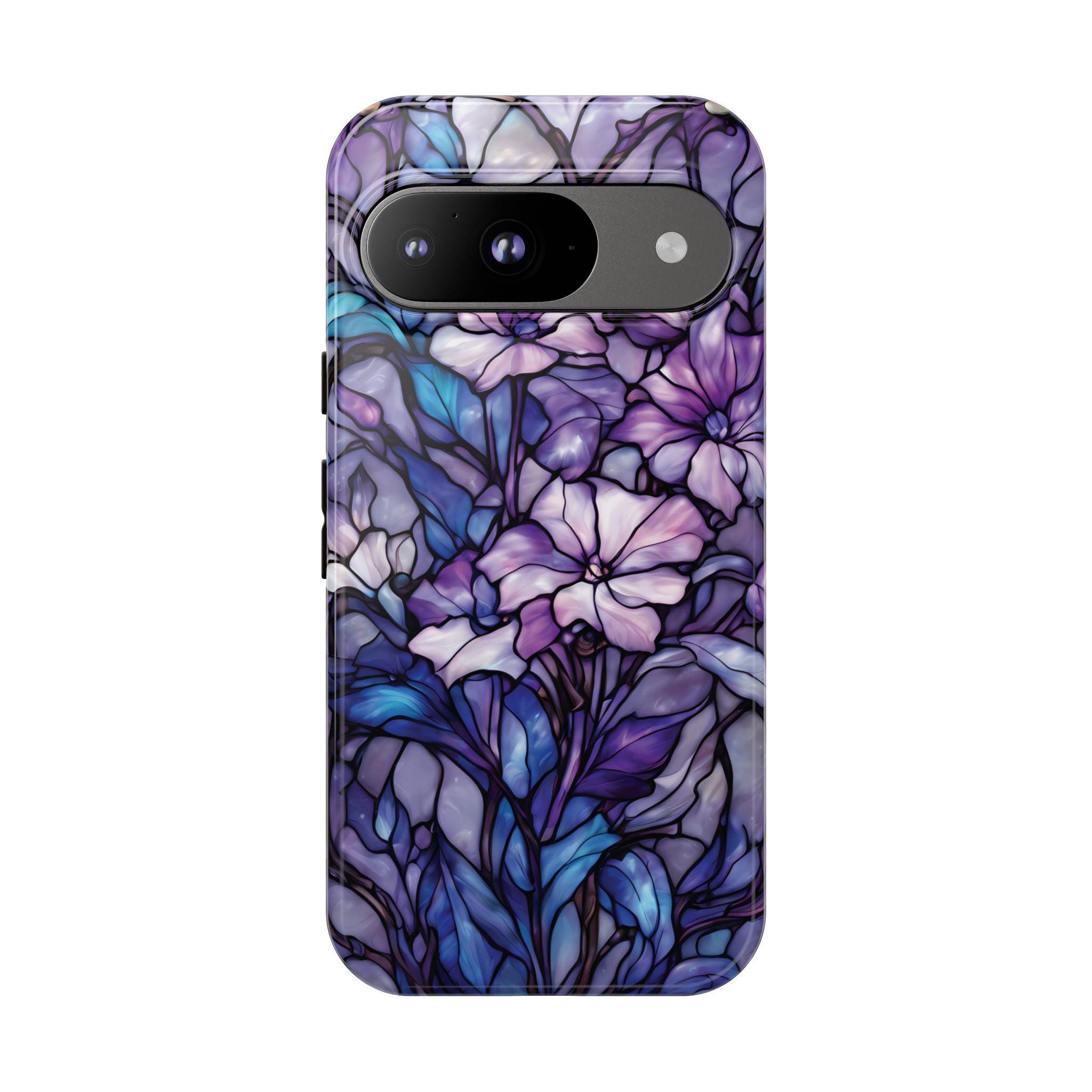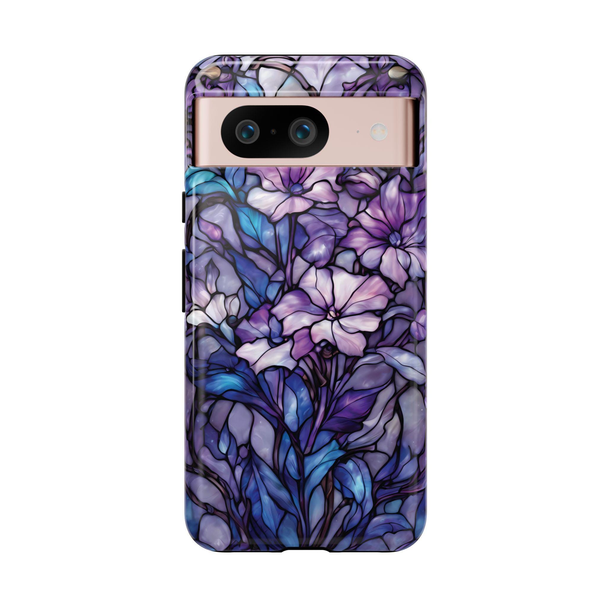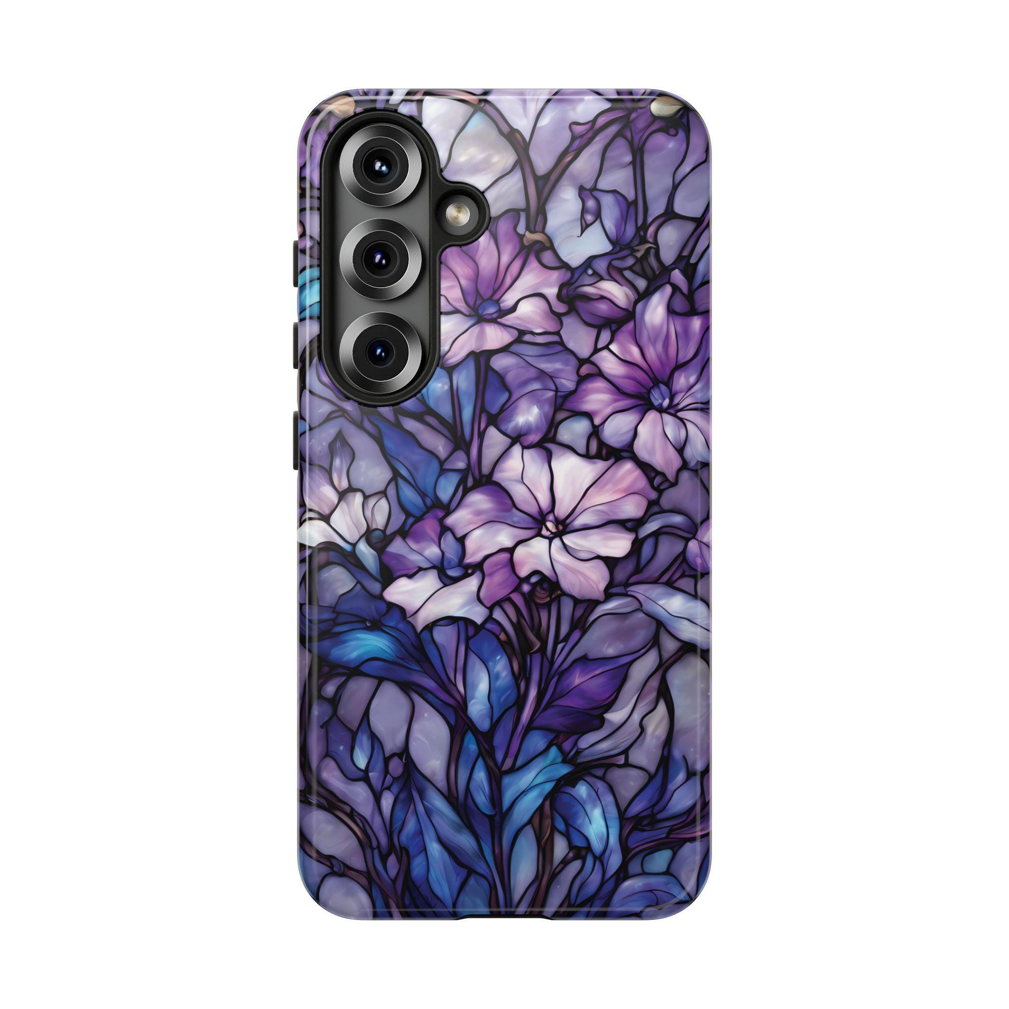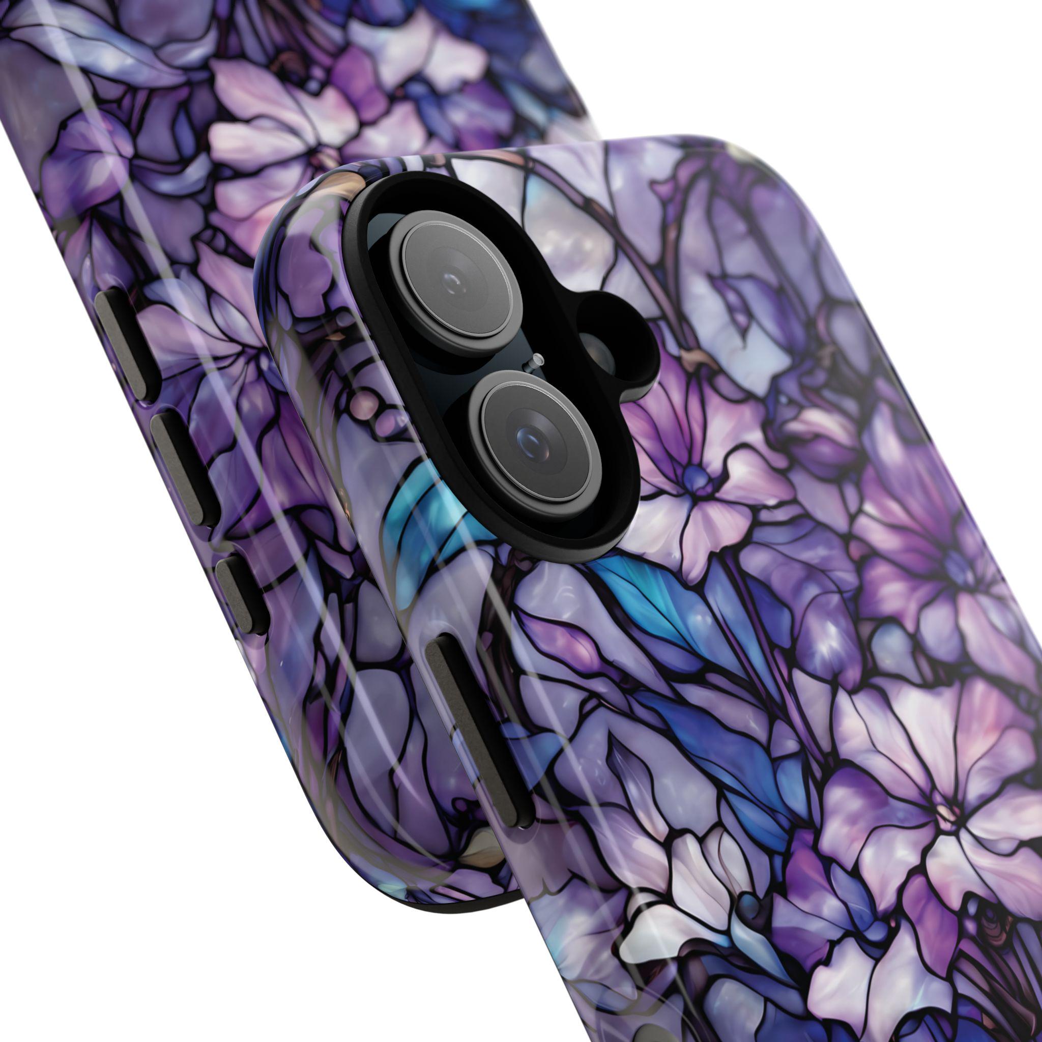 Turn everyday protection into a work of art. This floral tough phone case features a luminous stained-glass design, blending soft purples, indigo blues, and delicate botanical details into a rich, flowing composition. Each petal and leaf is outlined like handcrafted glass, creating depth, elegance, and a subtly moody glow. Built to protect while standing out, this case is perfect for those who love artistic details, floral aesthetics, and a touch of dramatic beauty in their everyday essentials.