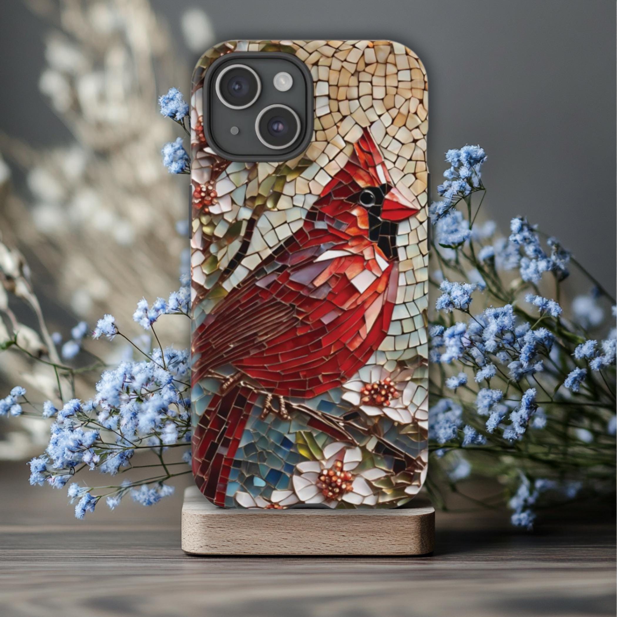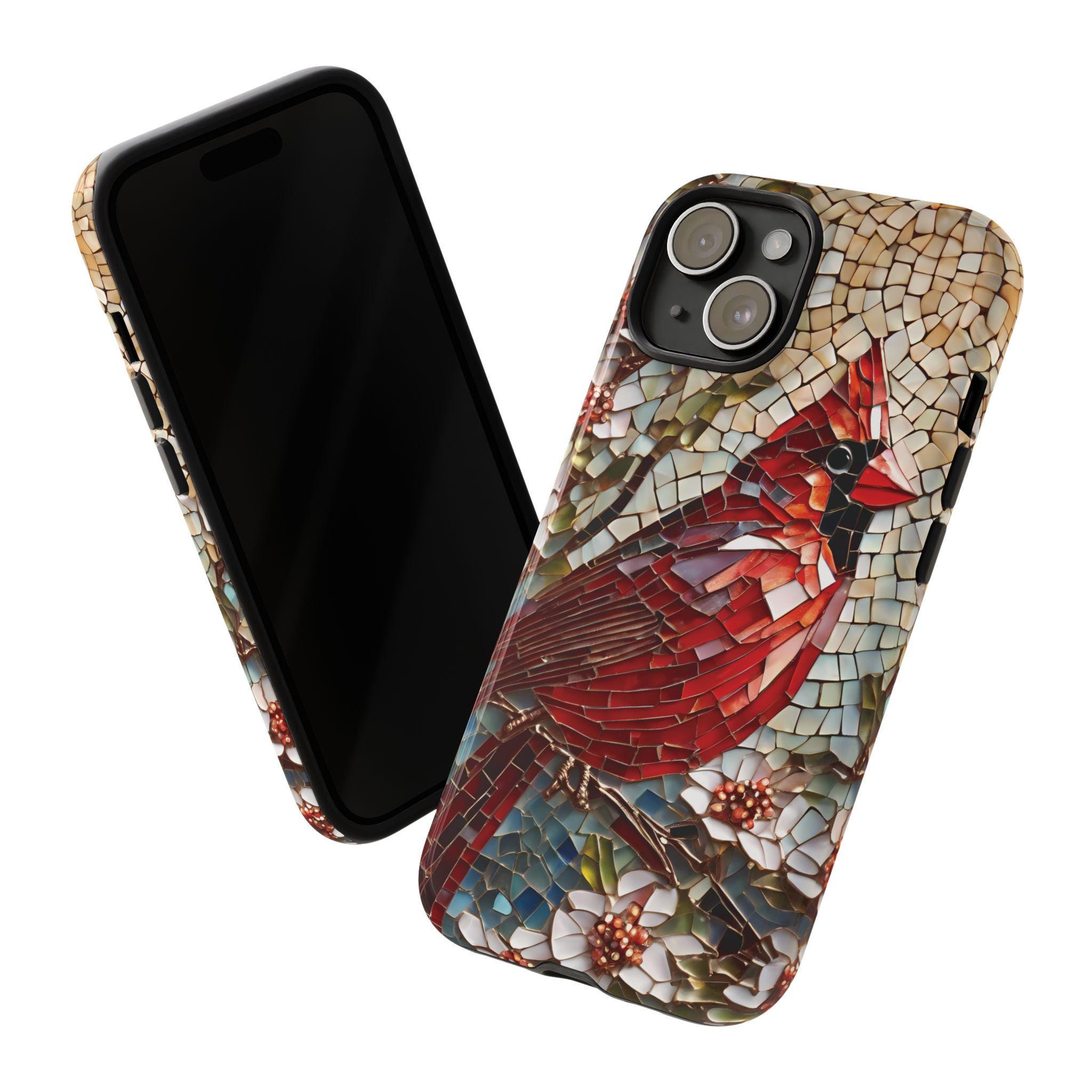 Cardinal Phone Case, Fits iPhone Samsung Galaxy Models, Bird Phone Case, Nature Phone Case, Mosaic Phone Case, Spring Phone Case, Tough Case