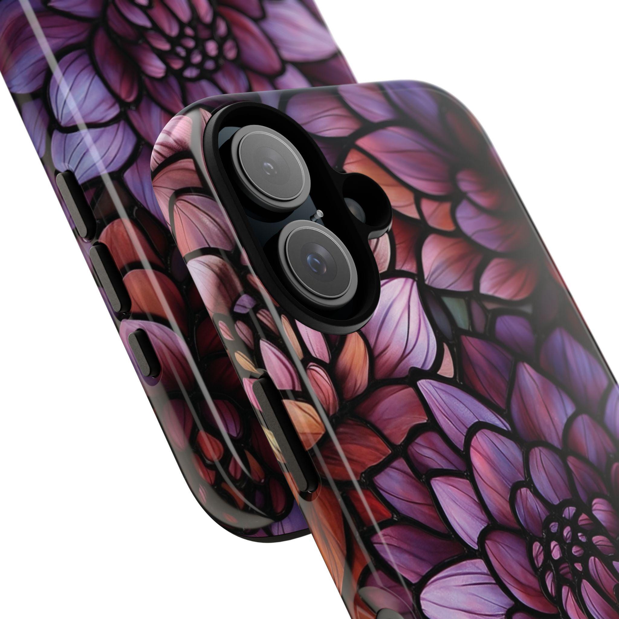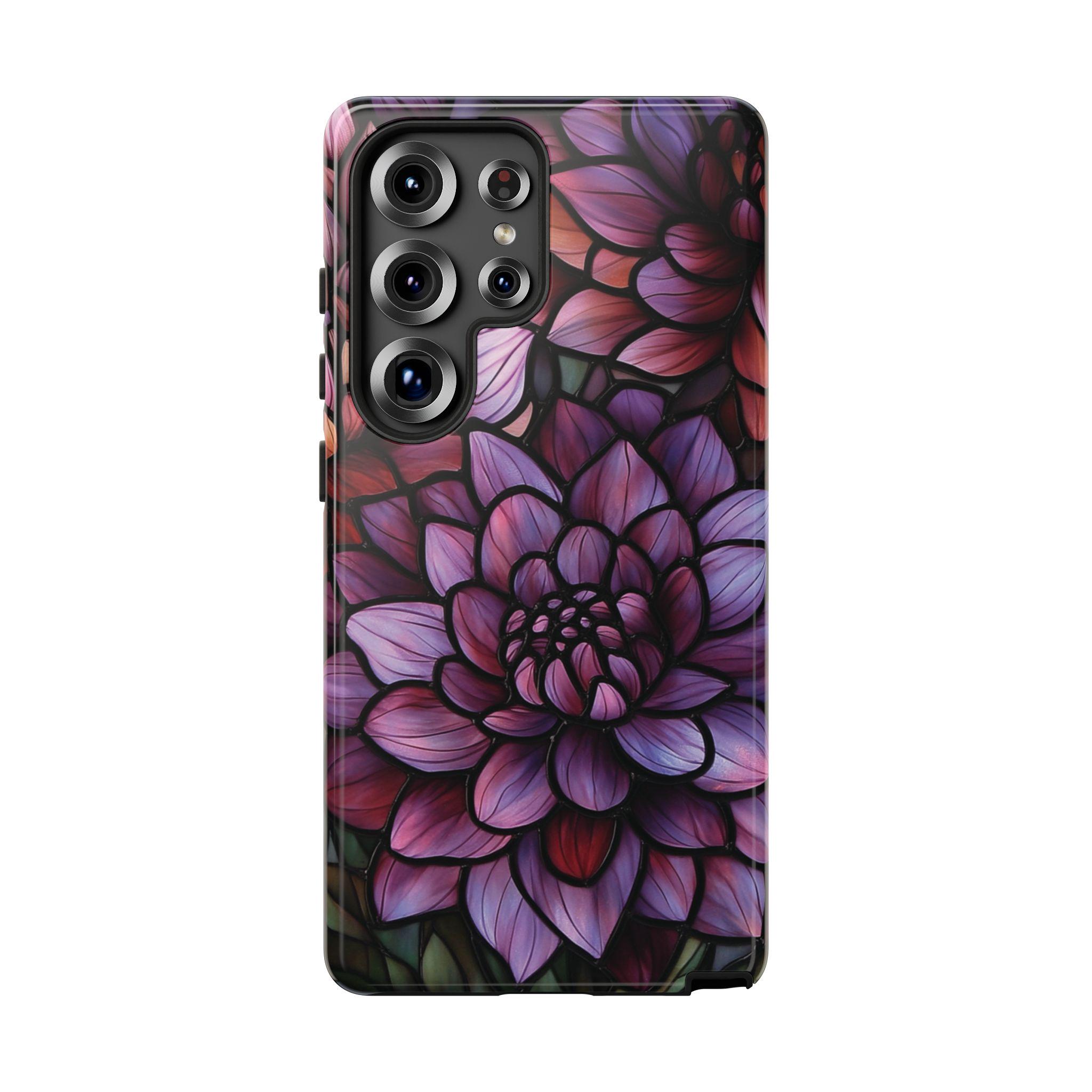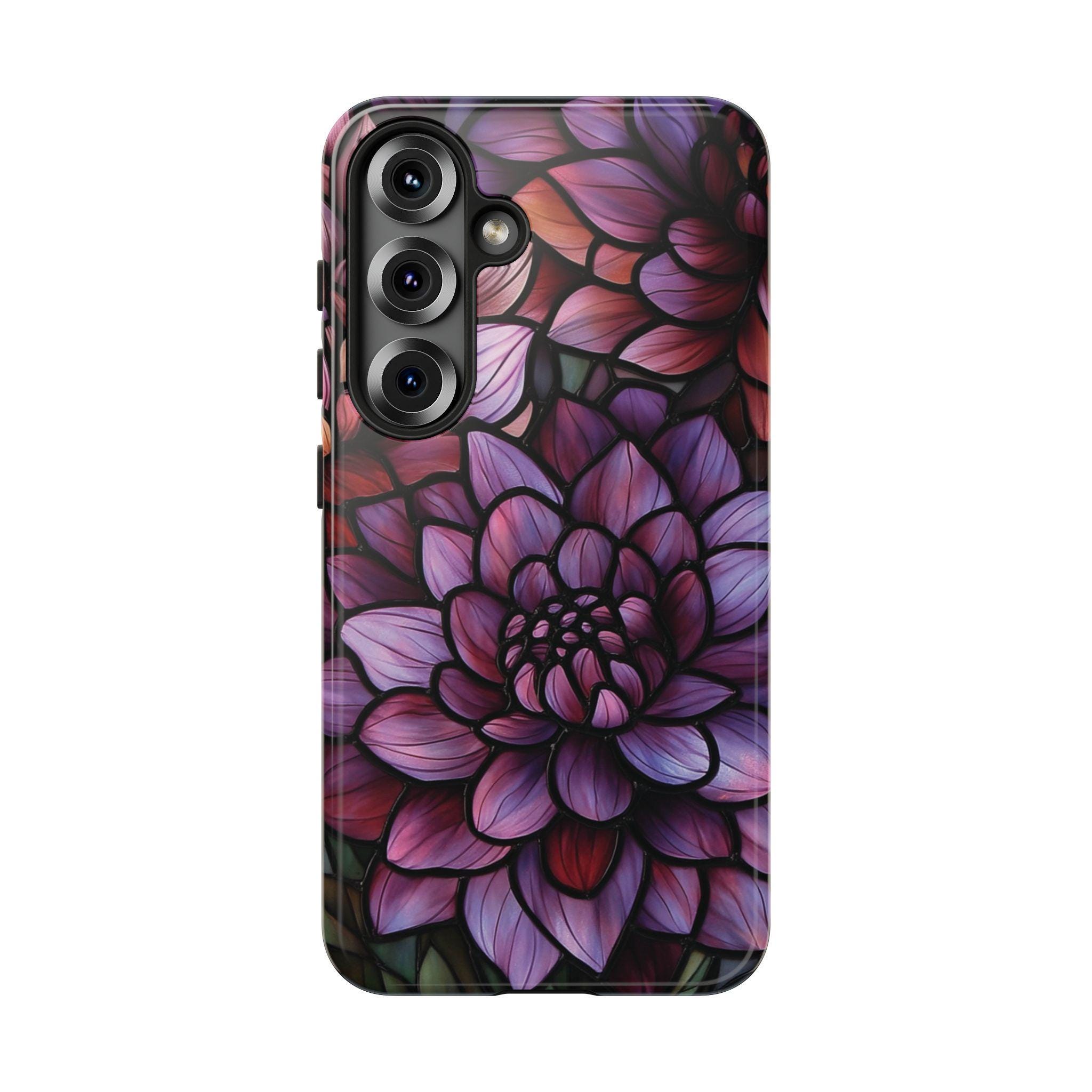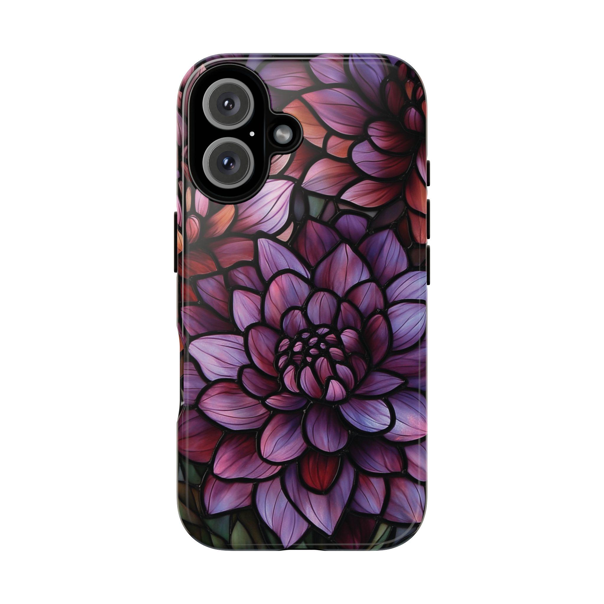 Discover the perfect combination of protection and style with this durable, impact-resistant phone case featuring a striking dahlia flower design. Crafted to shield your phone from drops and bumps, this tough case showcases intricate, vibrant petals in shades of purple, pink, and red—adding a touch of elegance to your everyday essentials. Make a statement and keep your phone safe with this beautiful, functional accessory!
