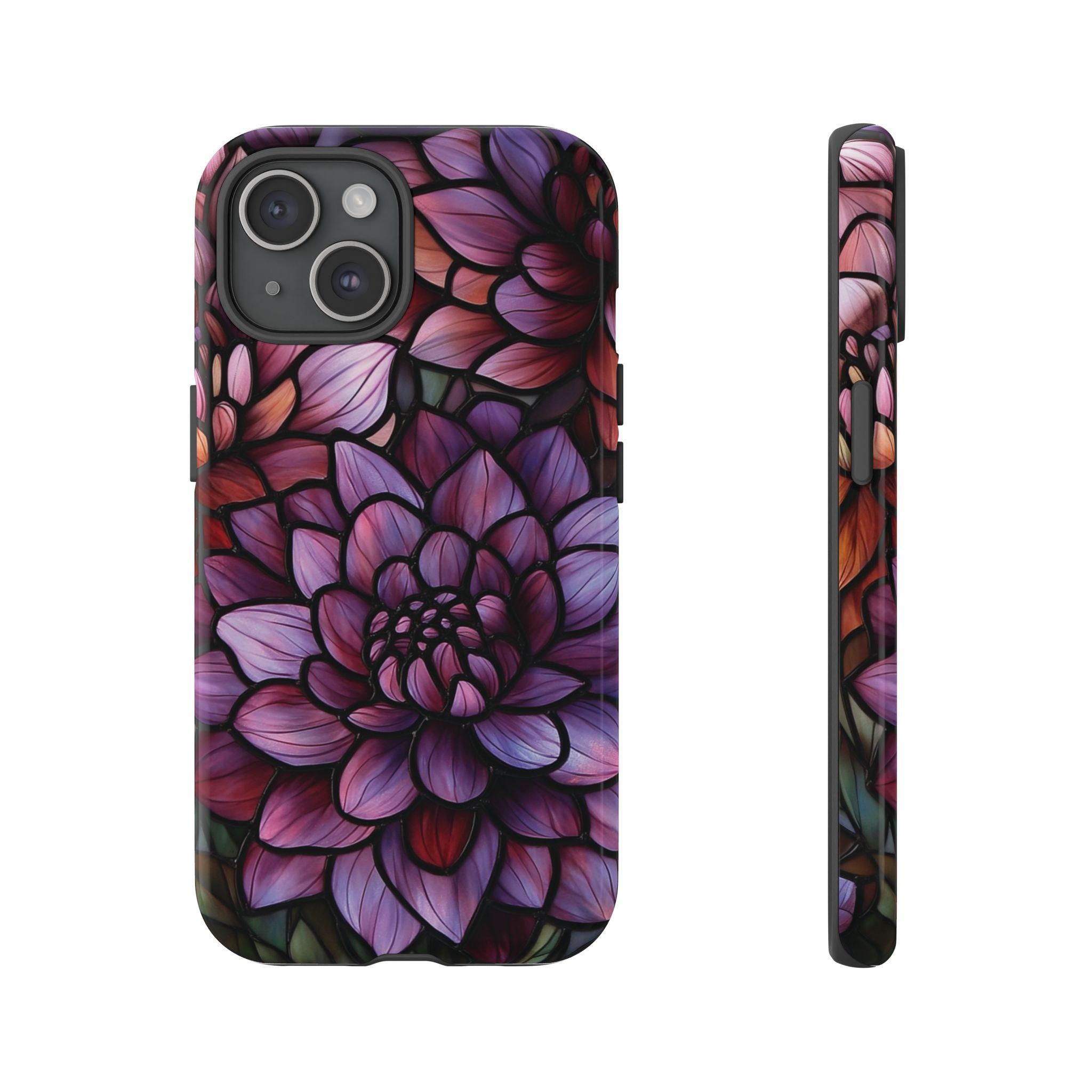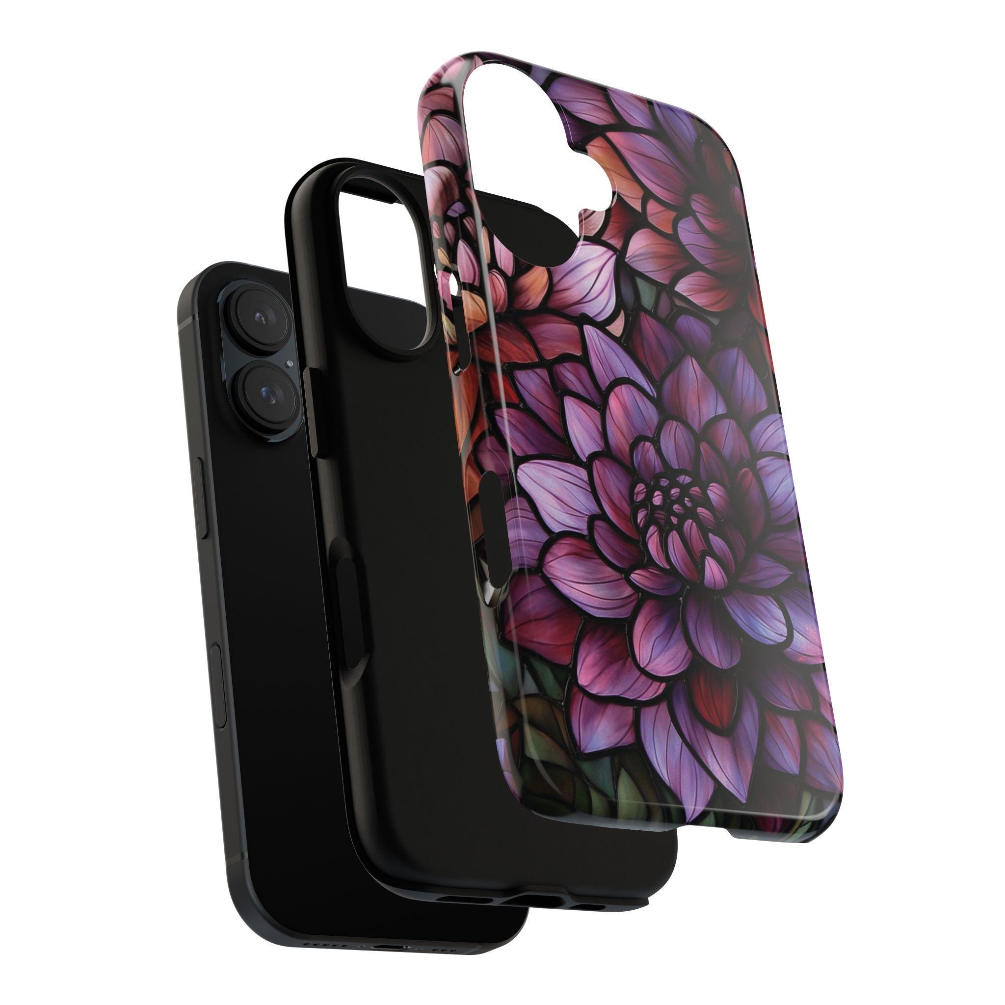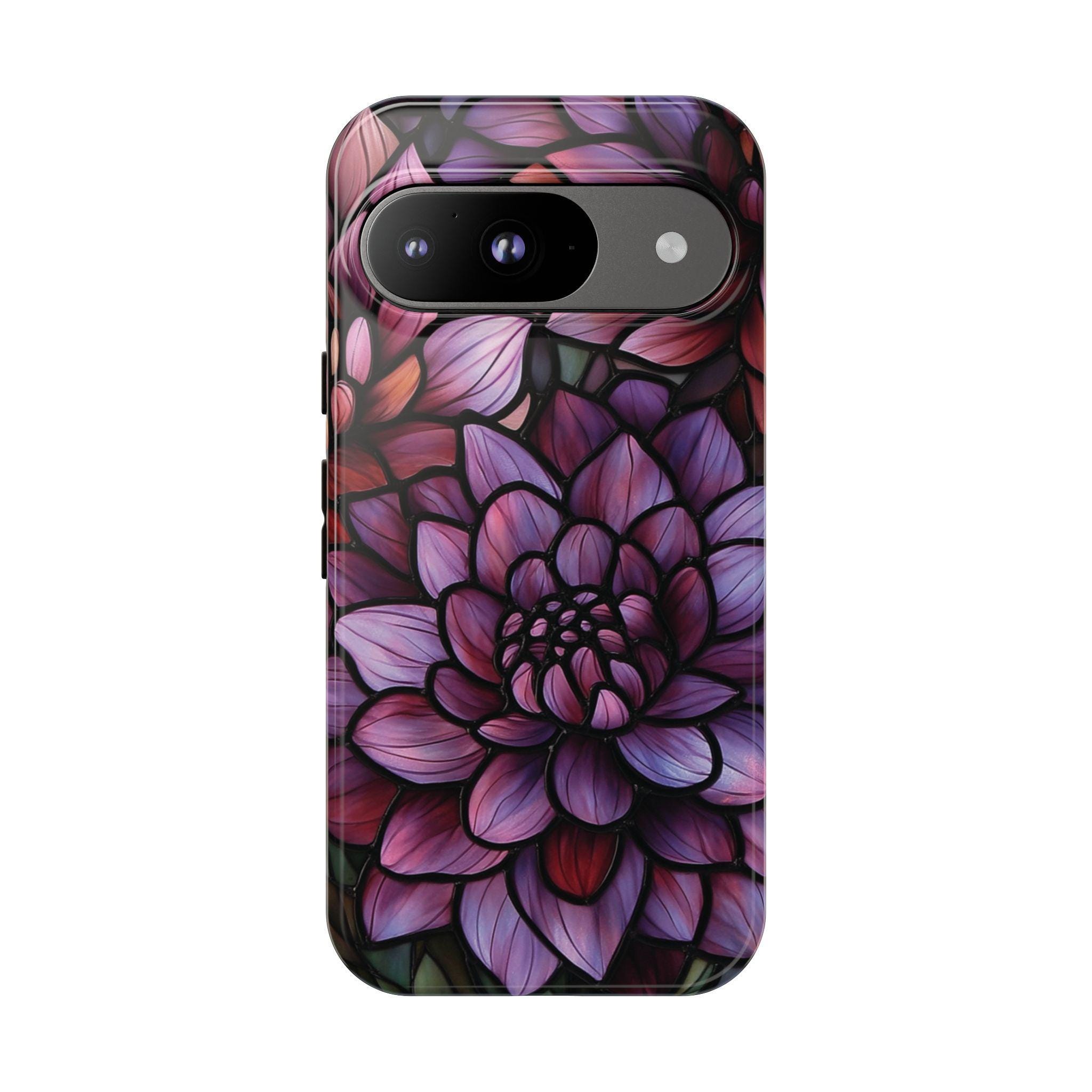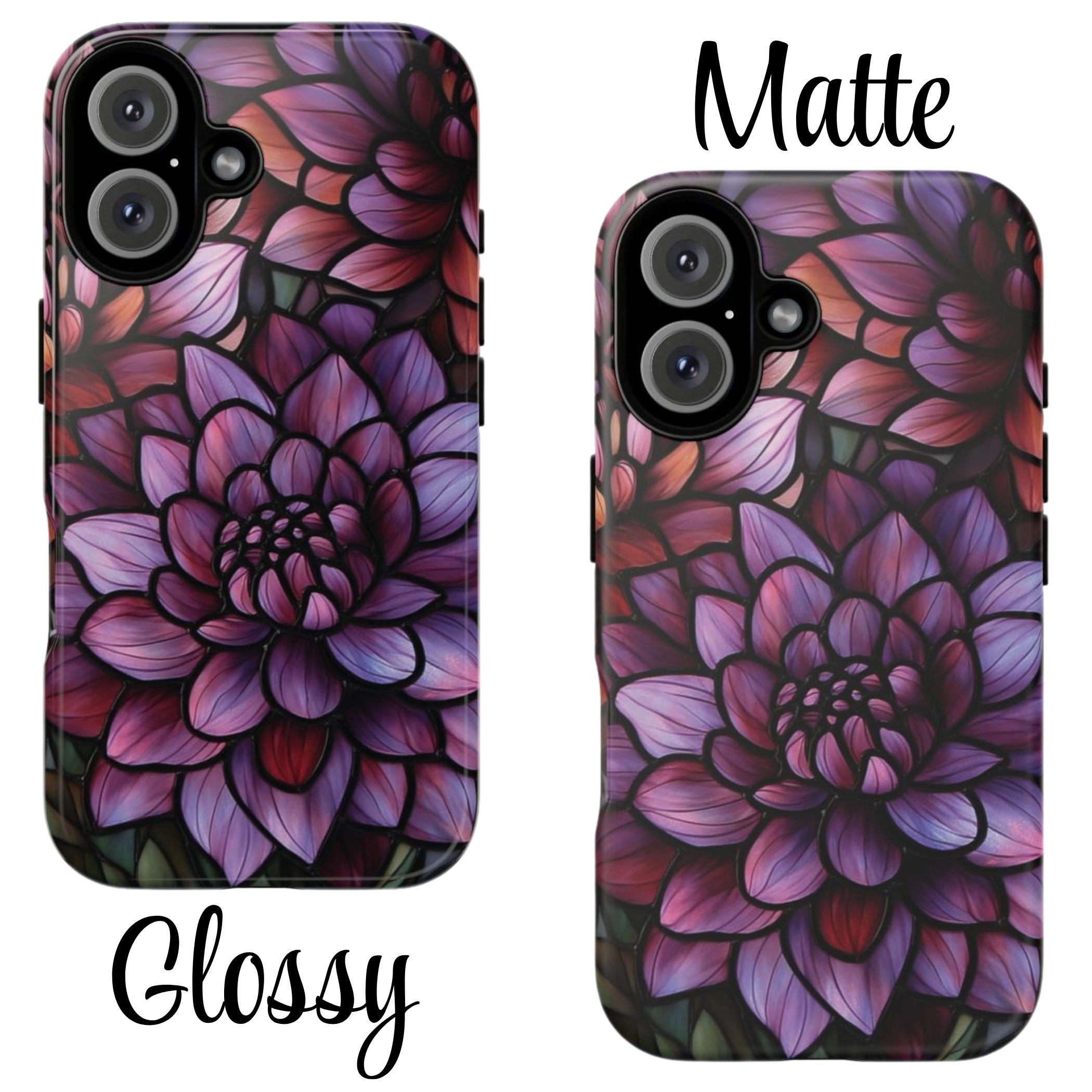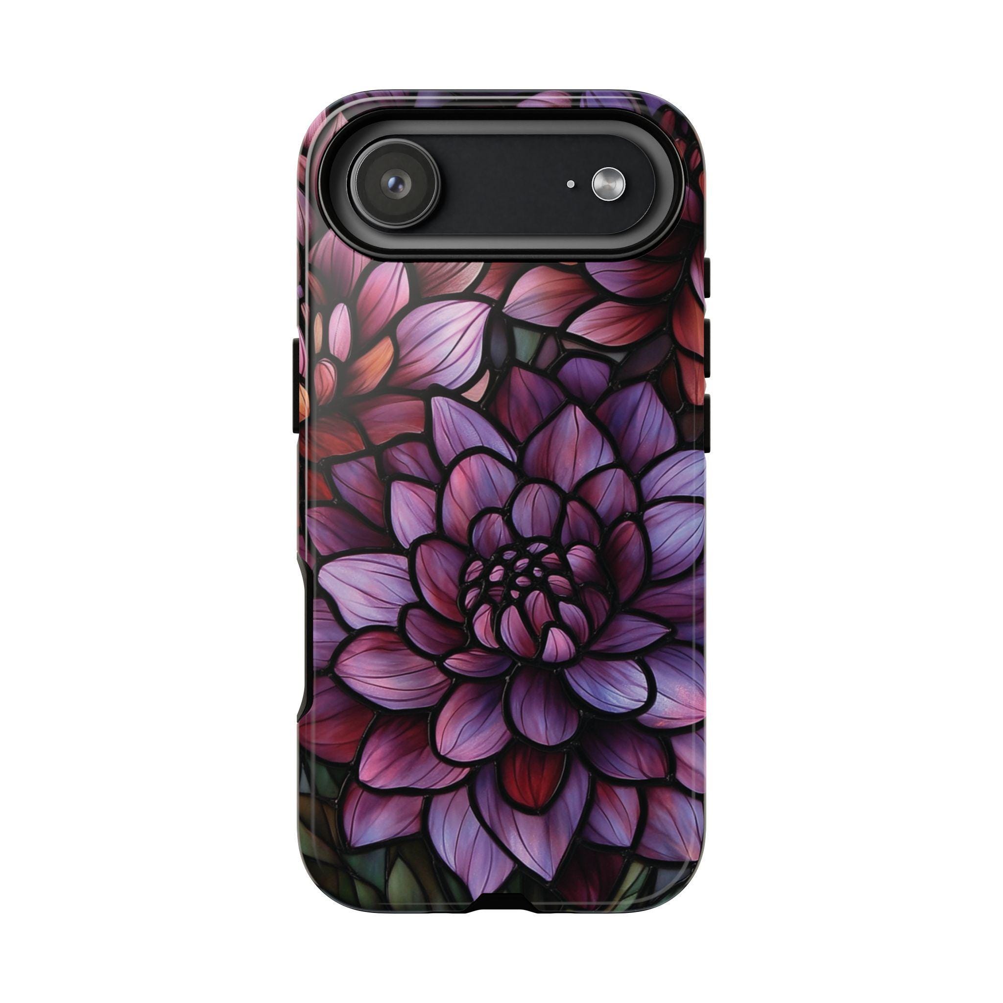Discover the perfect combination of protection and style with this durable, impact-resistant phone case featuring a striking dahlia flower design. Crafted to shield your phone from drops and bumps, this tough case showcases intricate, vibrant petals in shades of purple, pink, and red—adding a touch of elegance to your everyday essentials. Make a statement and keep your phone safe with this beautiful, functional accessory!