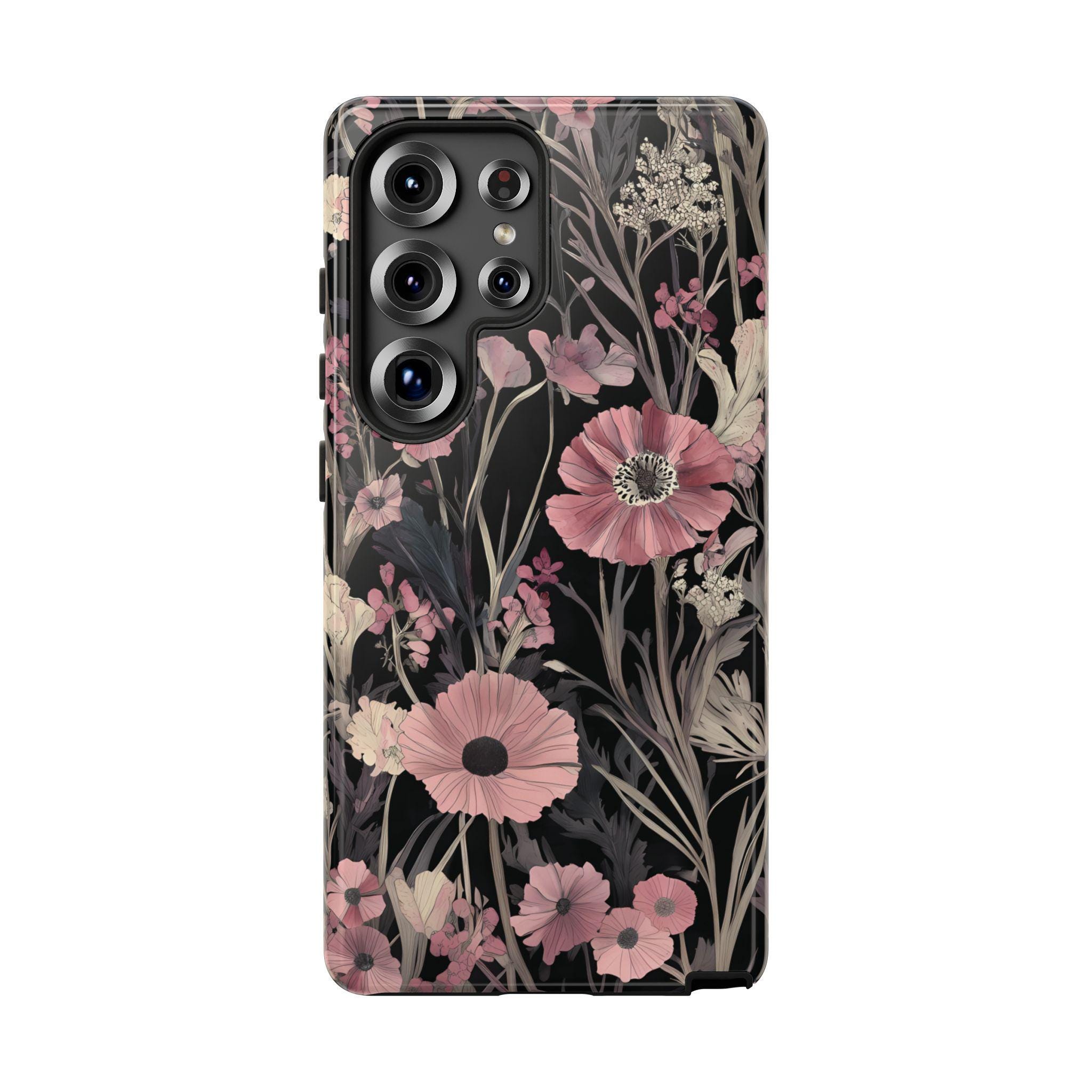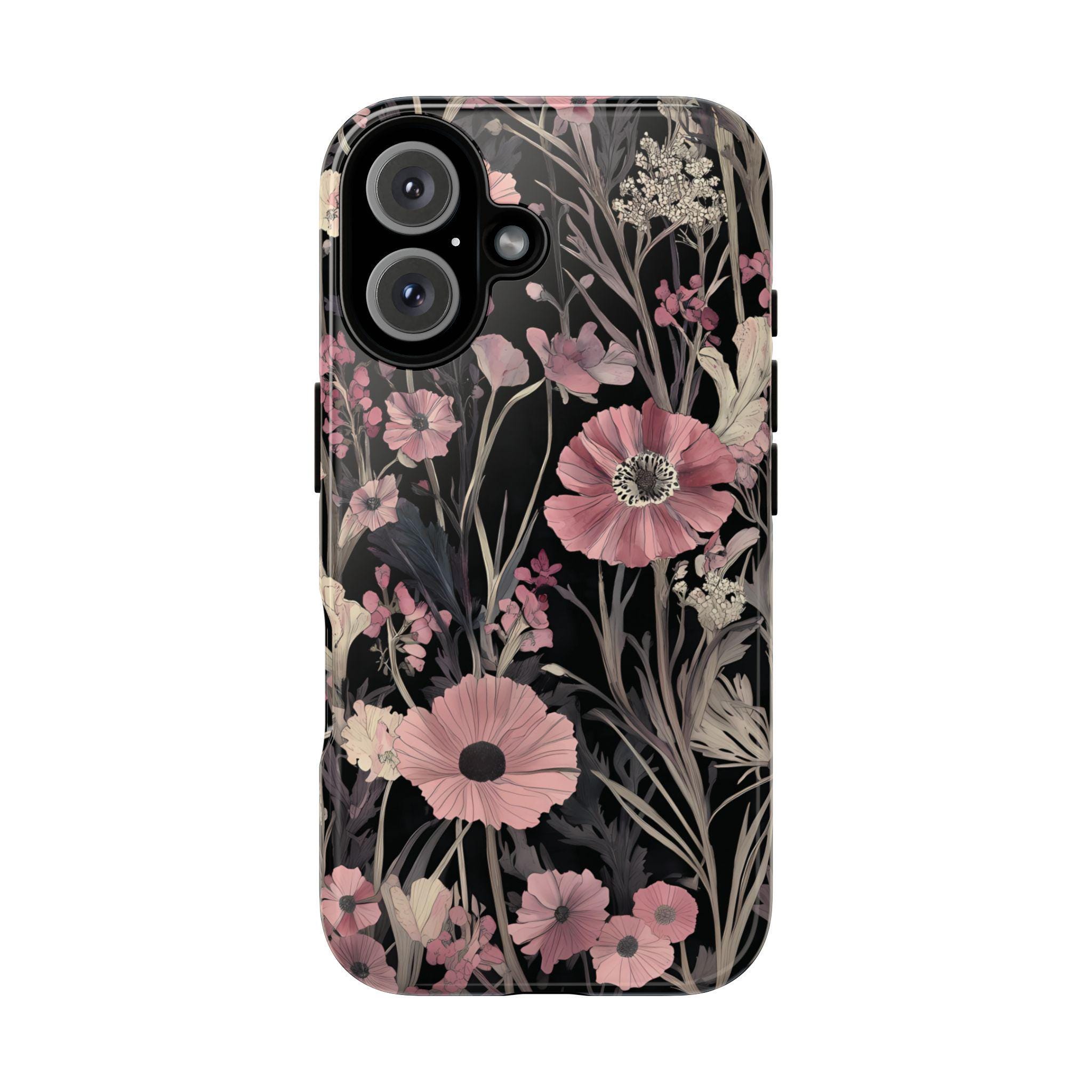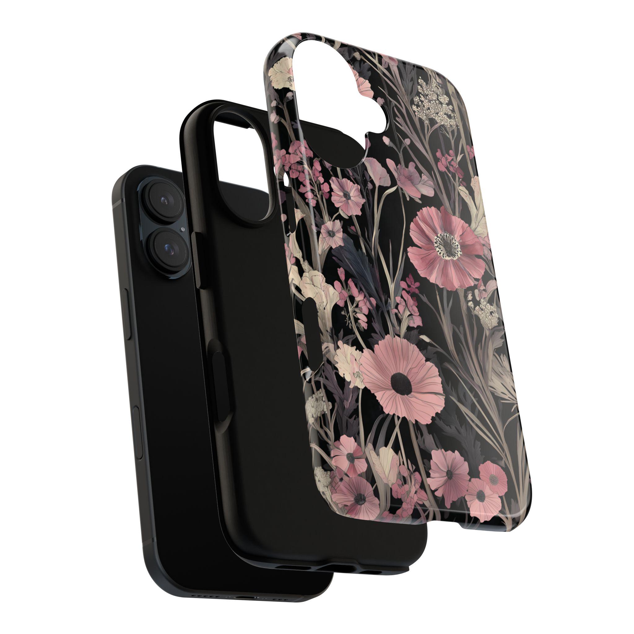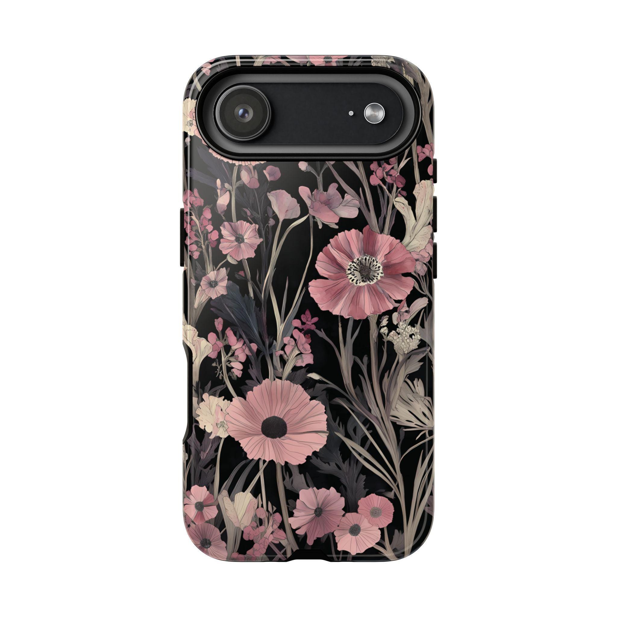 Keep your phone safe and stylish with this tough, impact-resistant case adorned with beautiful pink and cream flowers on a sleek black background. Designed for everyday protection against drops and scratches, it combines durability with elegance. Perfect for those who want to add a touch of nature-inspired beauty to their device while staying protected.