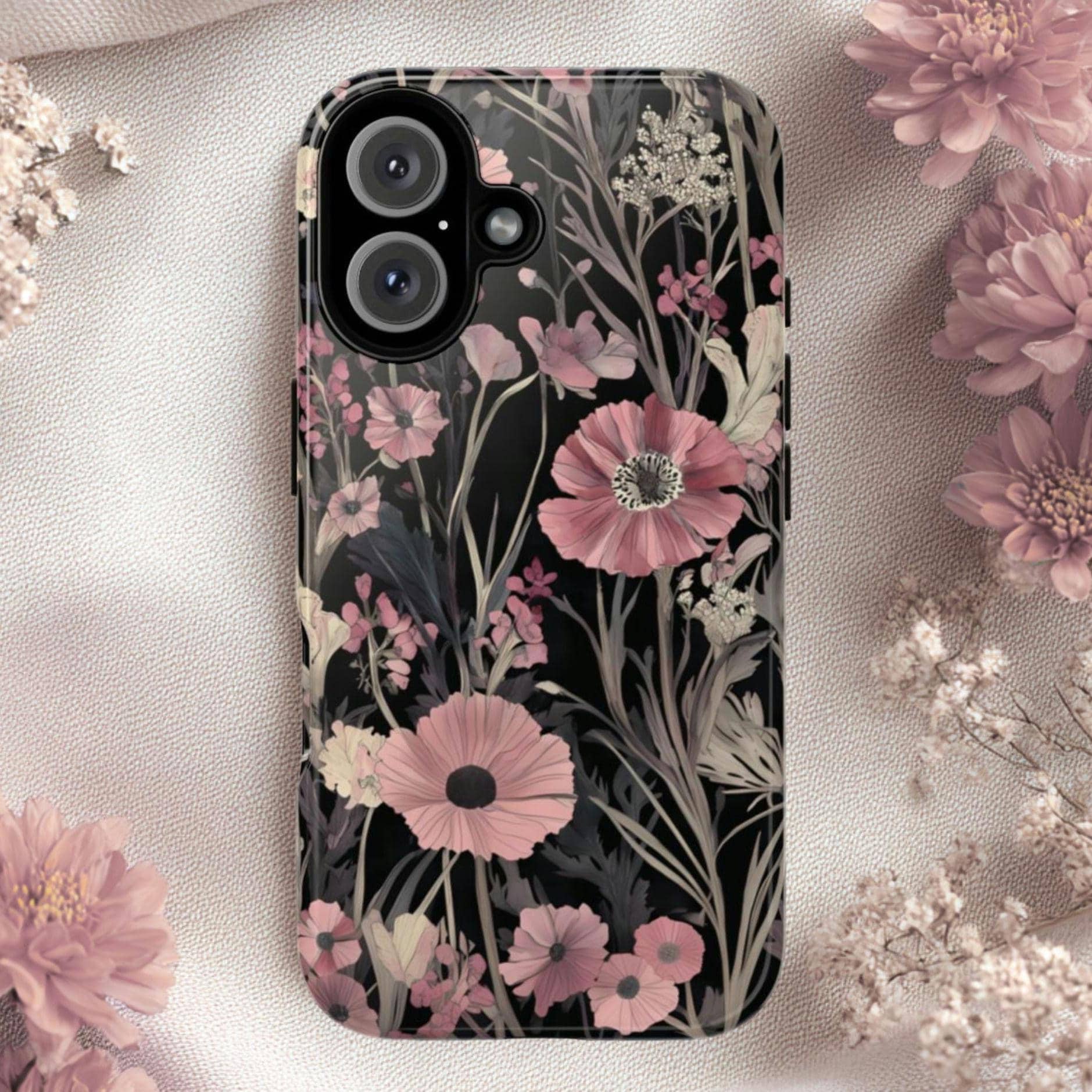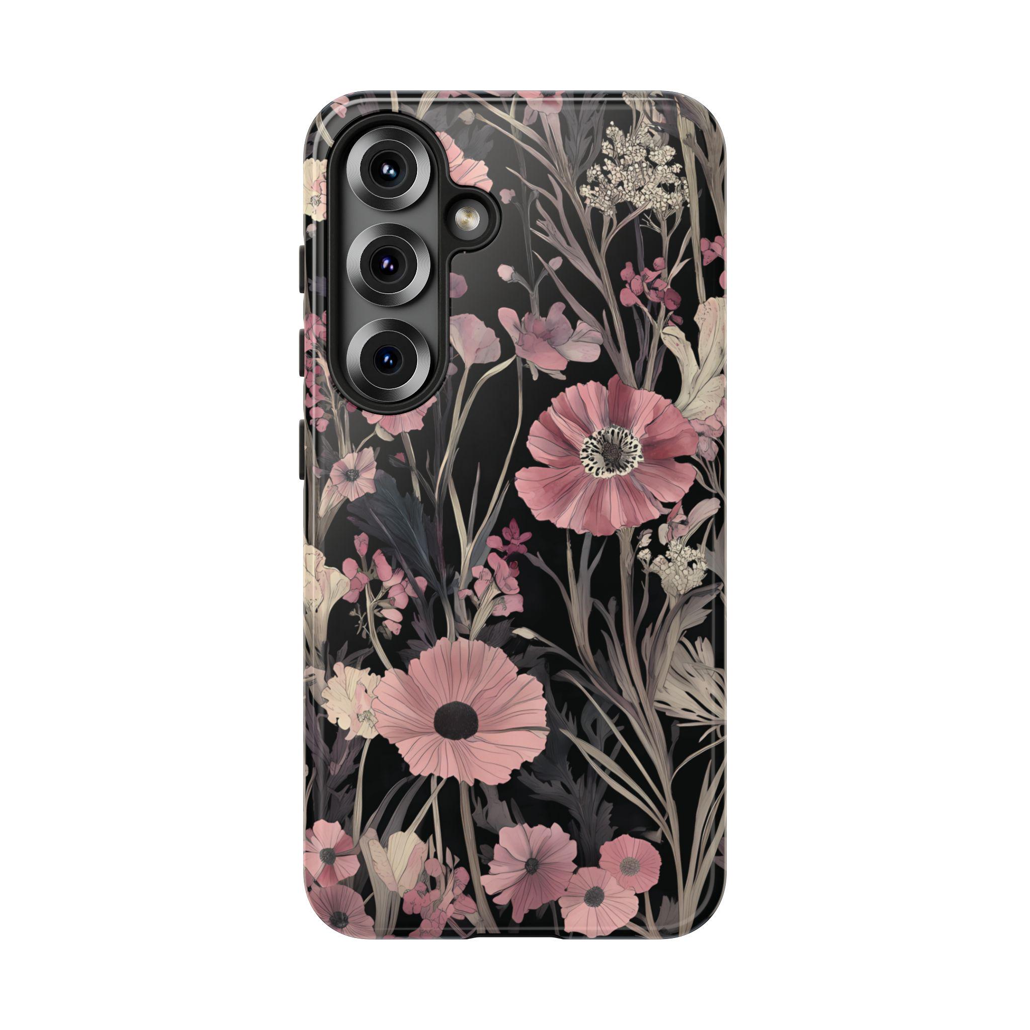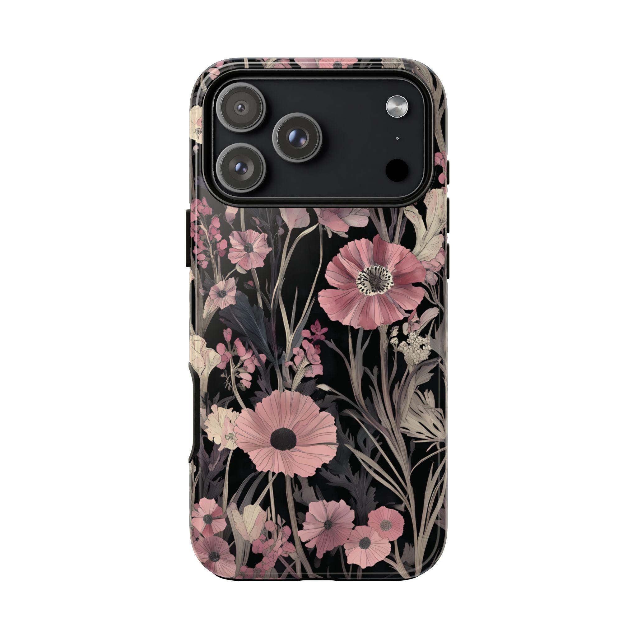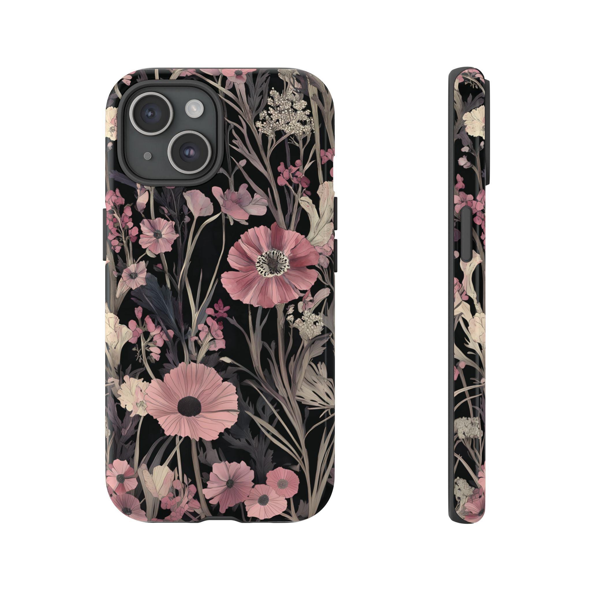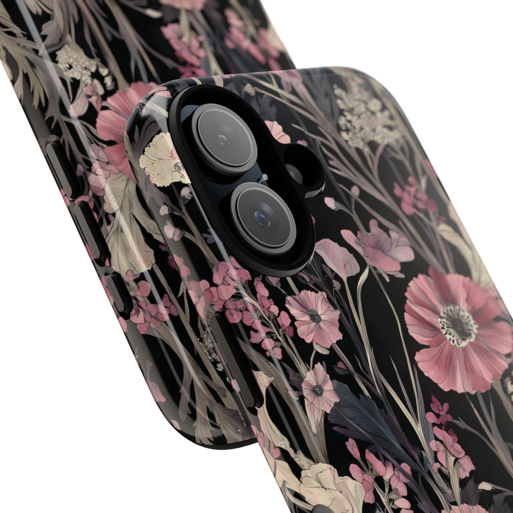 Keep your phone safe and stylish with this tough, impact-resistant case adorned with beautiful pink and cream flowers on a sleek black background. Designed for everyday protection against drops and scratches, it combines durability with elegance. Perfect for those who want to add a touch of nature-inspired beauty to their device while staying protected.