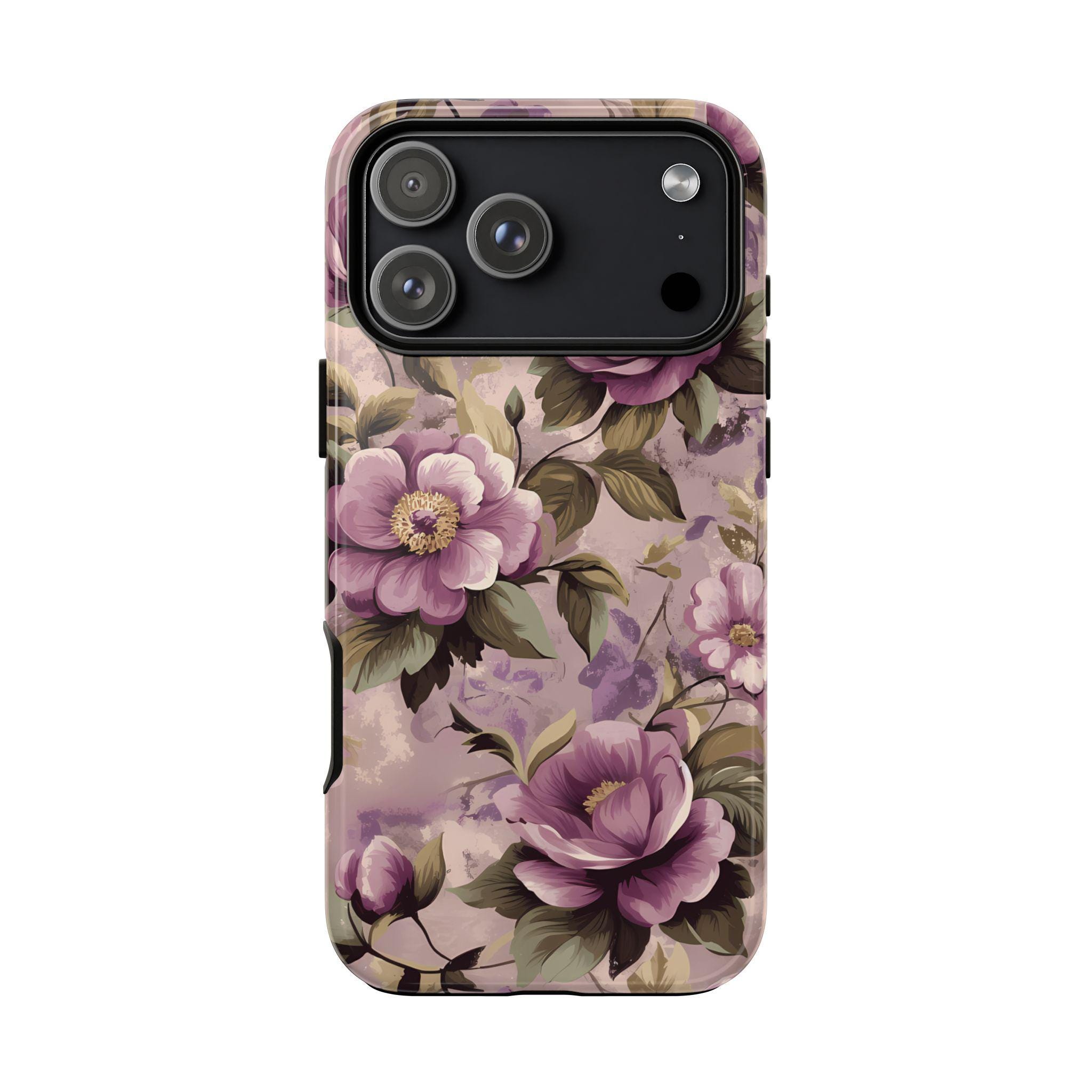 Protect your phone in style with this durable, tough floral phone case. Featuring a beautiful, artistic design of blooming flowers in soft purples and greens, this case offers both fashion and function. Crafted to withstand everyday bumps and drops, it ensures your device stays safe while looking stunning. Perfect for those who want a blend of elegance and resilience—make your phone uniquely yours!