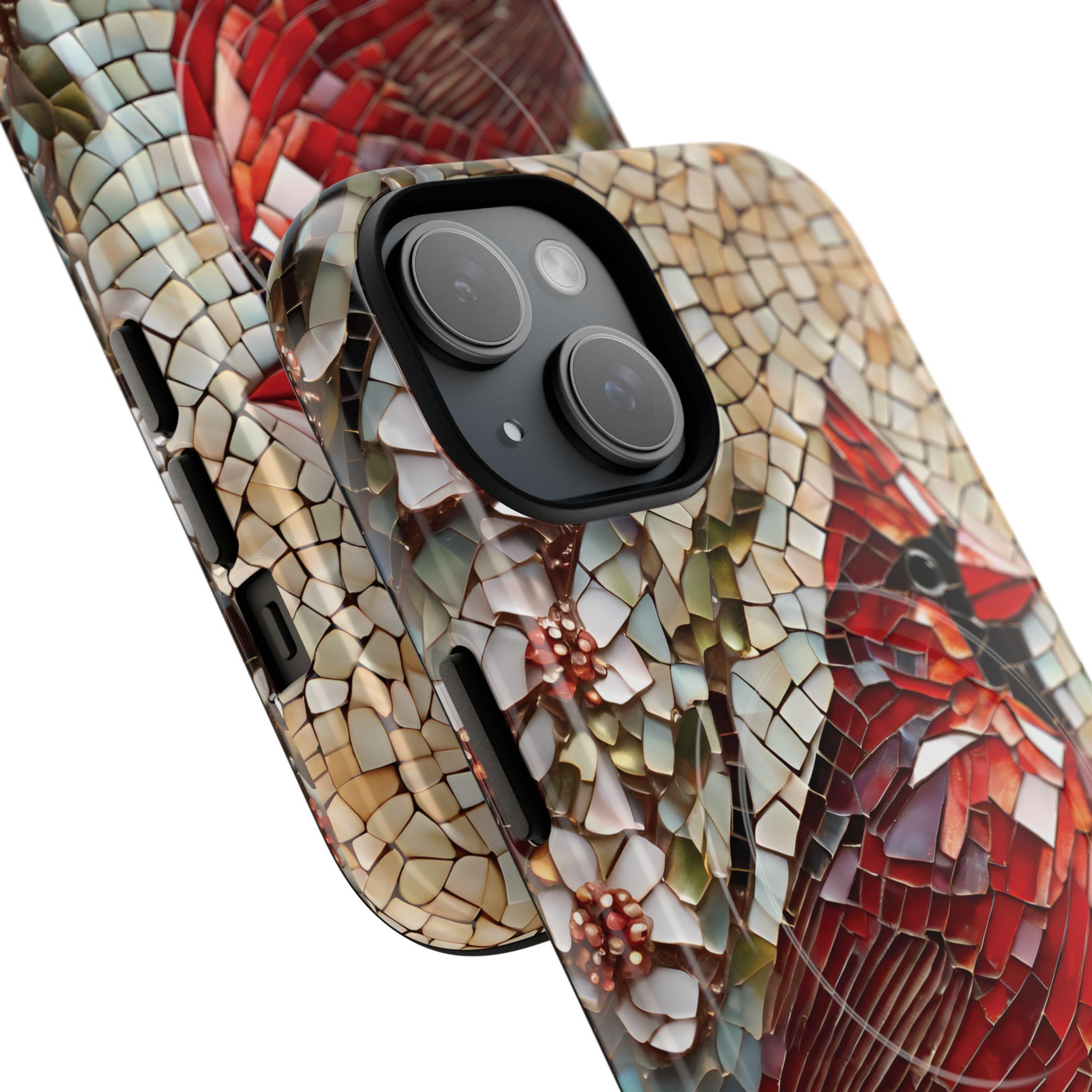 Bring the beauty of nature to your everyday carry with this vibrant mosaic-style cardinal MagSafe tough case, designed for iPhone 14, 15, 16, and 17. Its rich colors and intricate tile-inspired artwork make it a functional yet stunning accessory.