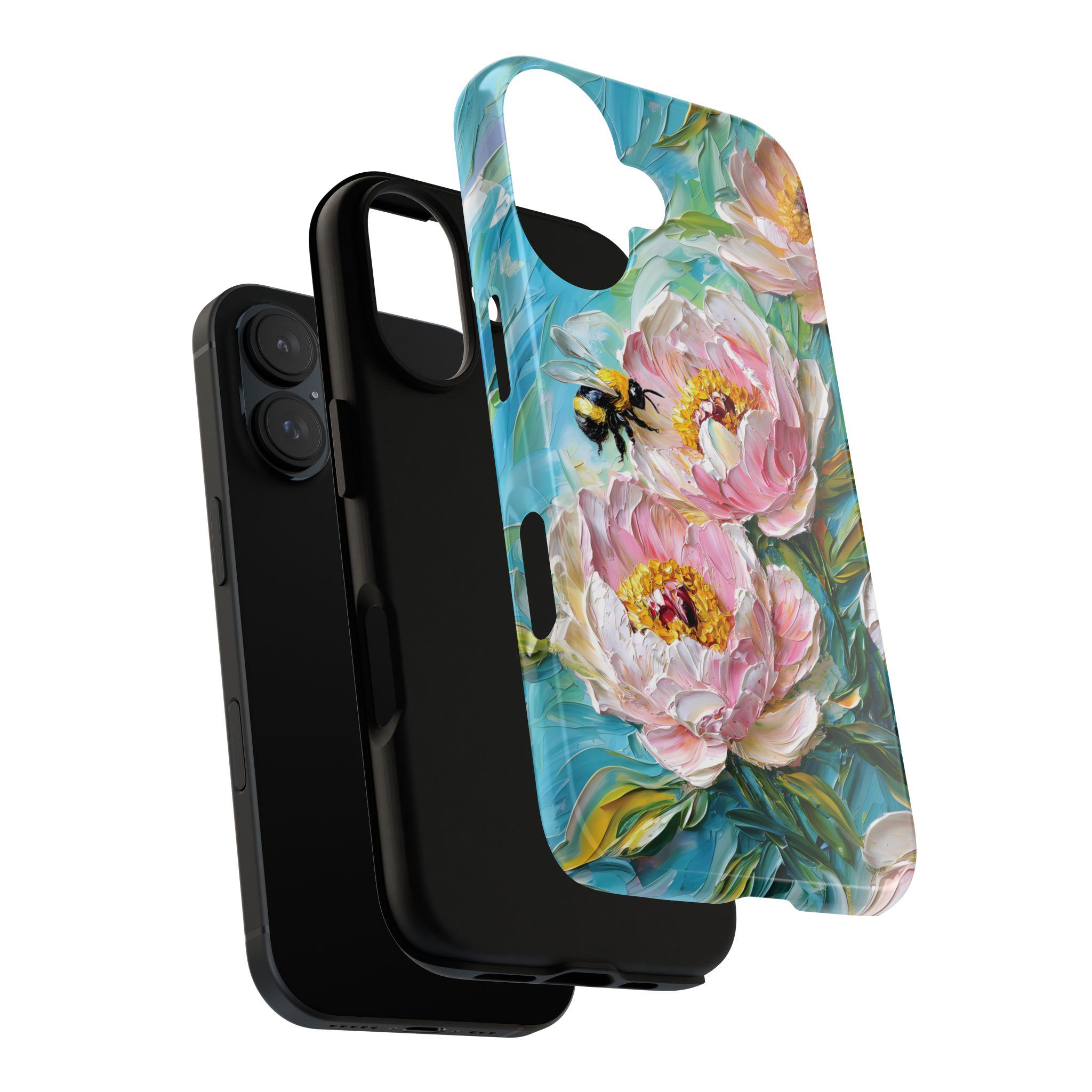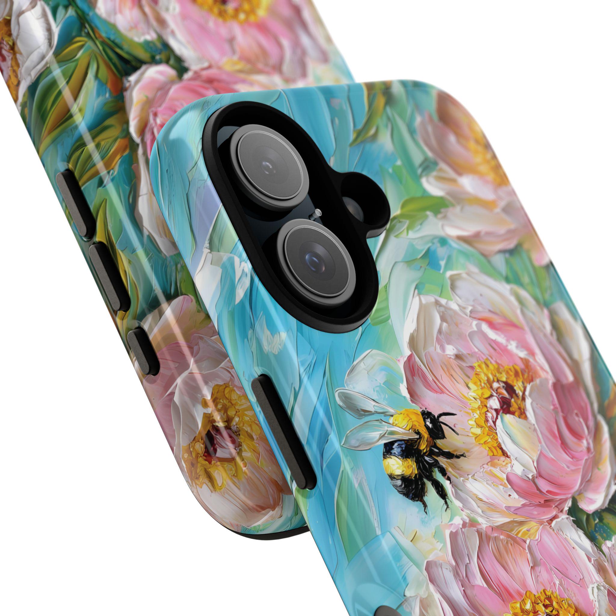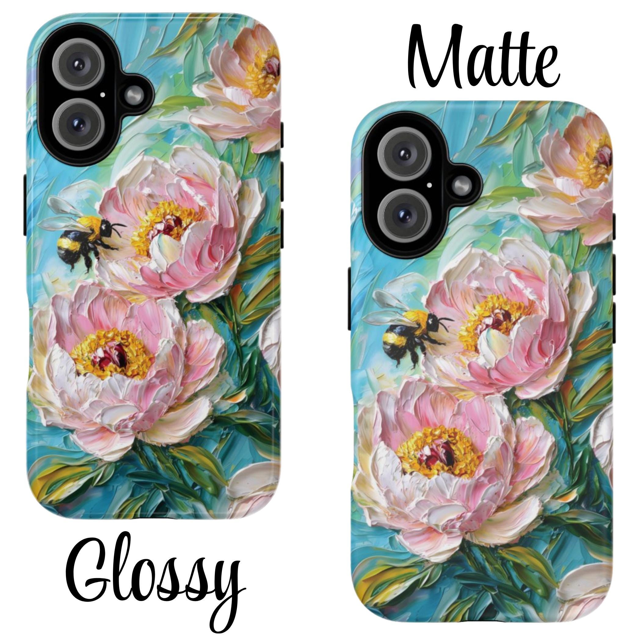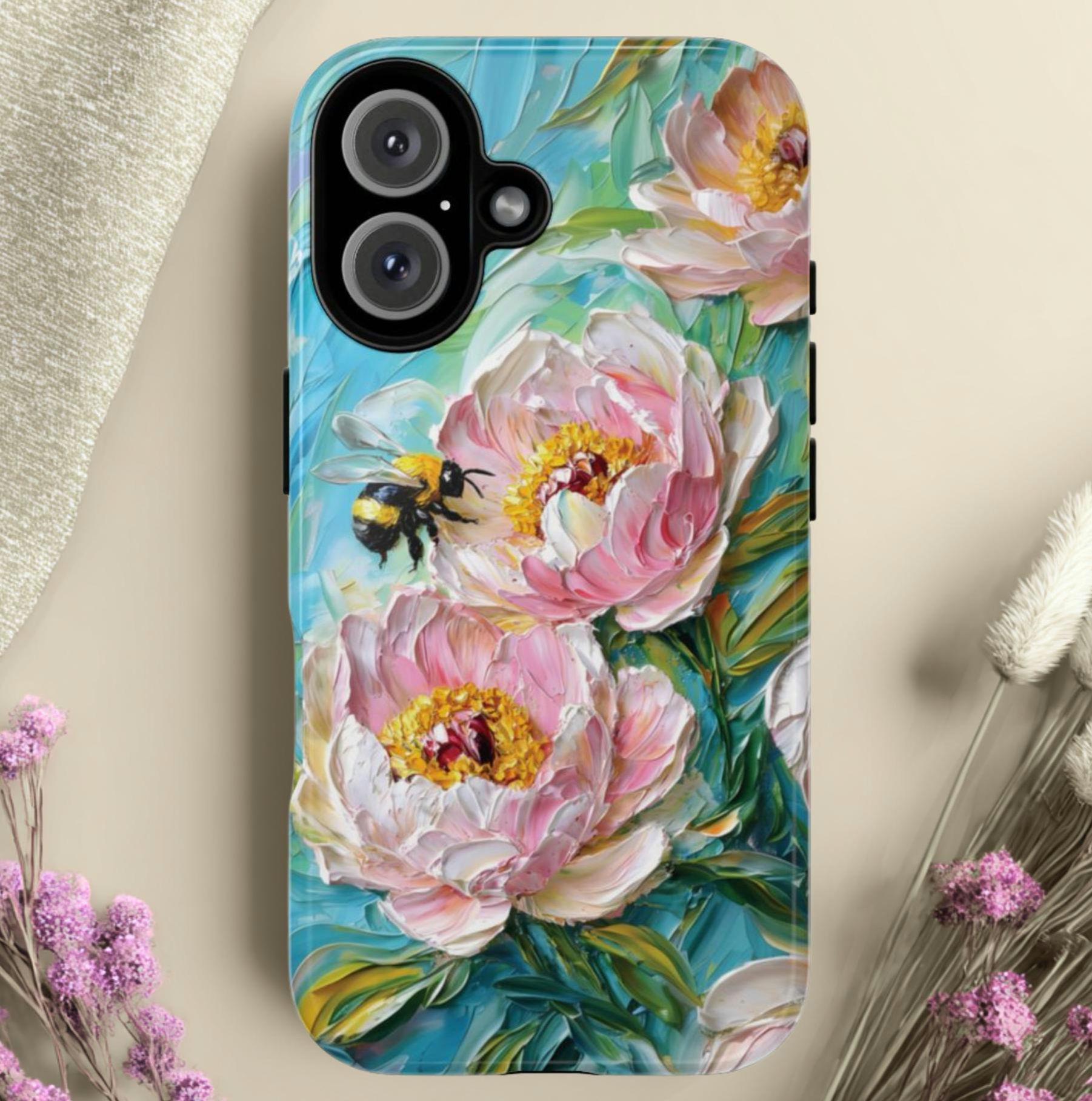 Make your phone bloom with this vibrant floral tough case, featuring lush pink peonies and a delicate bee set against a soft teal background. The painterly brushstrokes and rich colors give it a romantic, garden-inspired feel that’s both fresh and eye-catching. Designed with a durable dual-layer shell, this tough case offers reliable drop protection while showcasing vivid, long-lasting artwork.