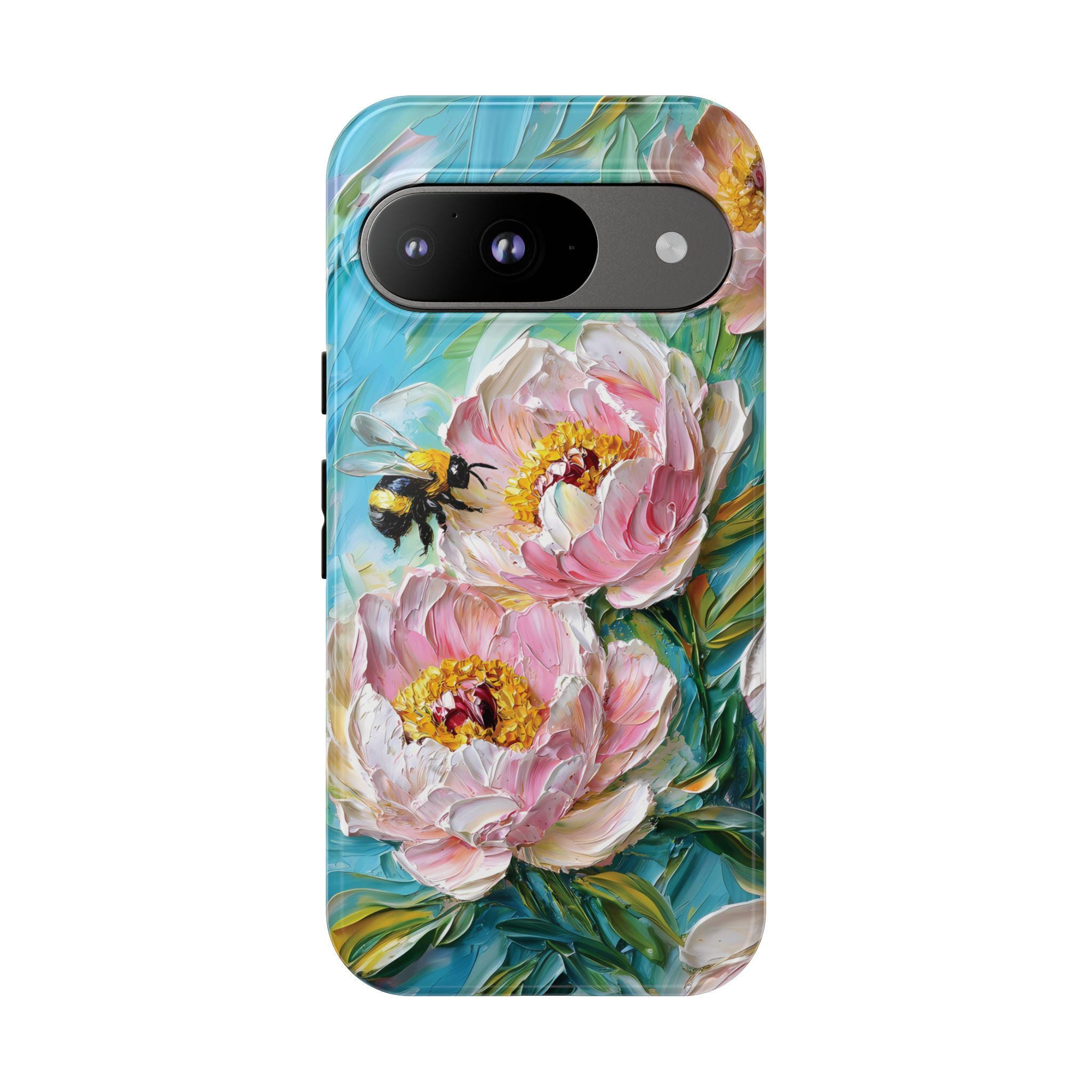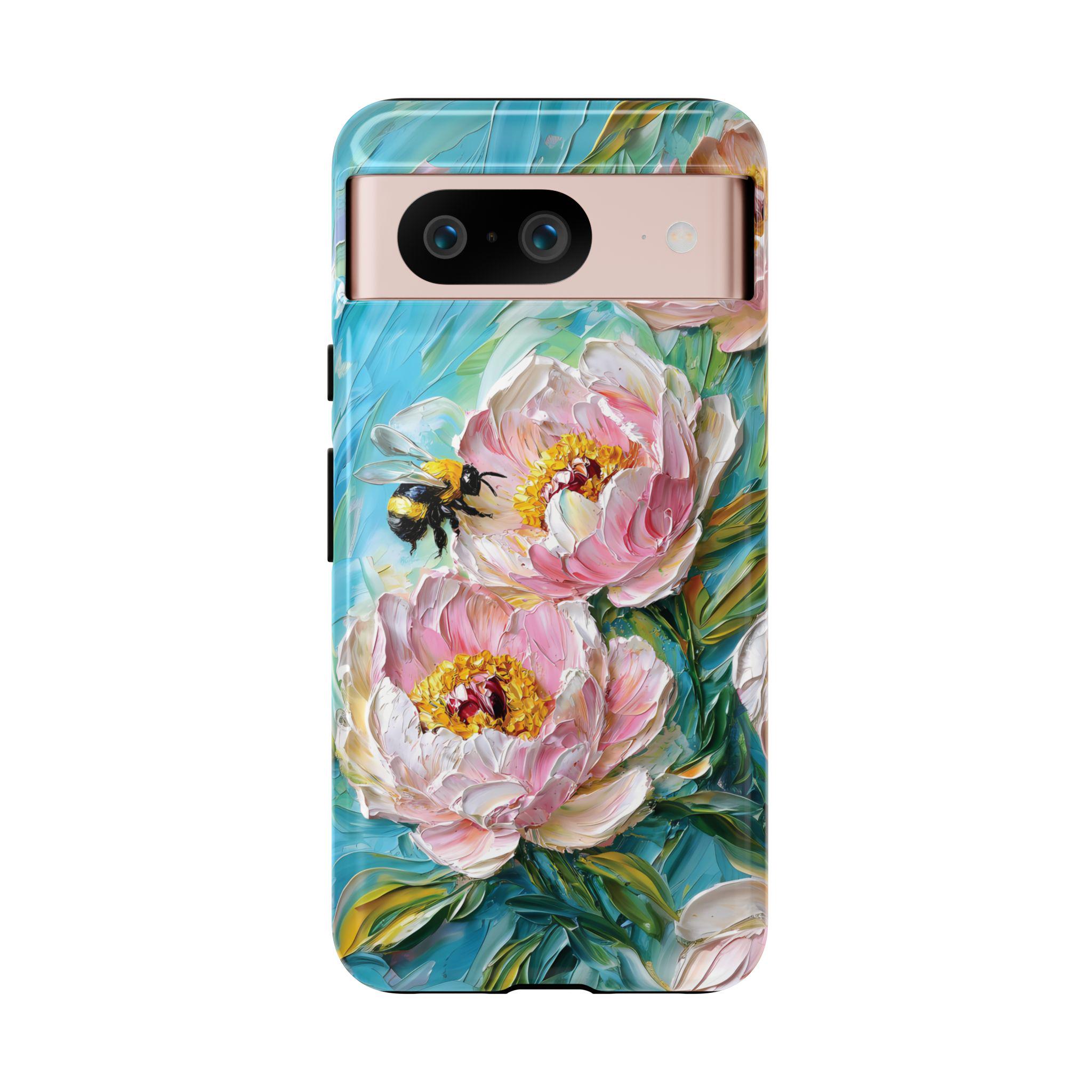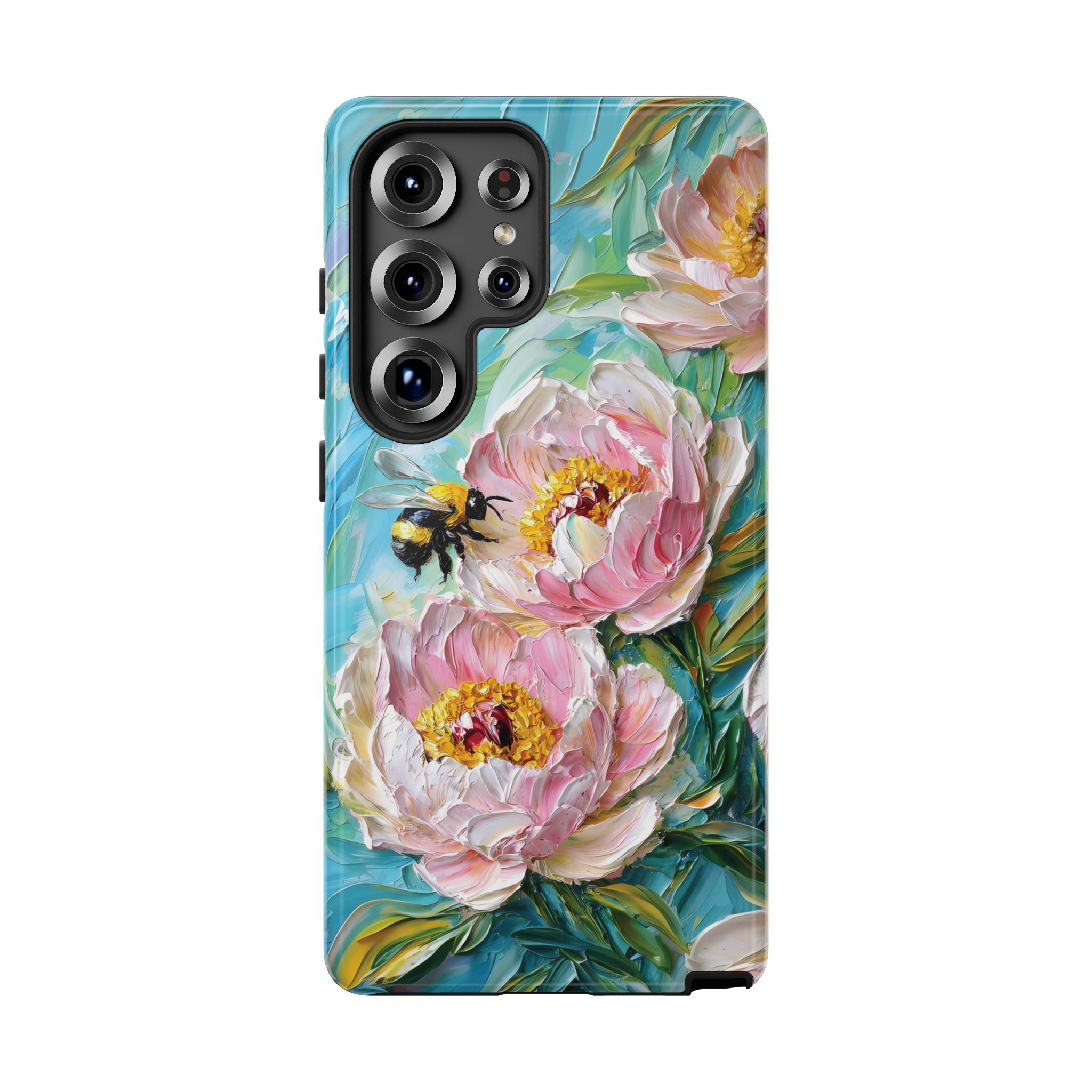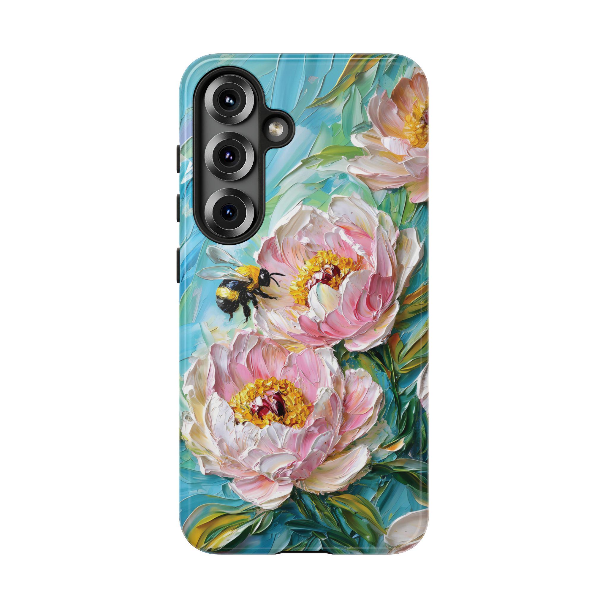 Make your phone bloom with this vibrant floral tough case, featuring lush pink peonies and a delicate bee set against a soft teal background. The painterly brushstrokes and rich colors give it a romantic, garden-inspired feel that’s both fresh and eye-catching. Designed with a durable dual-layer shell, this tough case offers reliable drop protection while showcasing vivid, long-lasting artwork.