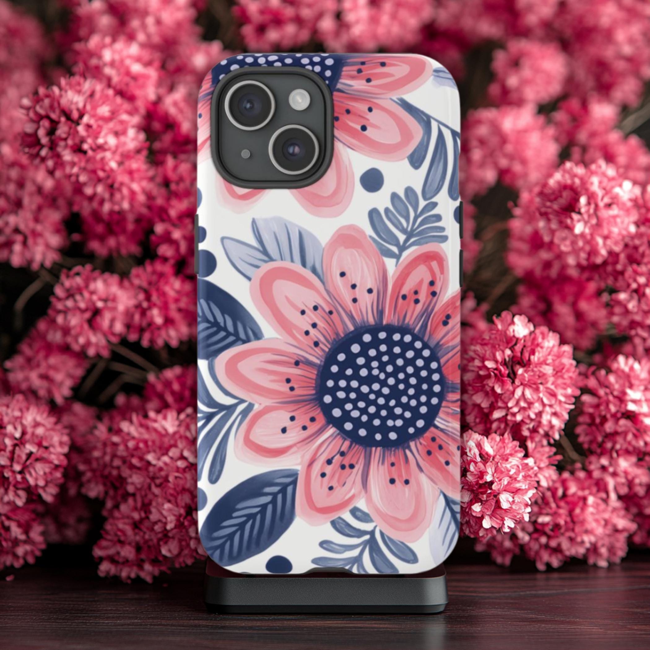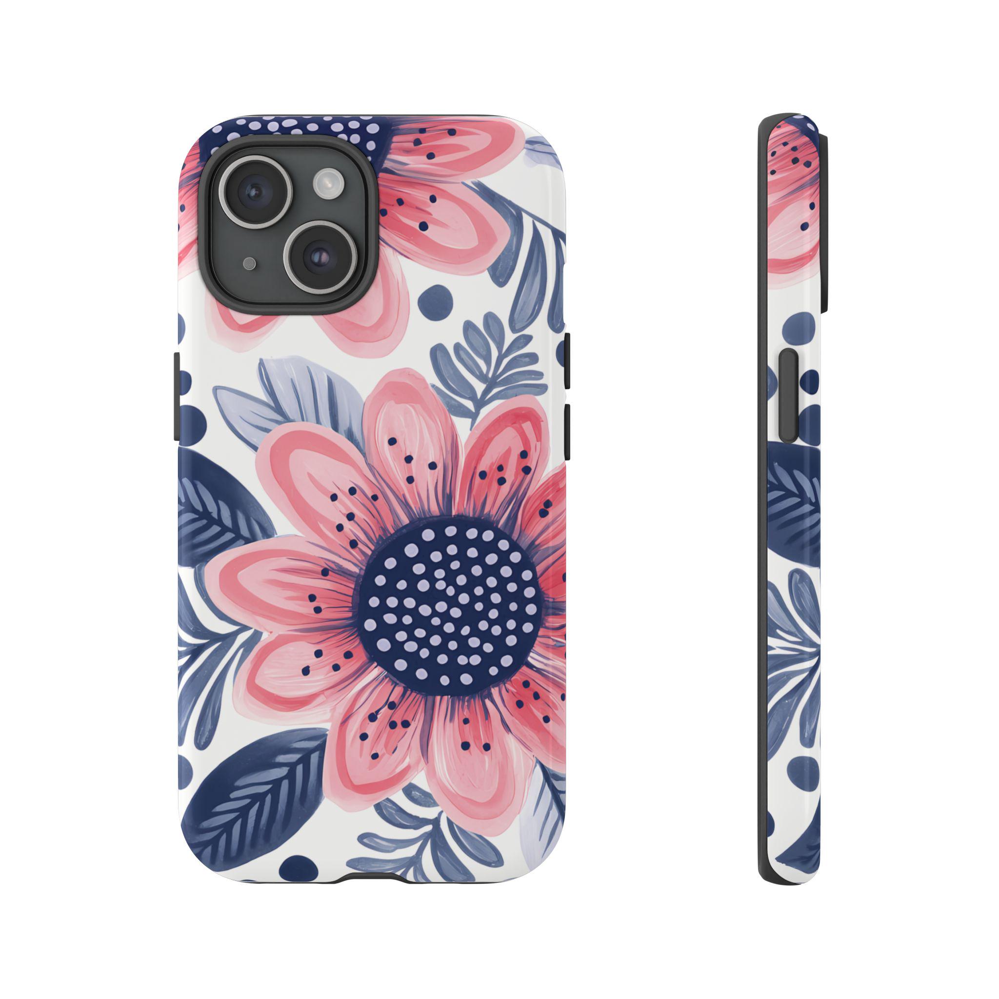 Flower Phone Case, Fits iPhone, Samsung Galaxy & Google Pixel Models, Floral Phone Case, Tough Phone Case, Blue Pink Phone Case, Pretty Case