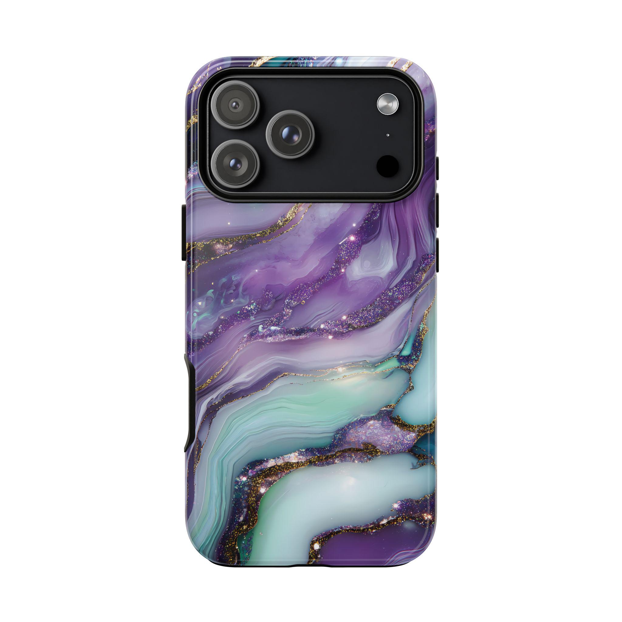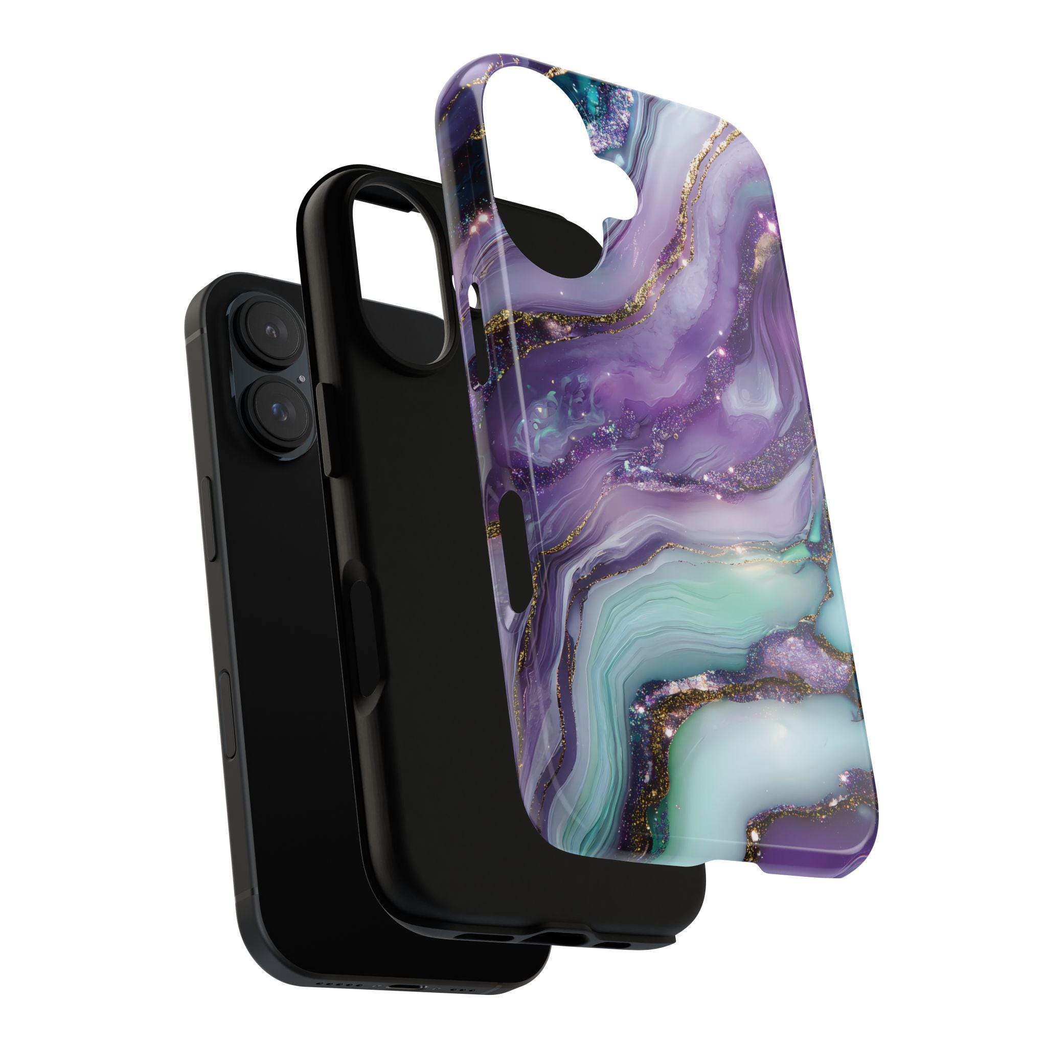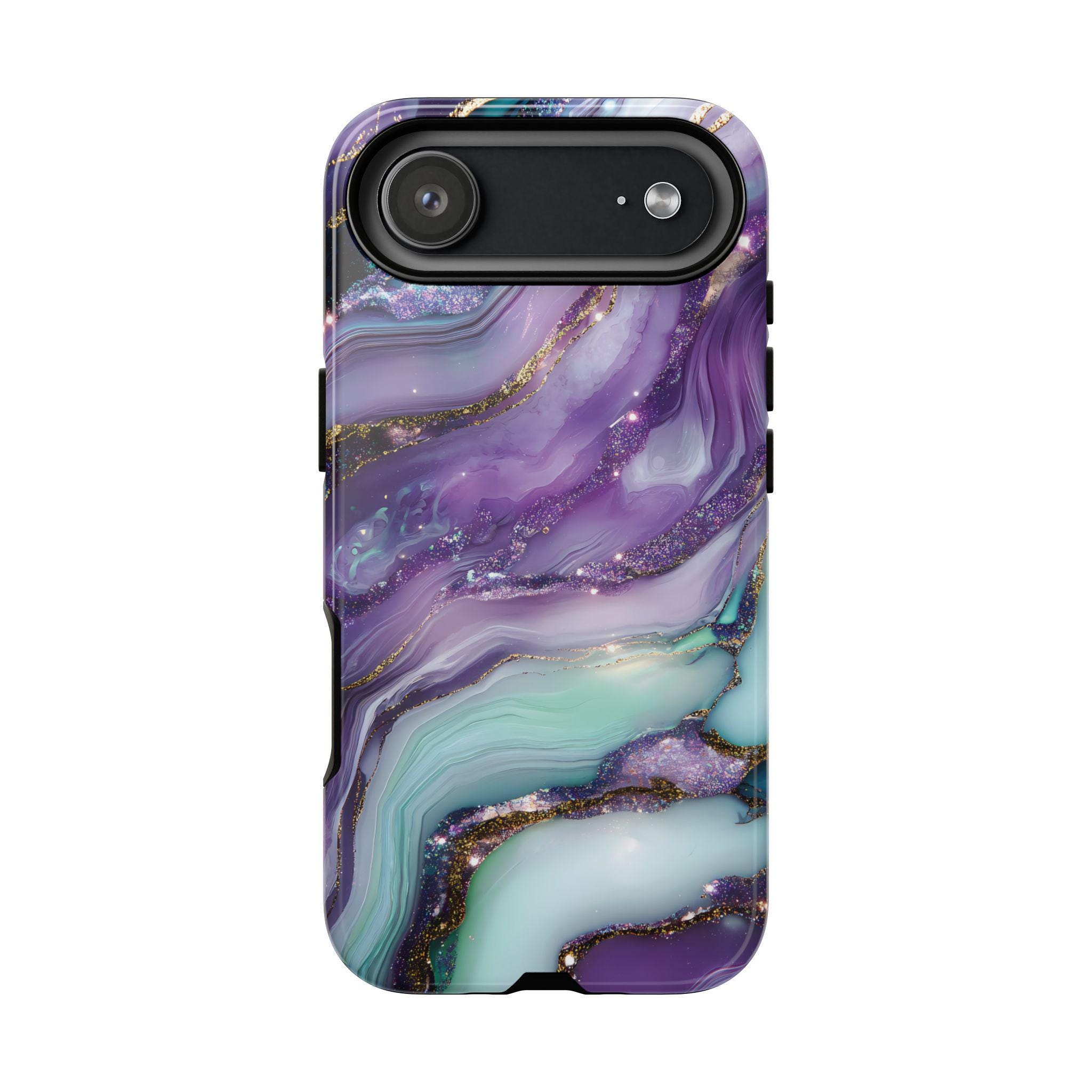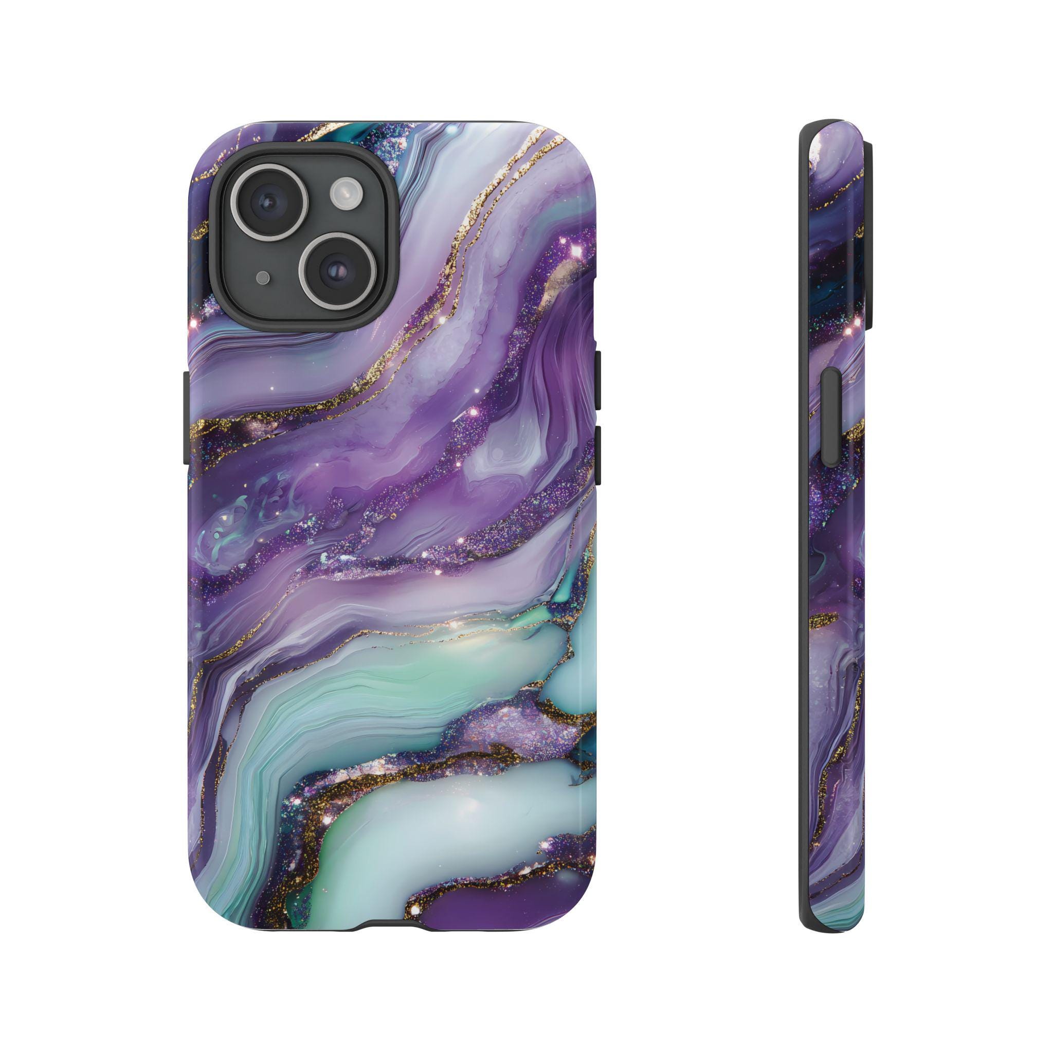 Elevate your phone's style with our Marble Tough Case. Featuring a stunning swirl of purple, teal, and hints of gold, this case effortlessly combines elegance with protection. Perfect for those who love a touch of luxury, it provides durable, reliable defense against everyday bumps and scratches. Make a statement while keeping your device safe!