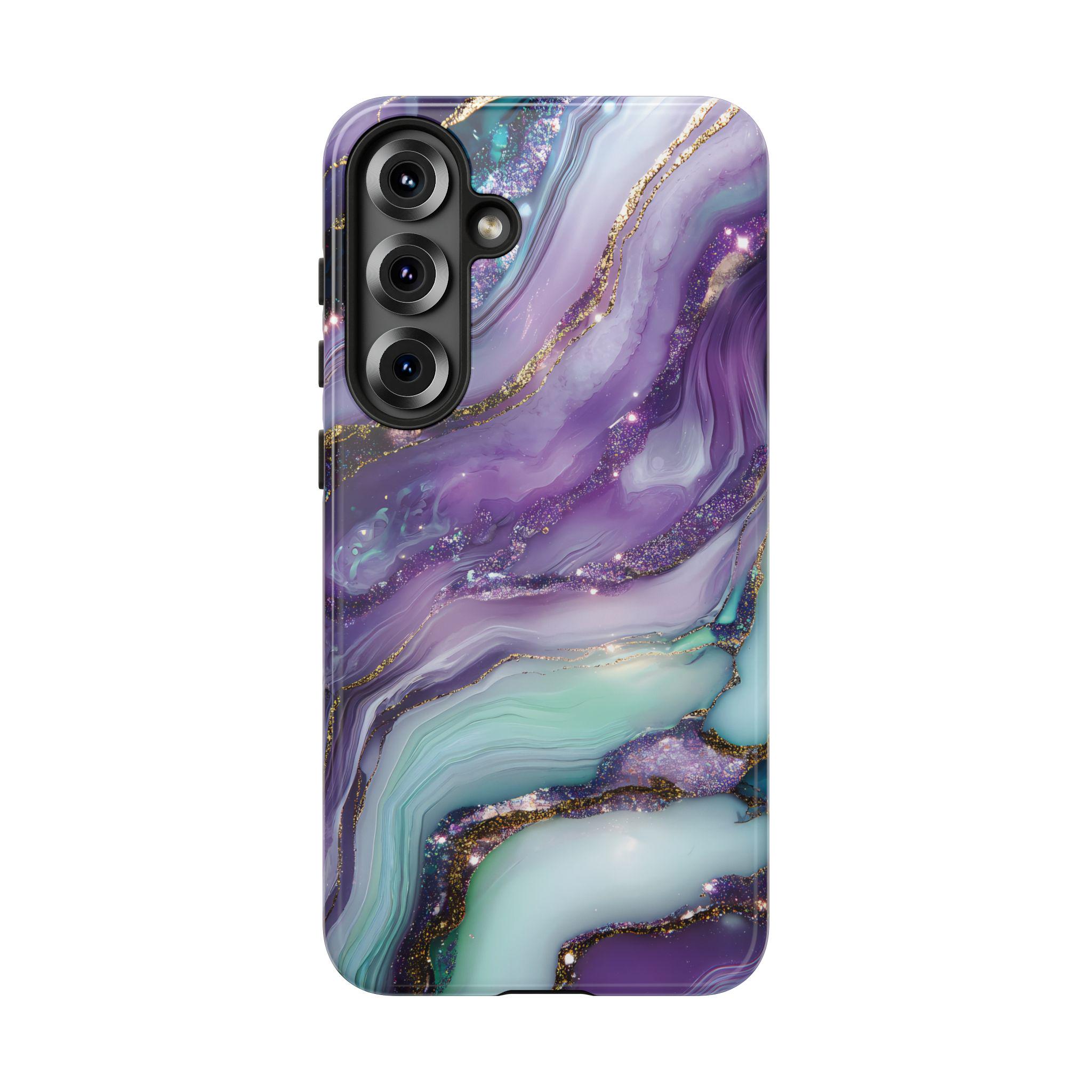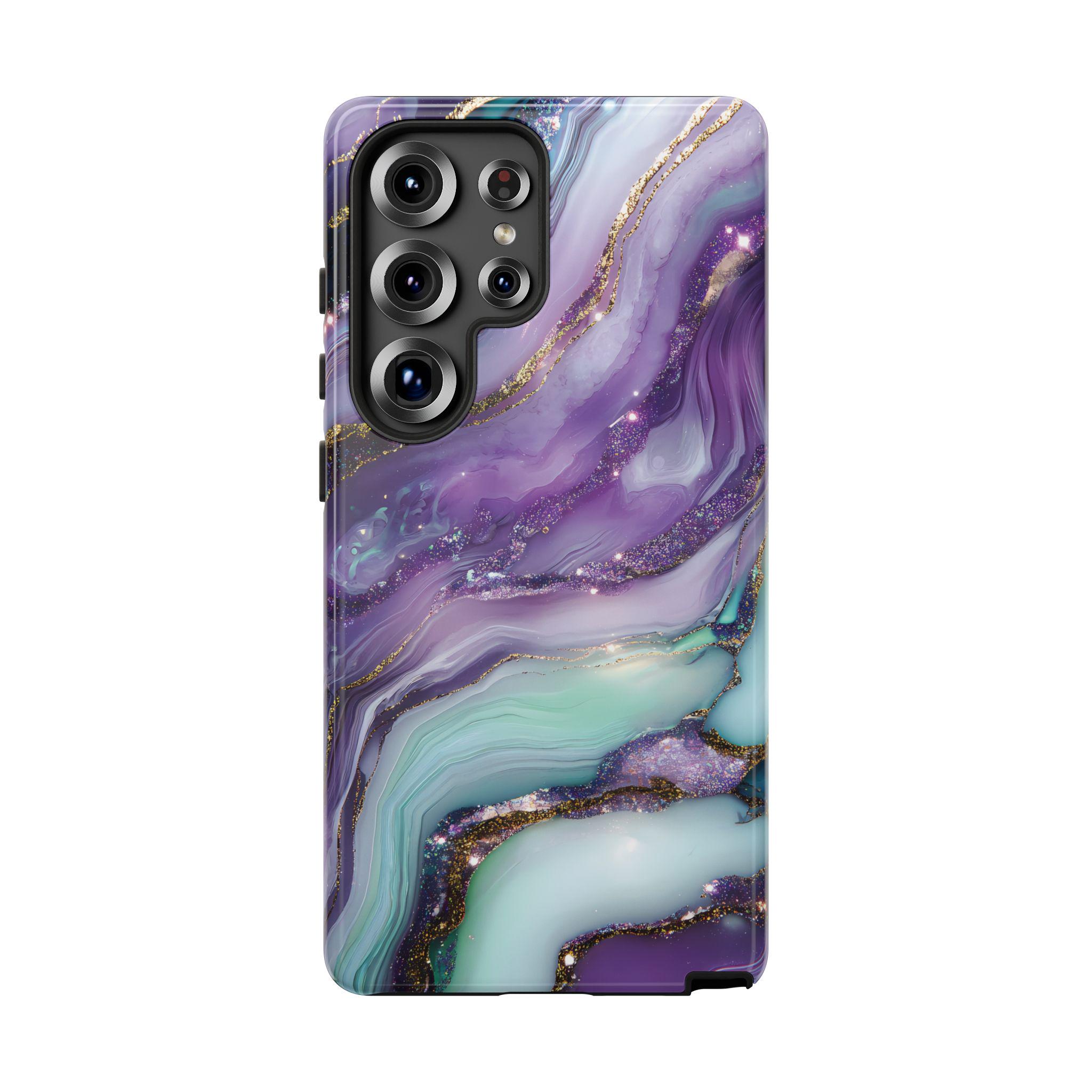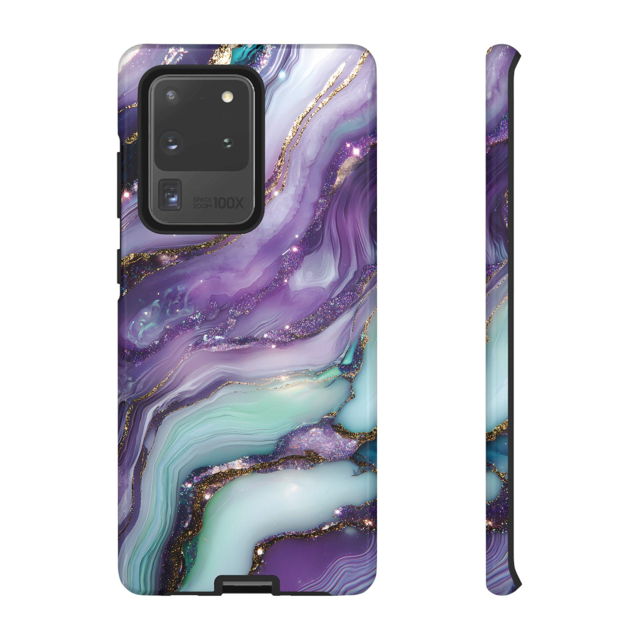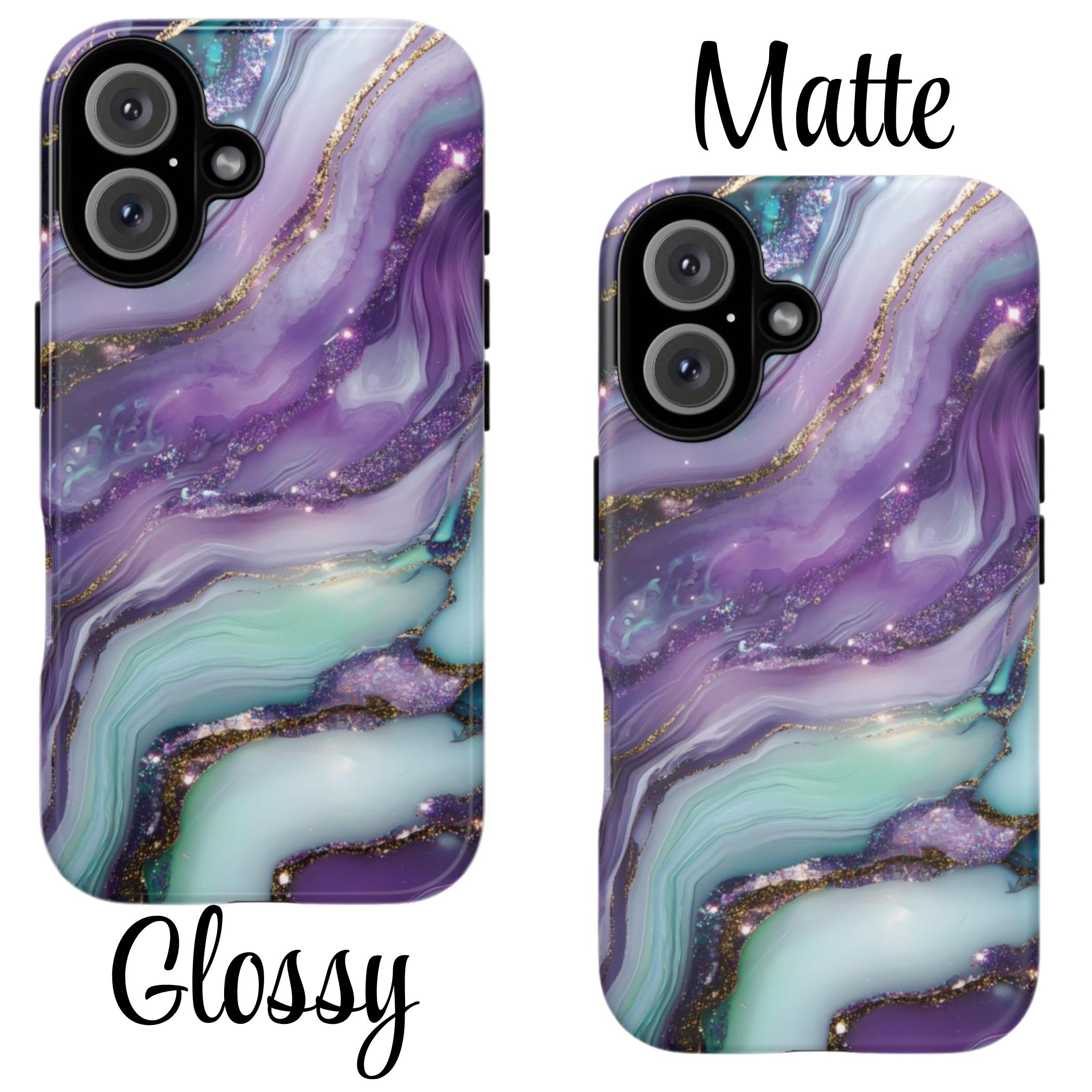Elevate your phone's style with our Marble Tough Case. Featuring a stunning swirl of purple, teal, and hints of gold, this case effortlessly combines elegance with protection. Perfect for those who love a touch of luxury, it provides durable, reliable defense against everyday bumps and scratches. Make a statement while keeping your device safe!