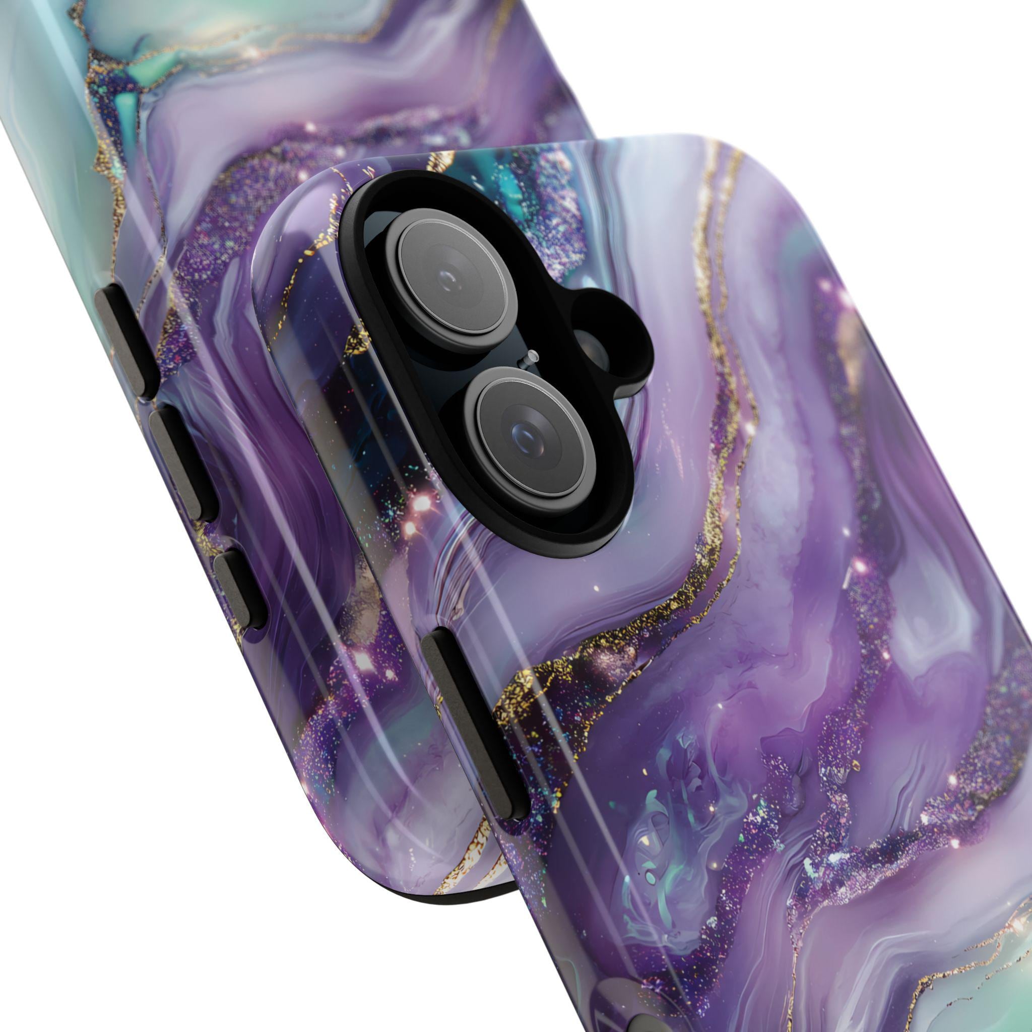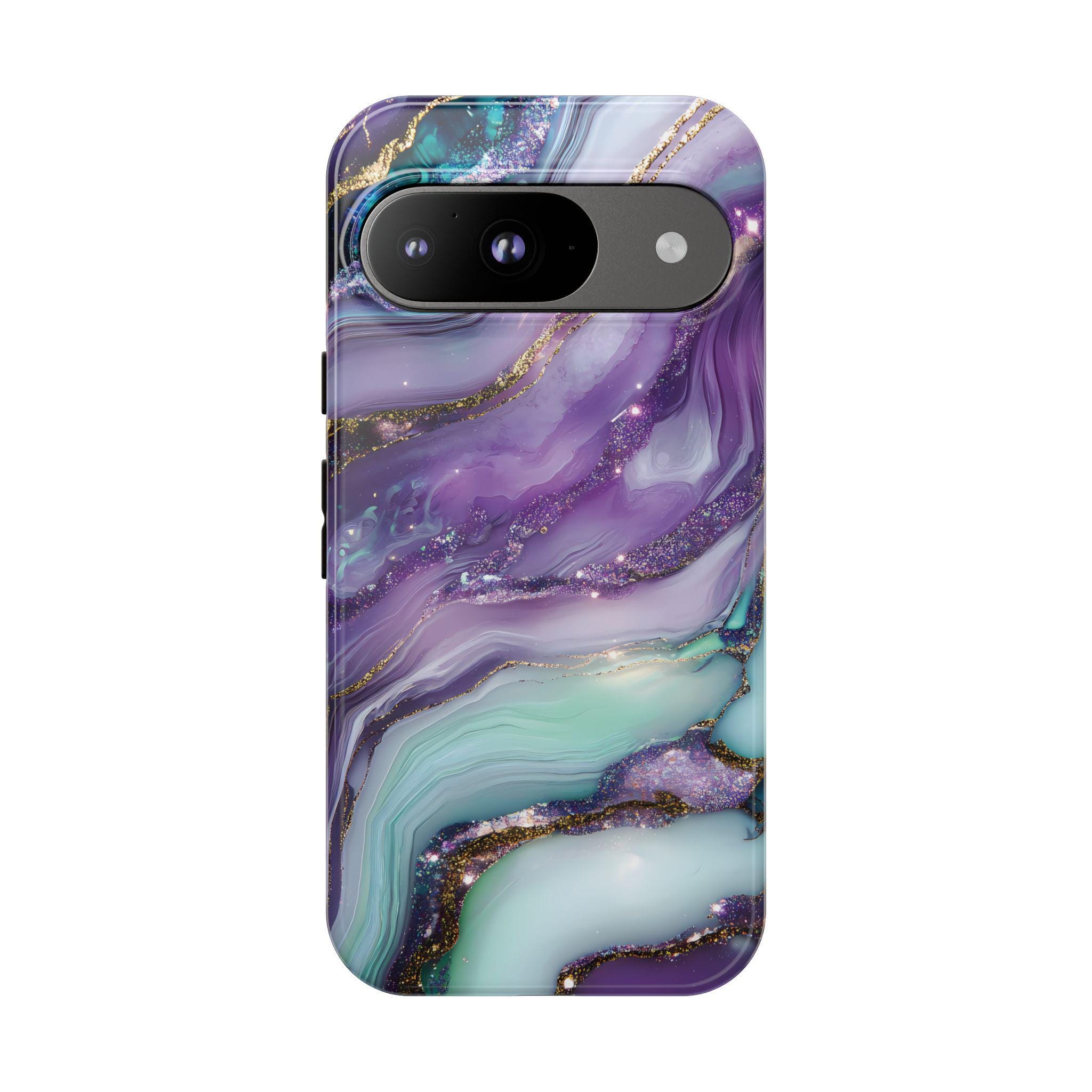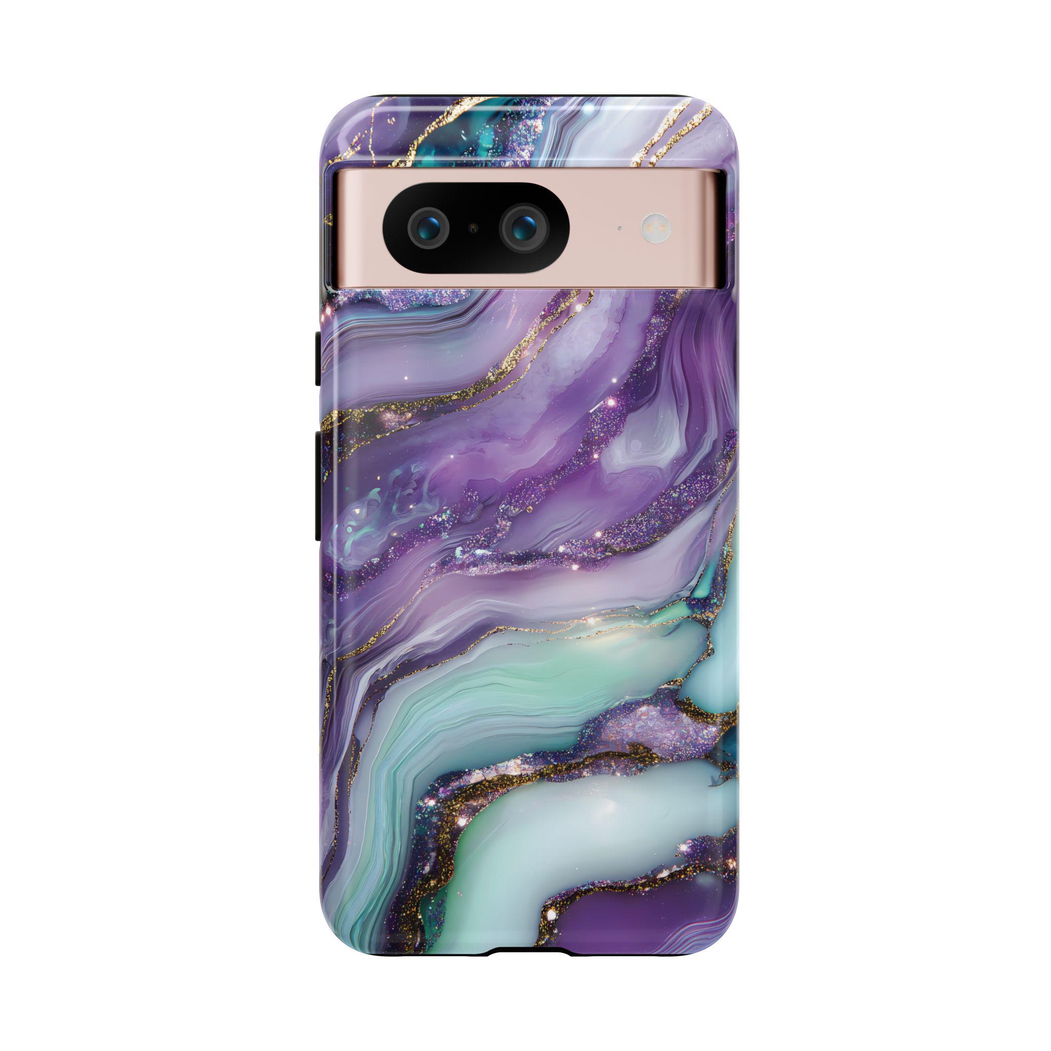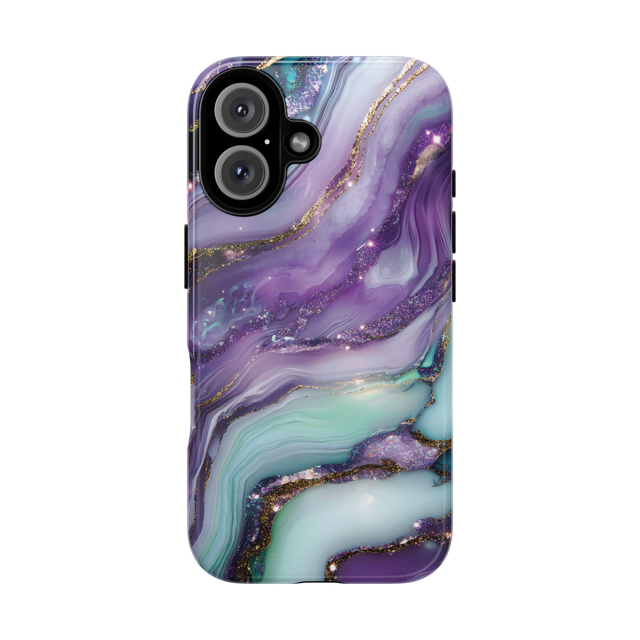 Elevate your phone's style with our Marble Tough Case. Featuring a stunning swirl of purple, teal, and hints of gold, this case effortlessly combines elegance with protection. Perfect for those who love a touch of luxury, it provides durable, reliable defense against everyday bumps and scratches. Make a statement while keeping your device safe!