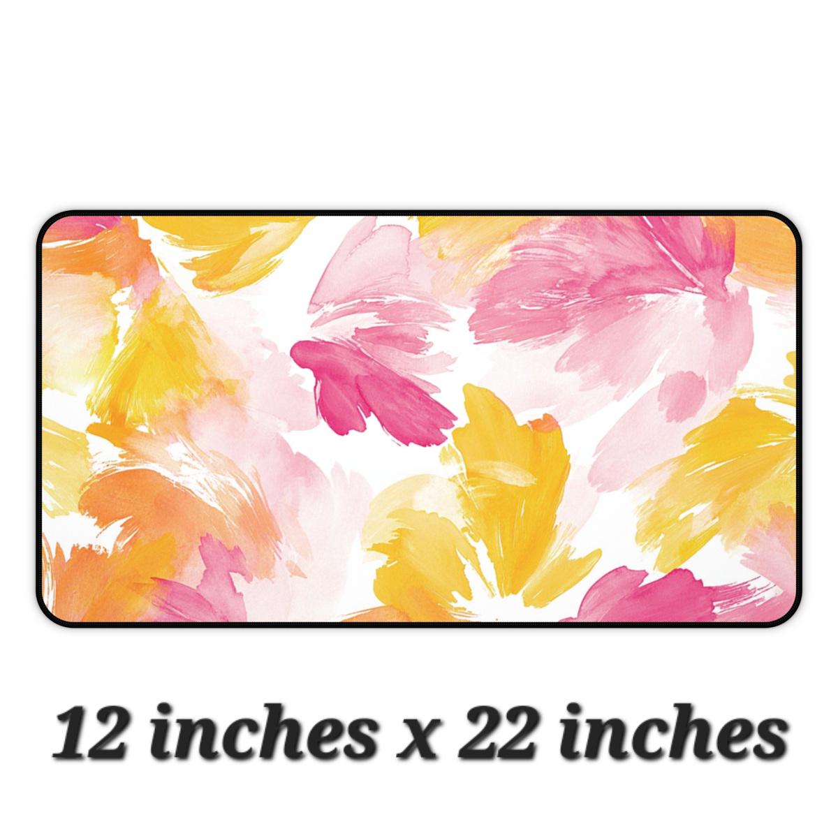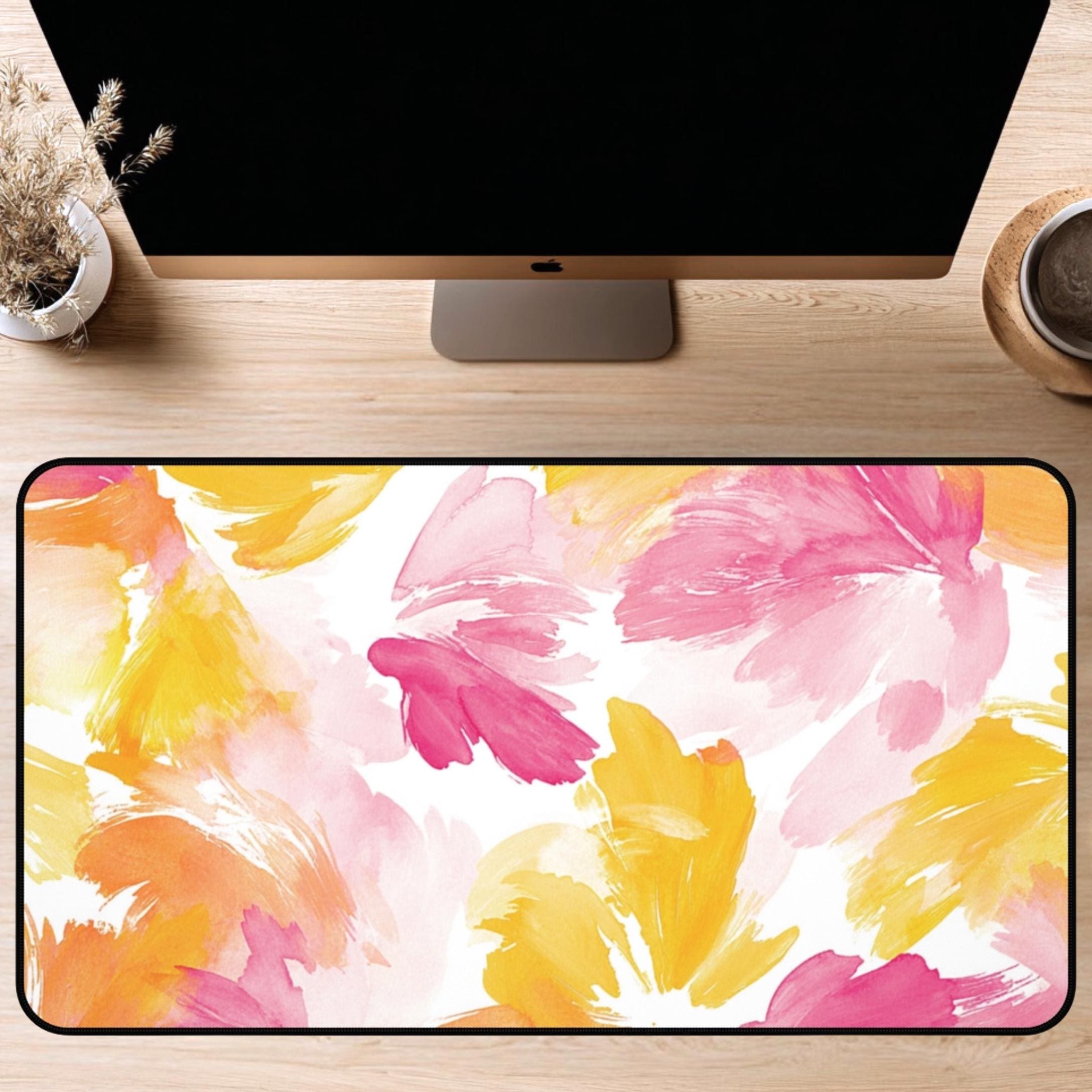 Pink Yellow Desk Mat, Abstract Desk Pad, Mousepad, Watercolor Brushstrokes, Office Decor, College Dorm Decor, Keyboard Mat, Pretty Desk Pad