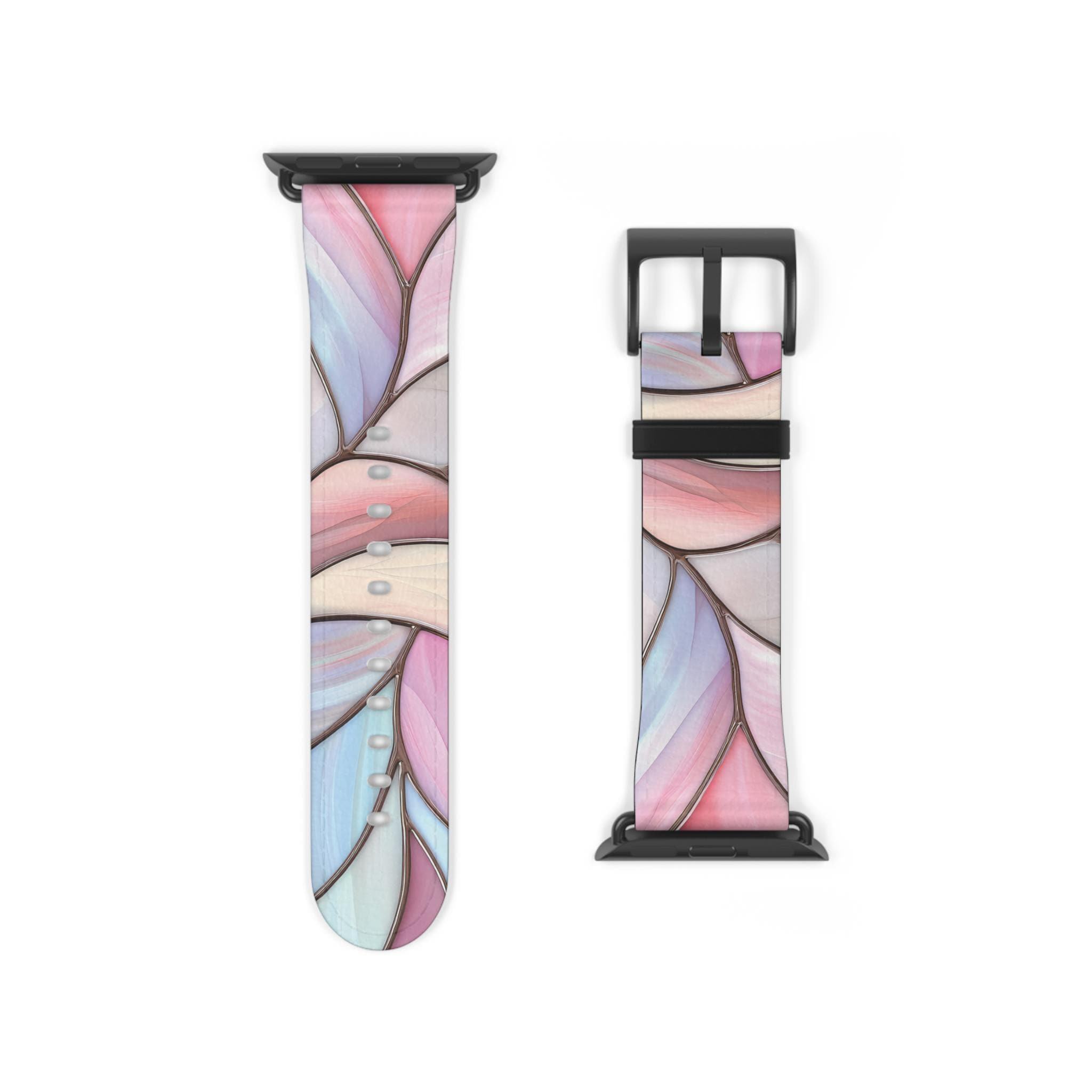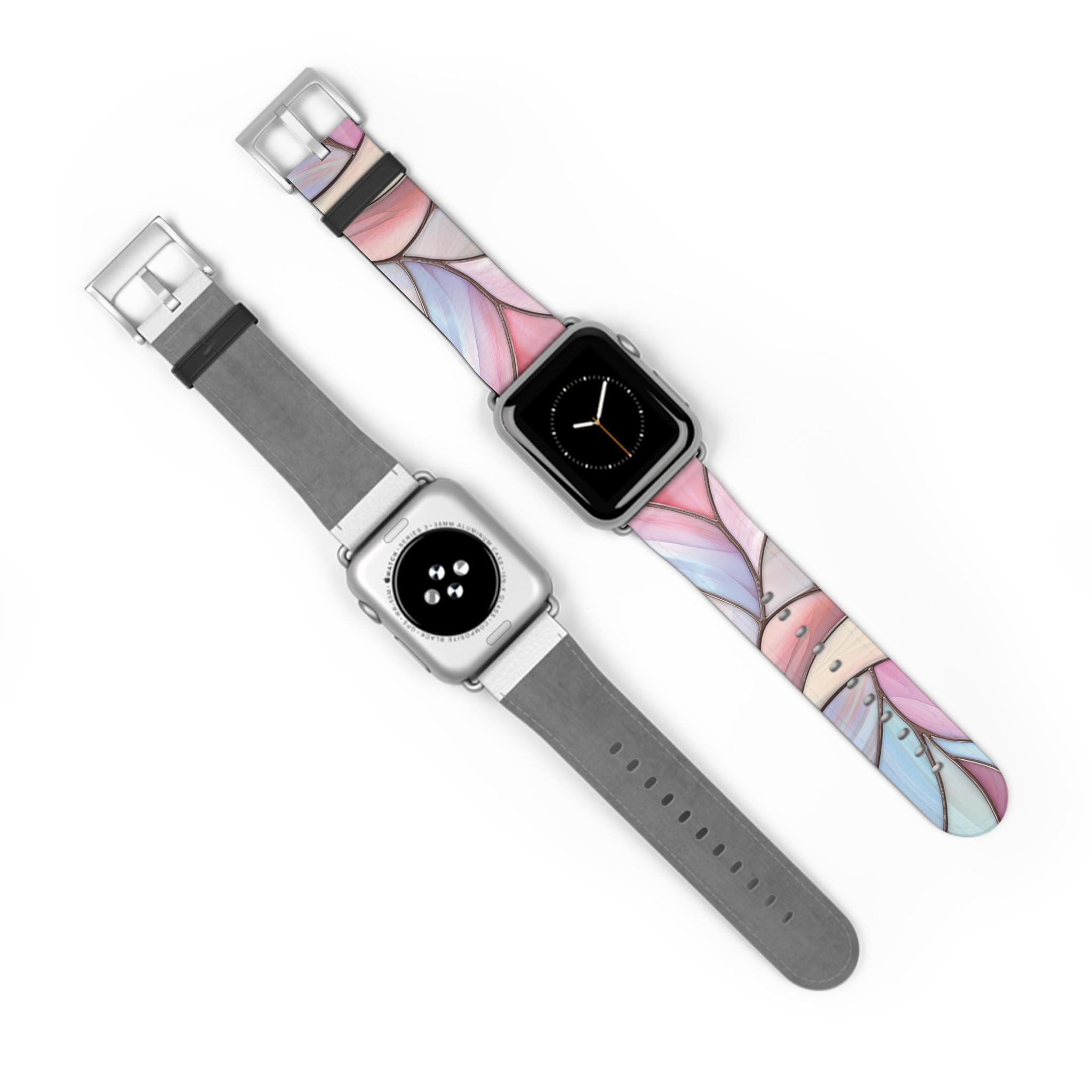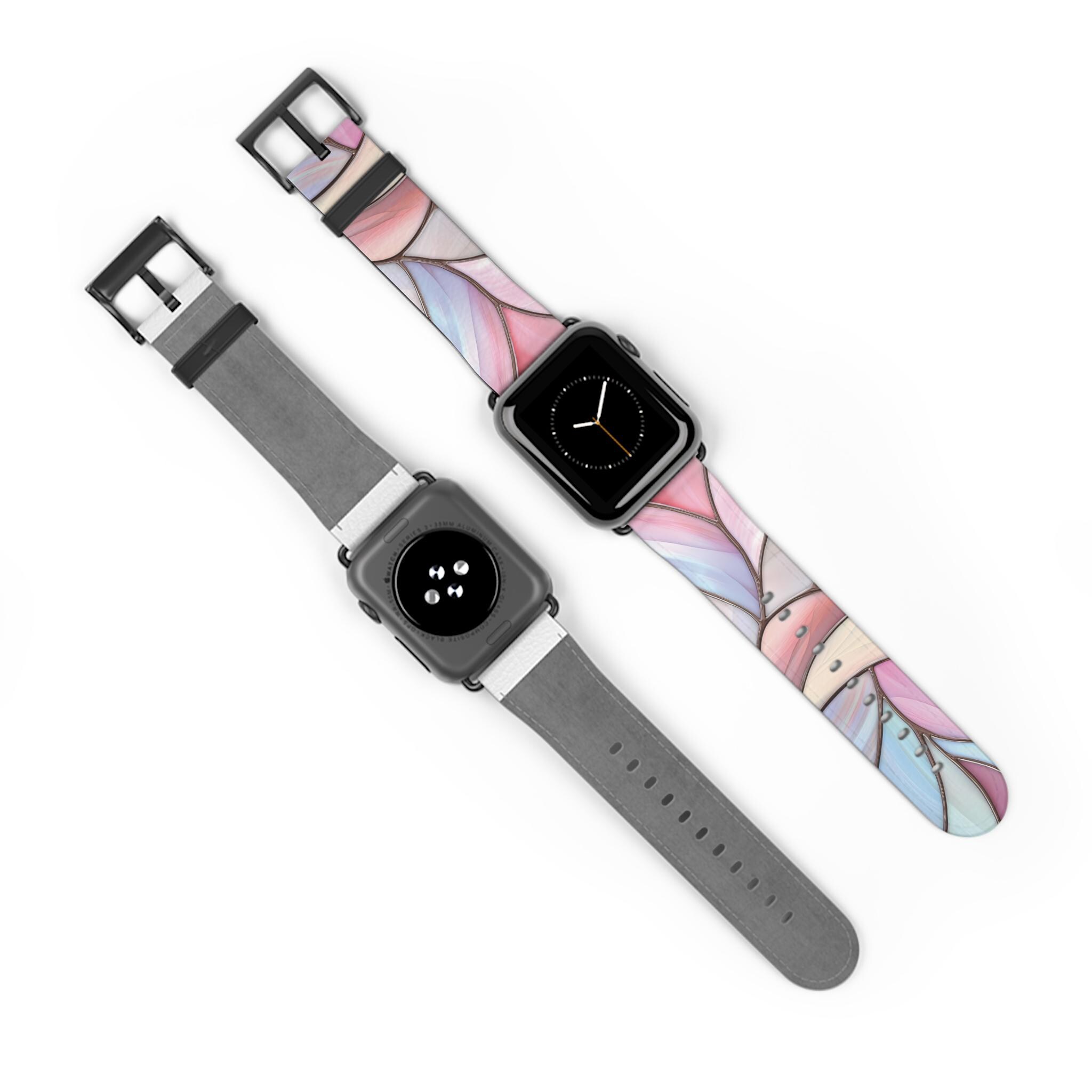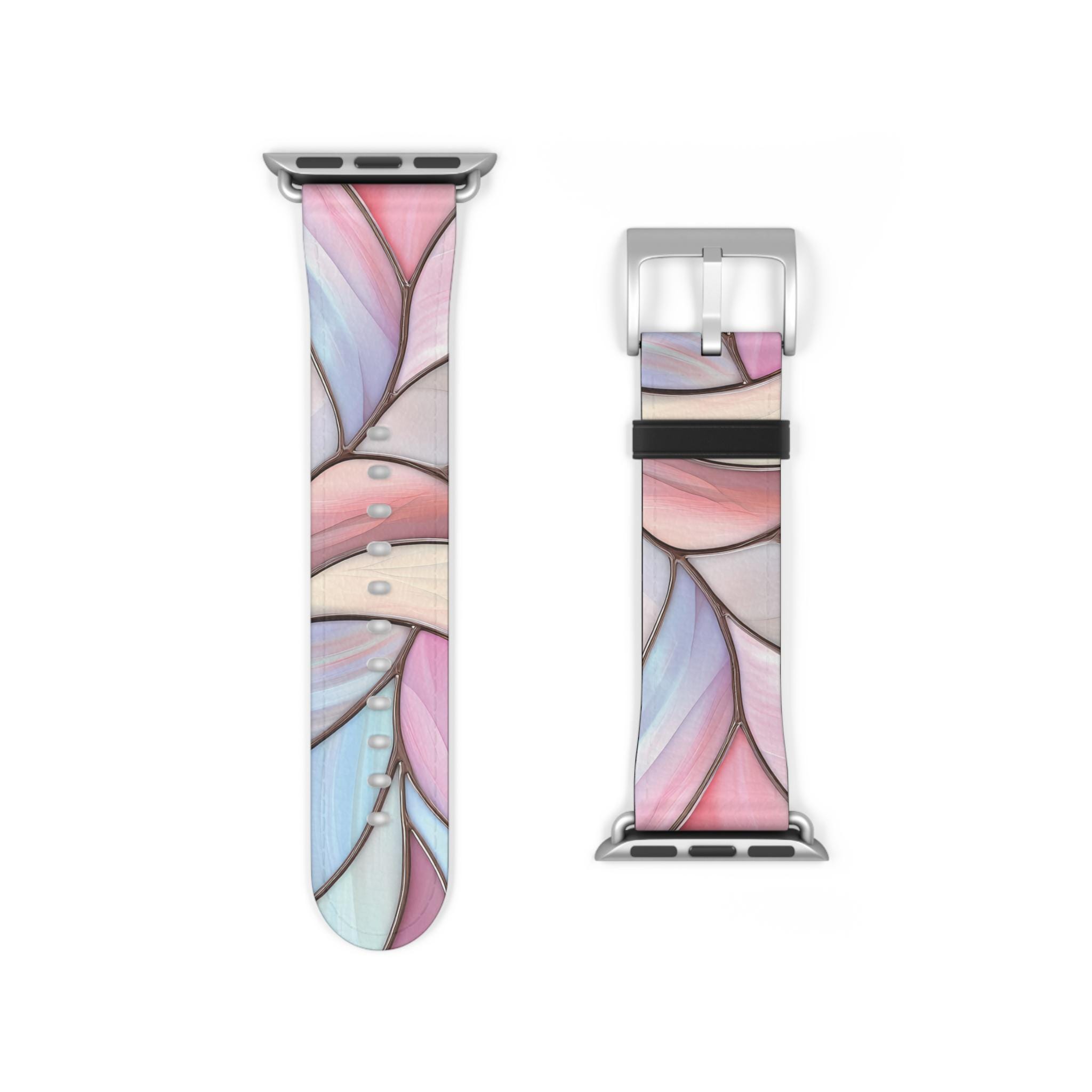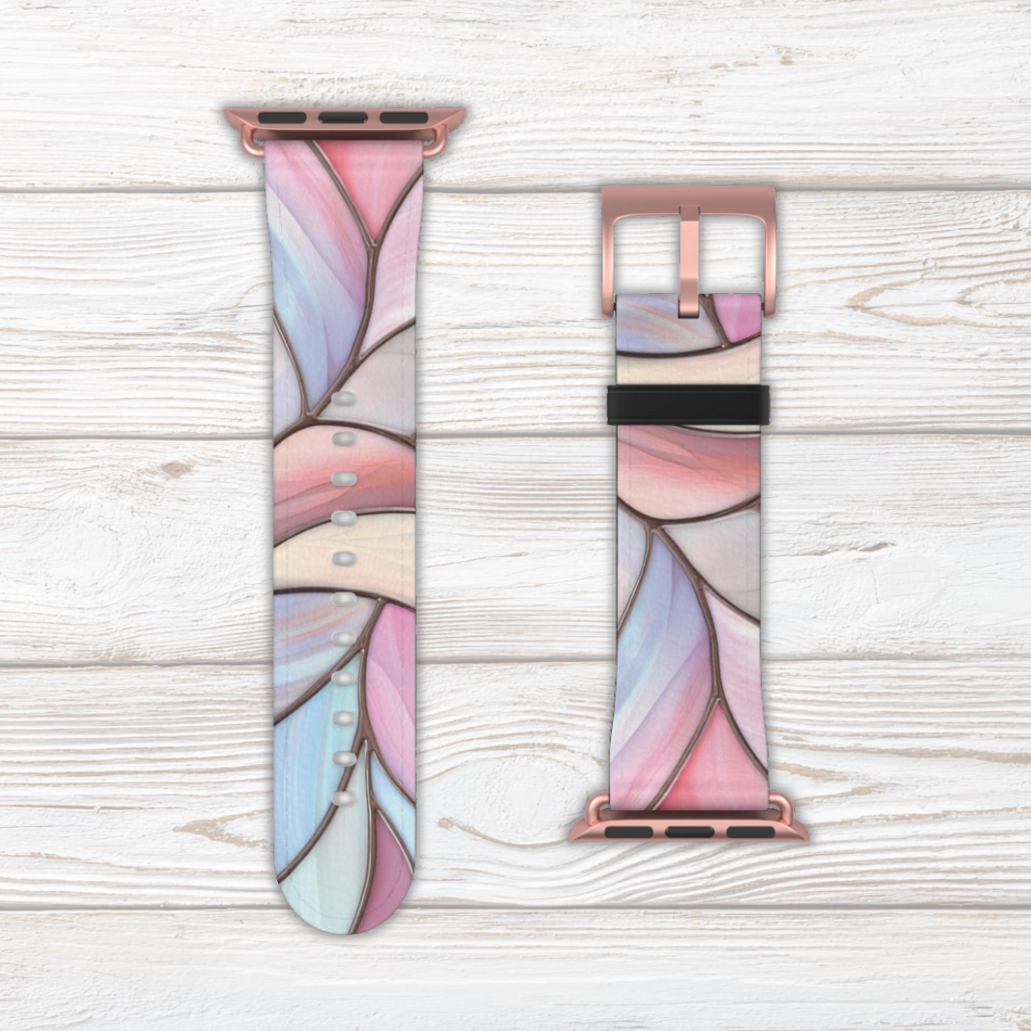 Pink & Blue Watch Band for Apple Watch Series 1 2 3 4 5 6 7 8 9 Ultra SE, Faux Leather, Stainless Steel Hardware, Women's, Stained Glass