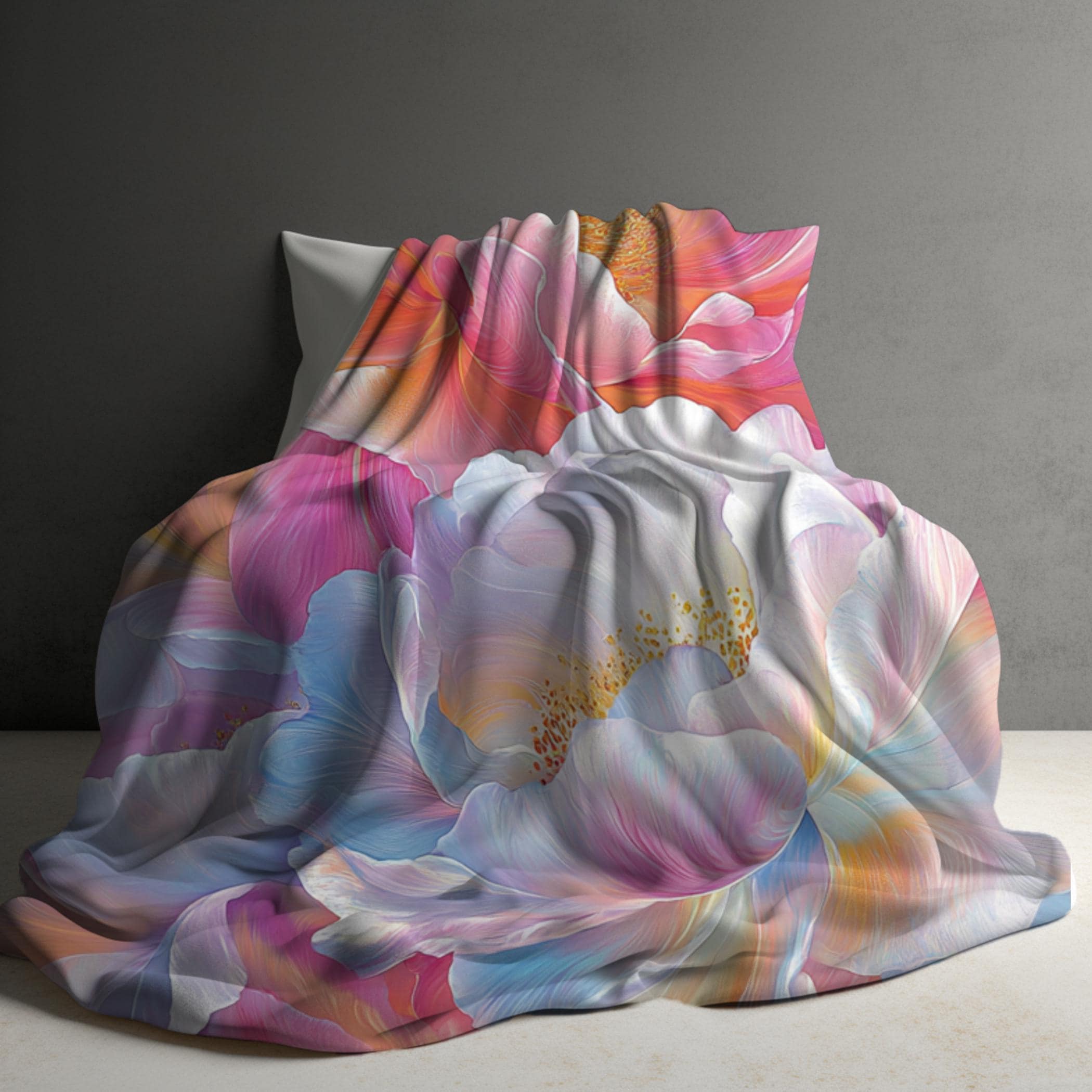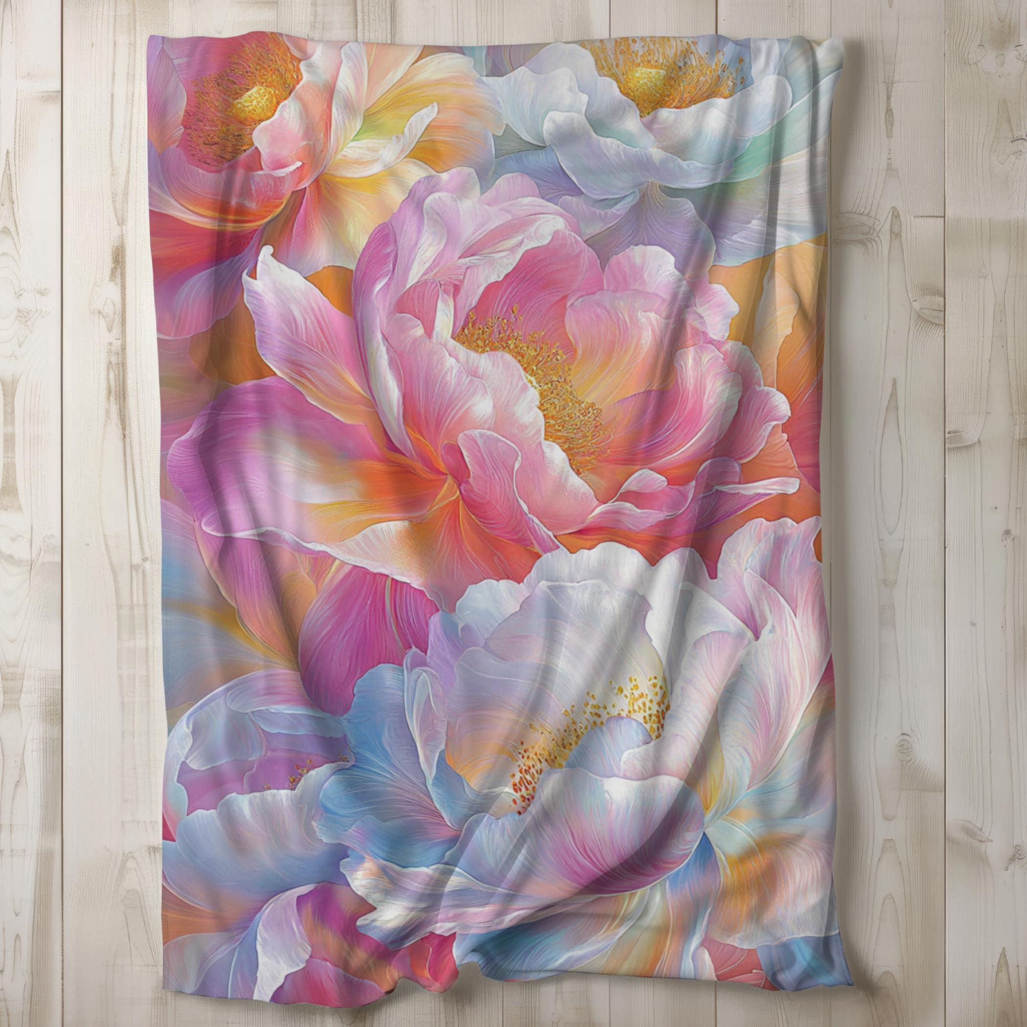 Peony Sherpa Blanket, Flower Fleece Blanket, Floral Throw Blanket, Bedding, Gift Idea, Feminine Girly, Pink Colorful Blanket, 50x60, 60x80