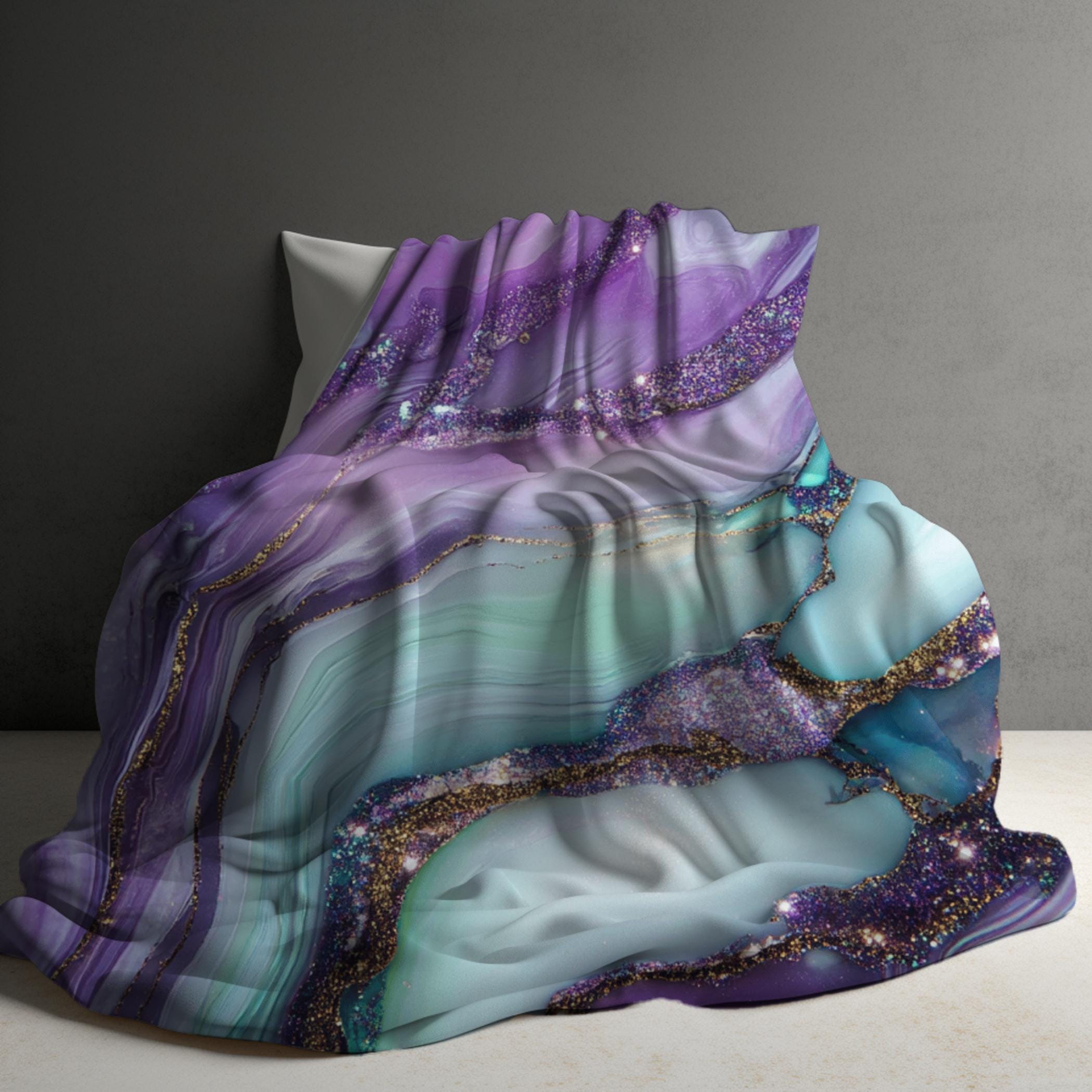 Marbled Sherpa Blanket, Purple Teal Fleece Blanket, Throw Blanket, Bedding, Gift Idea for Teen Girl, Feminine Girly Bling Glam, 50x60, 60x80