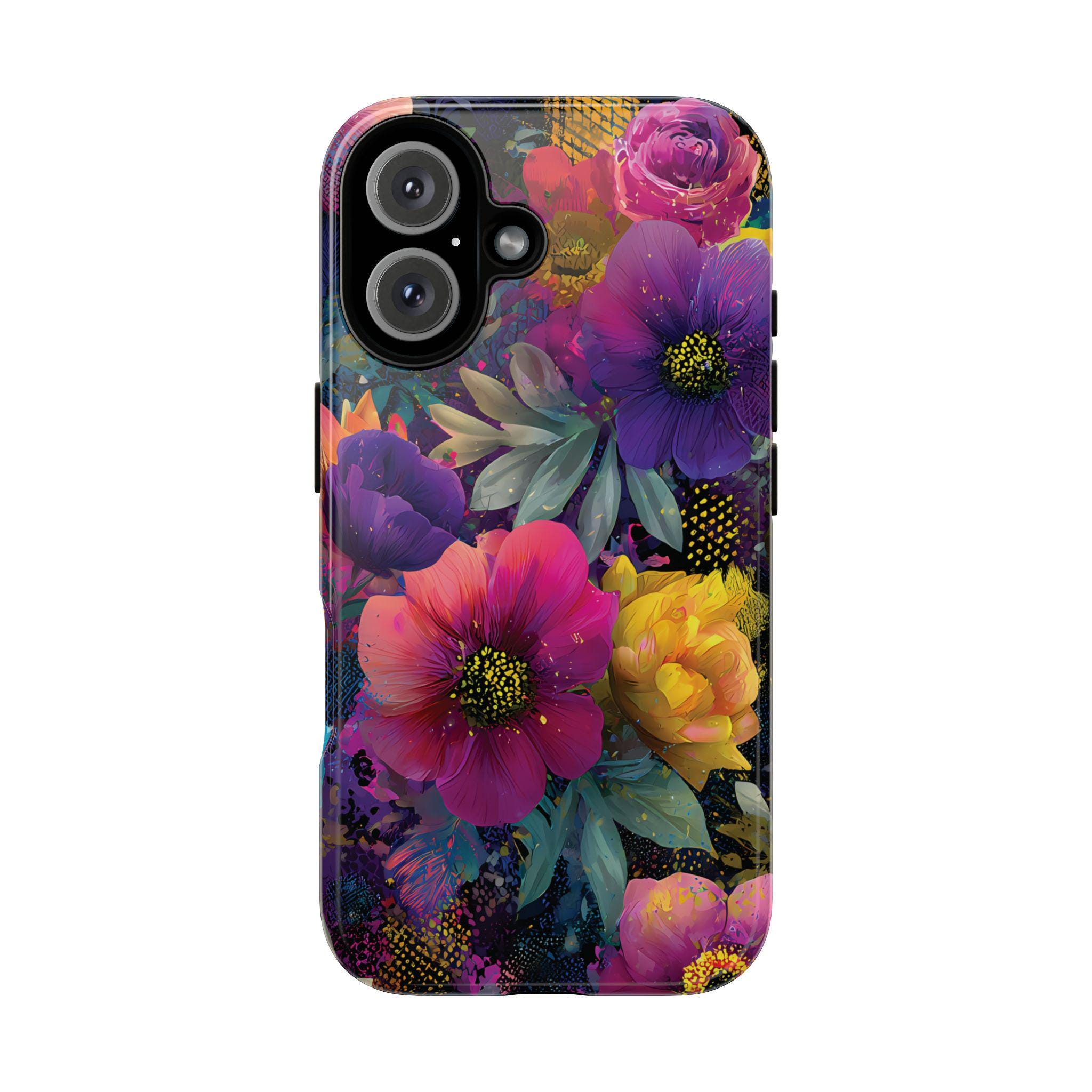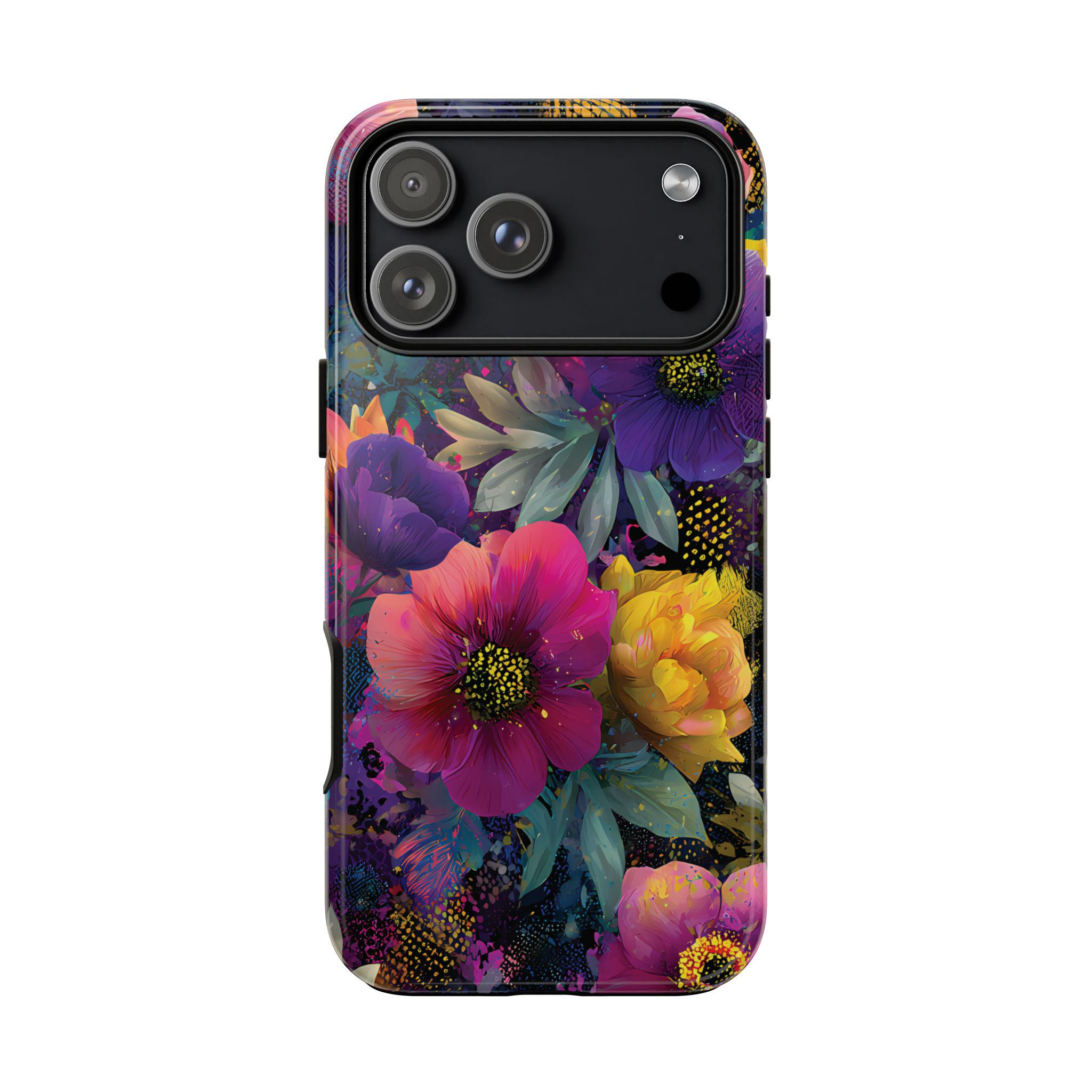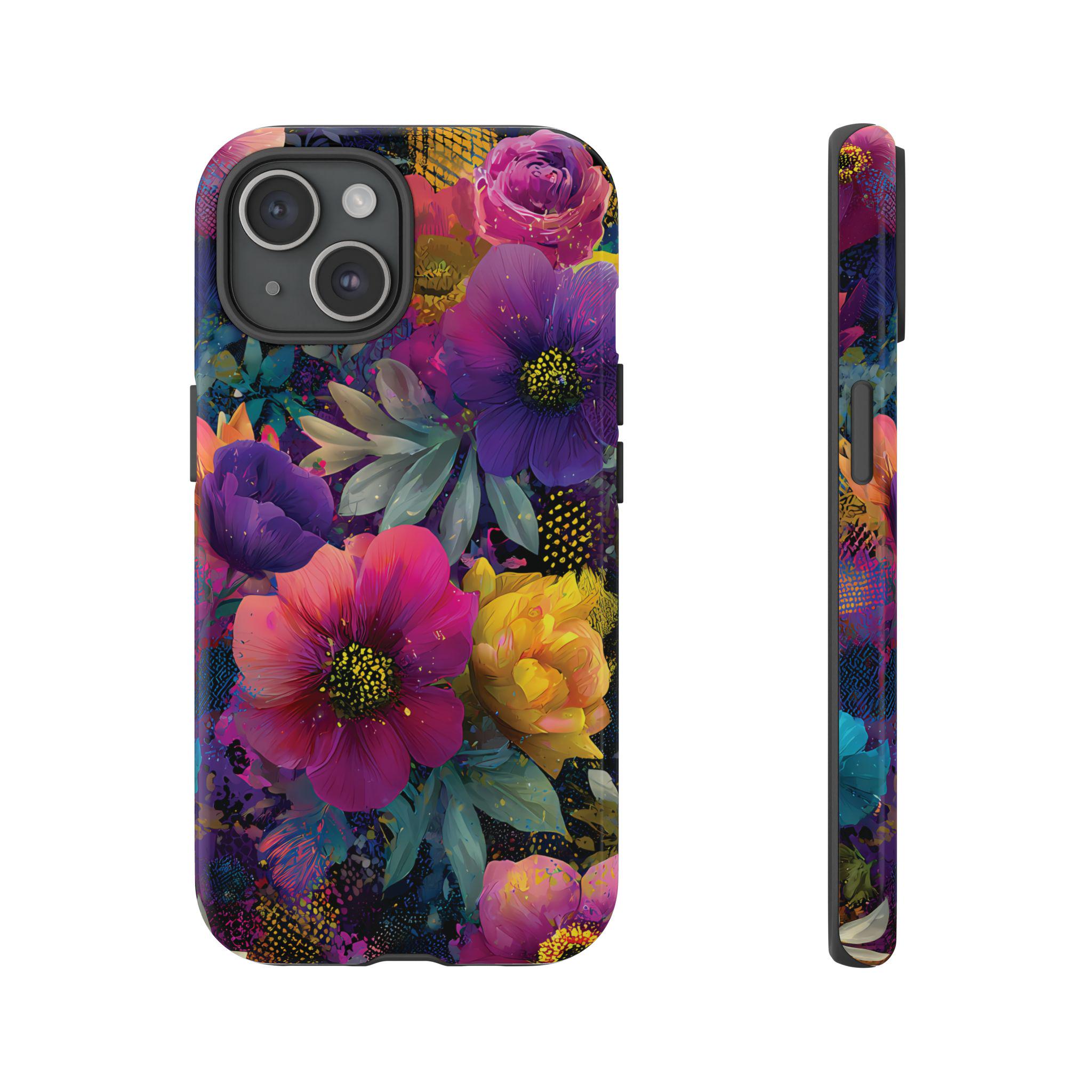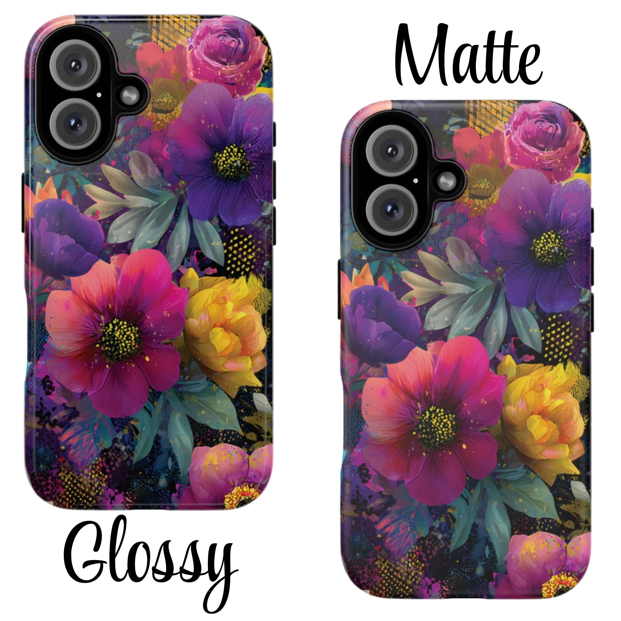 Protect your phone in style with this durable, tough phone case featuring a vibrant, floral design. Crafted to withstand drops, bumps, and everyday wear, this case seamlessly combines functionality with eye-catching artistry. Perfect for those who want to make a bold statement while keeping their device safe and secure. Add a splash of color and personality to your phone today!