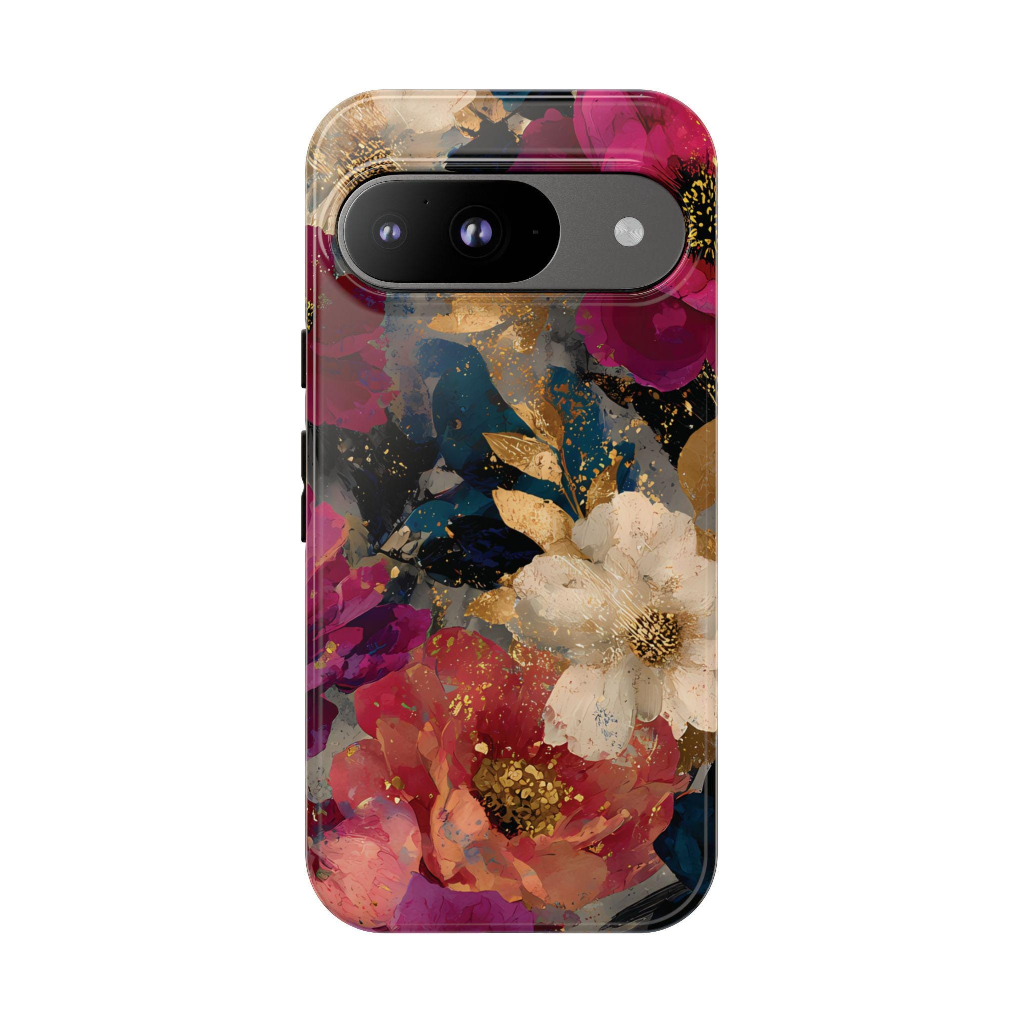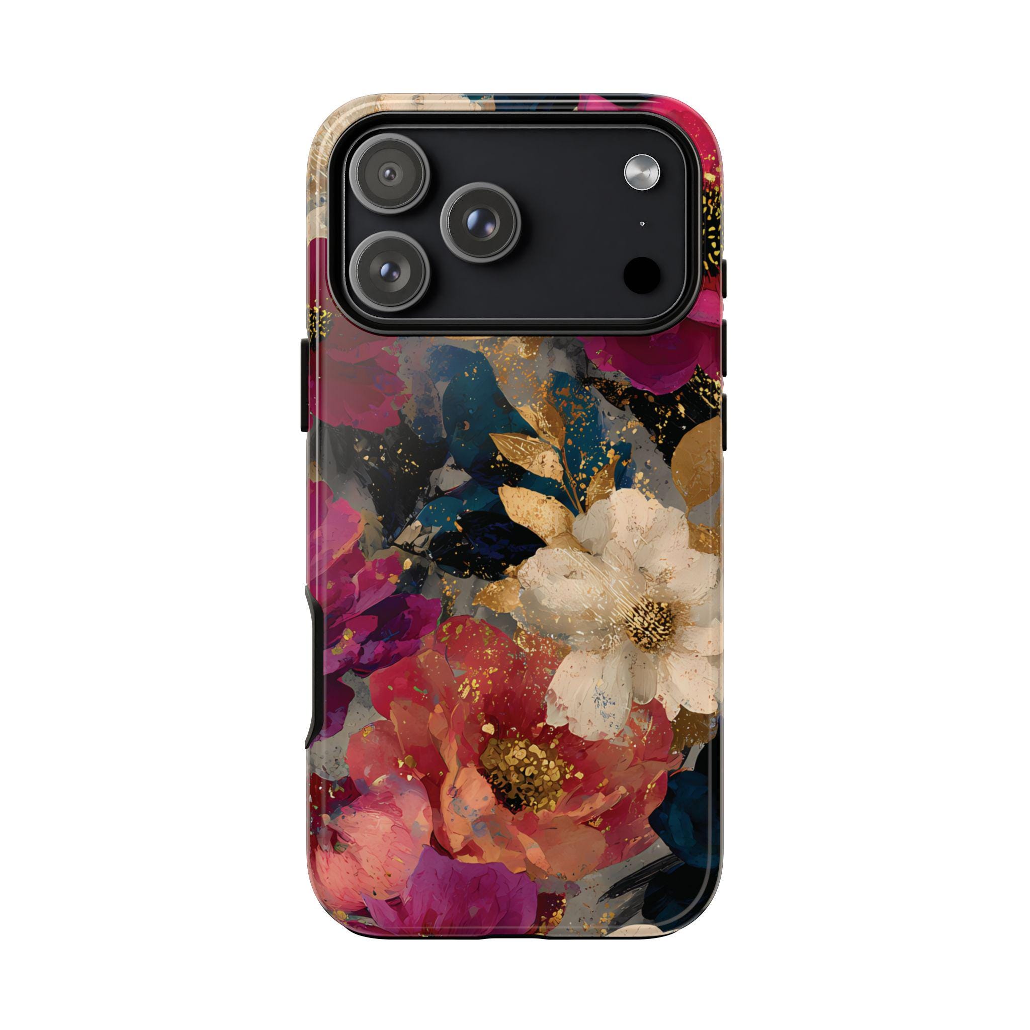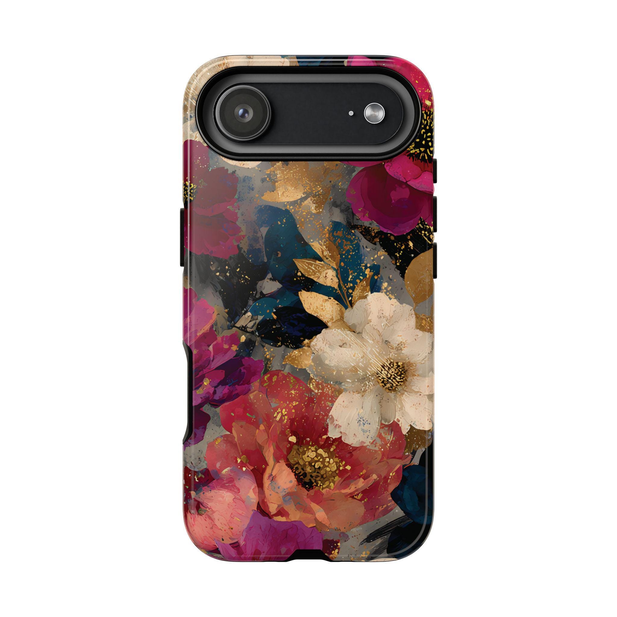 Protect your phone in style with this floral tough phone case featuring a bold vintage-inspired flower design with rich colors and gold accents. This protective phone case is perfect for everyday use, offering durable protection while adding a stylish, artistic look to your phone.