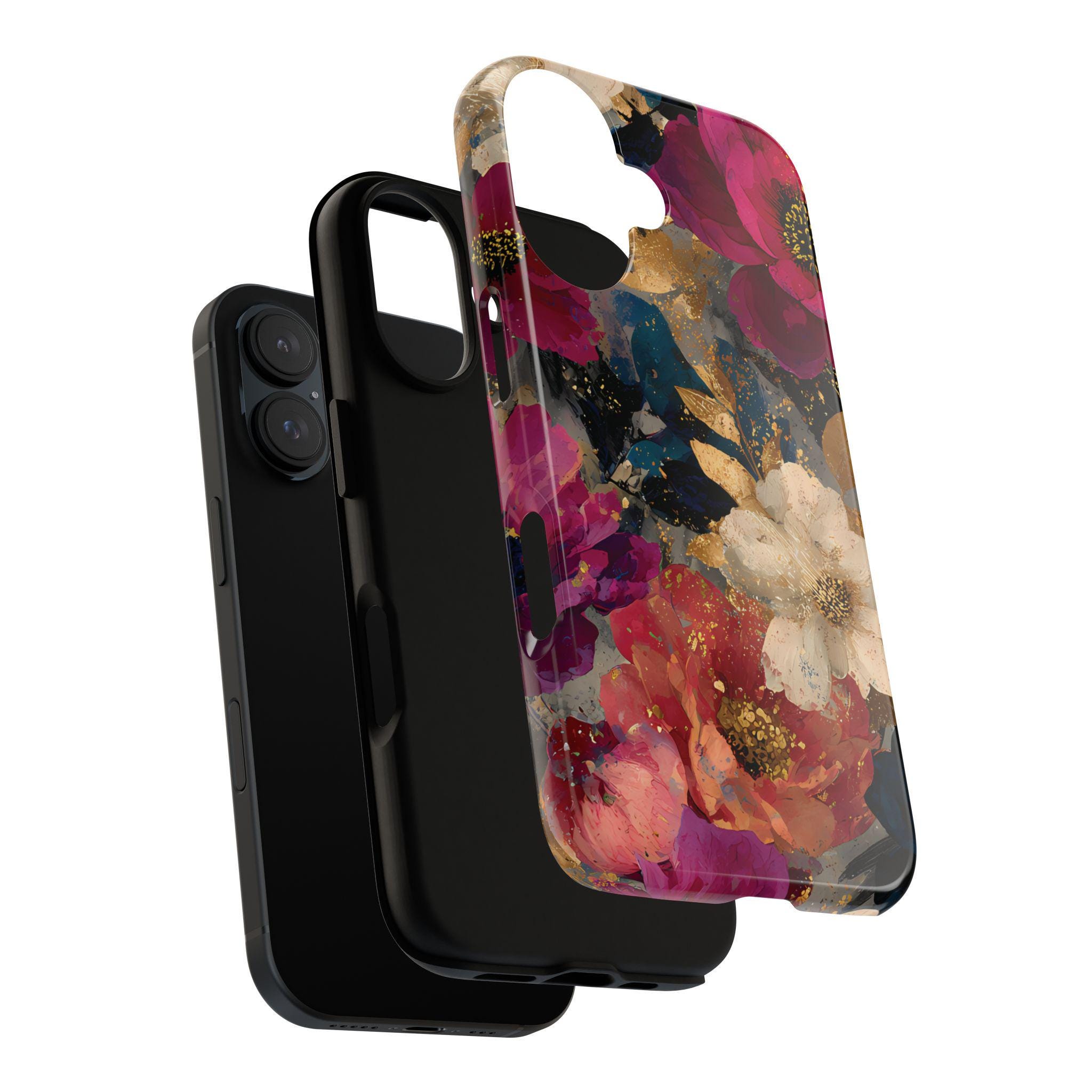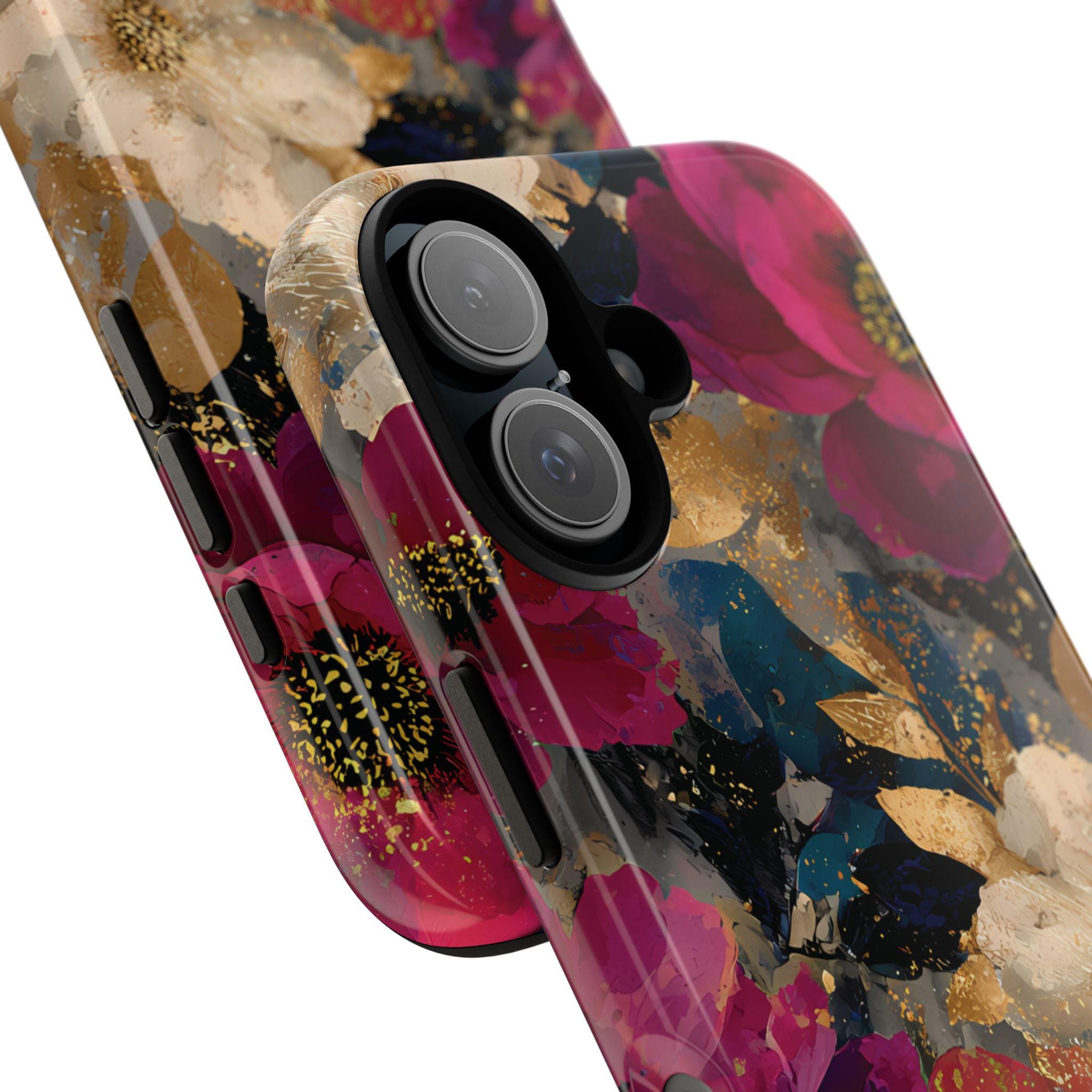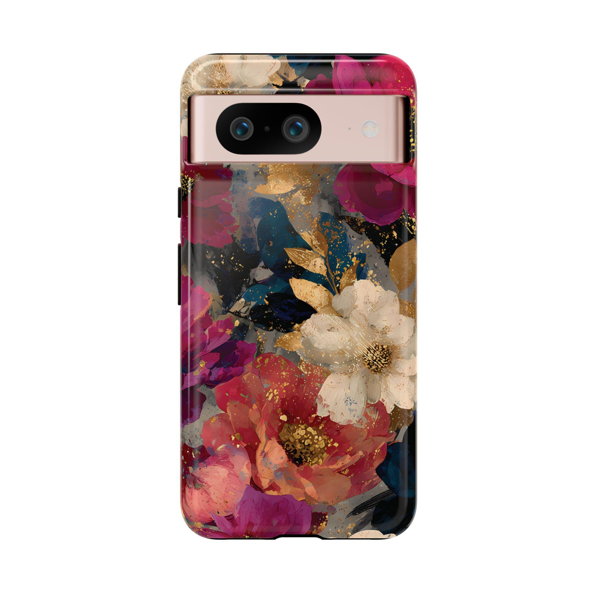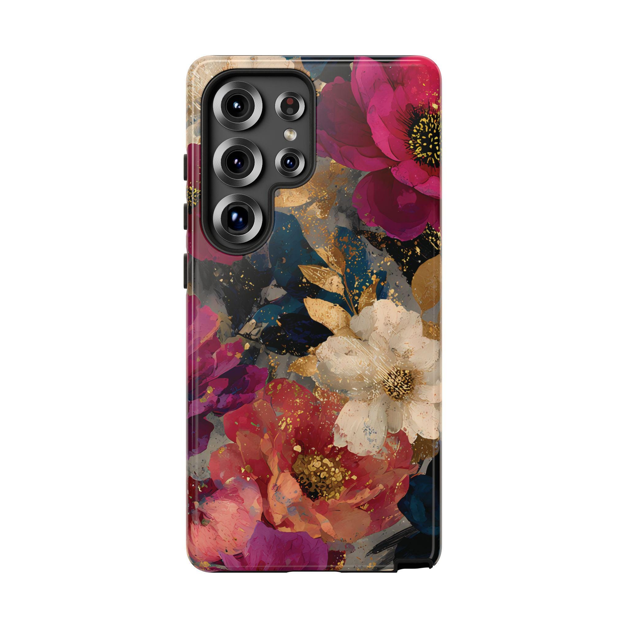 Protect your phone in style with this floral tough phone case featuring a bold vintage-inspired flower design with rich colors and gold accents. This protective phone case is perfect for everyday use, offering durable protection while adding a stylish, artistic look to your phone.