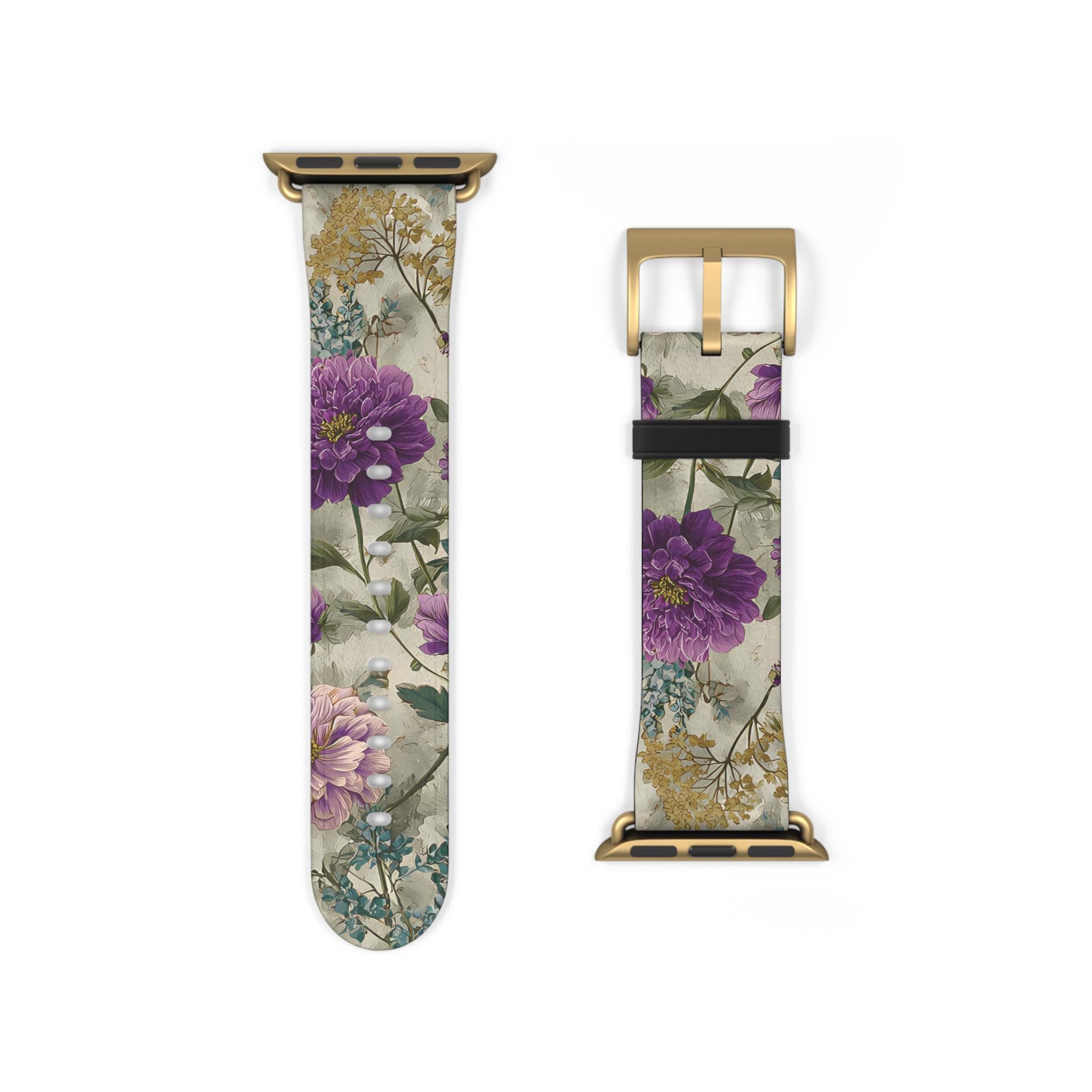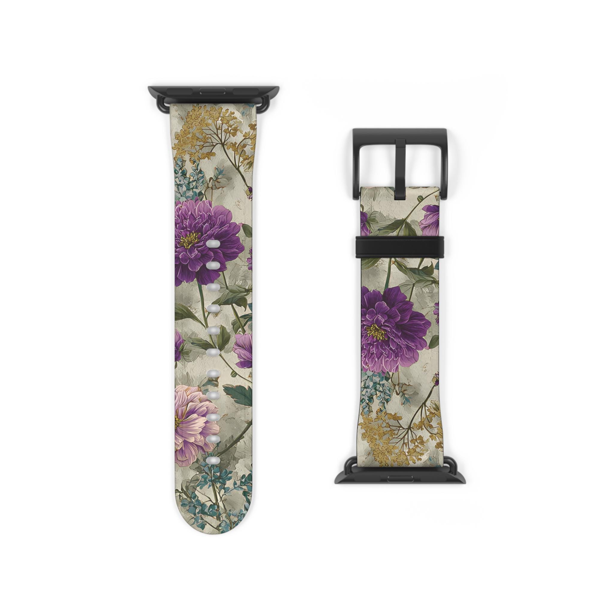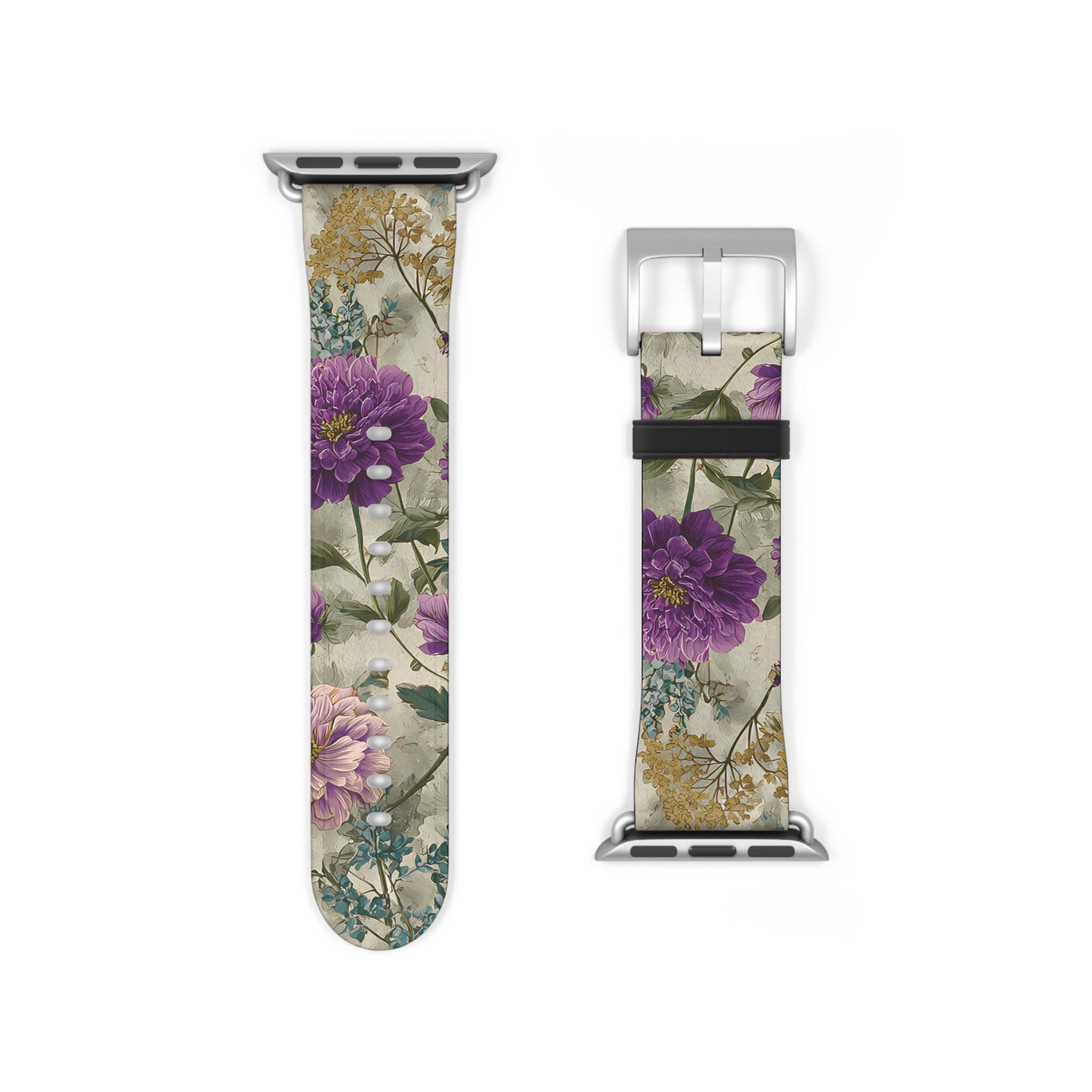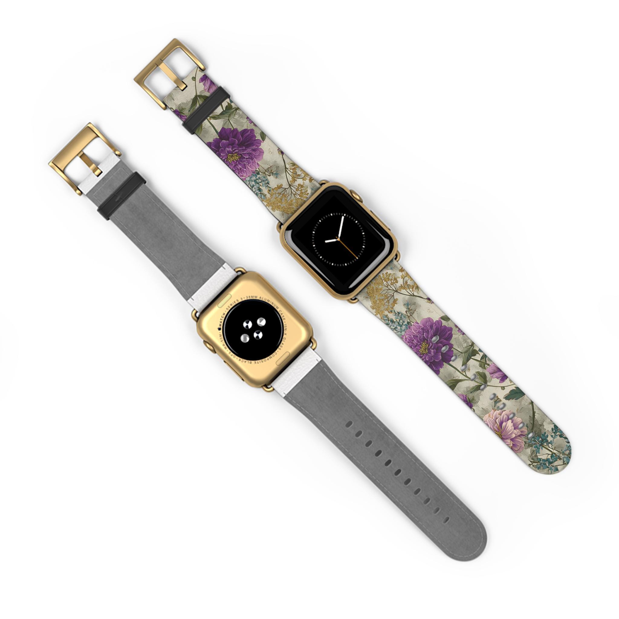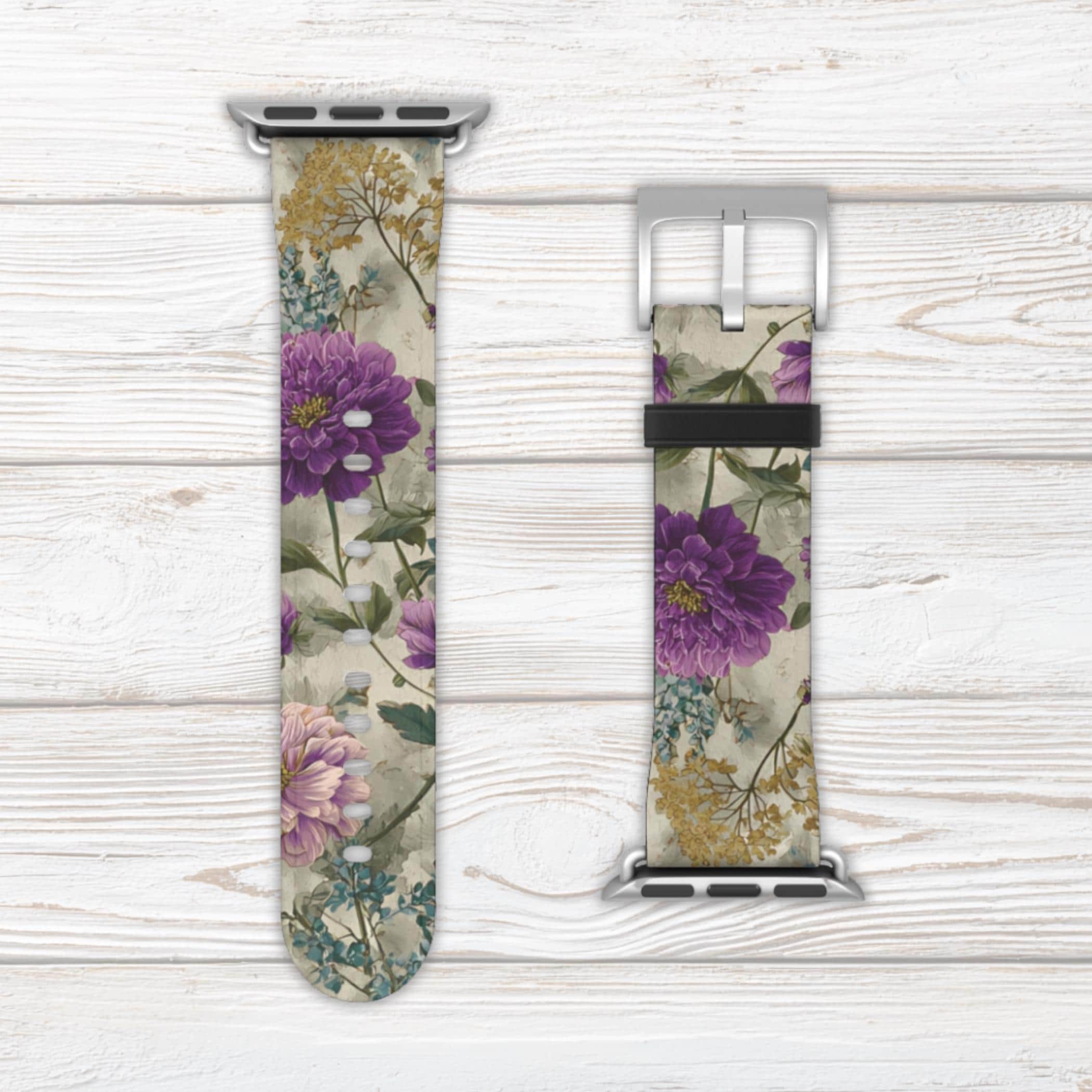Floral Watch Band for Apple Watch Series 1 2 3 4 5 6 7 8 9 Ultra SE, Faux Leather, Stainless Steel Hardware, Floral Vintage Country Chic