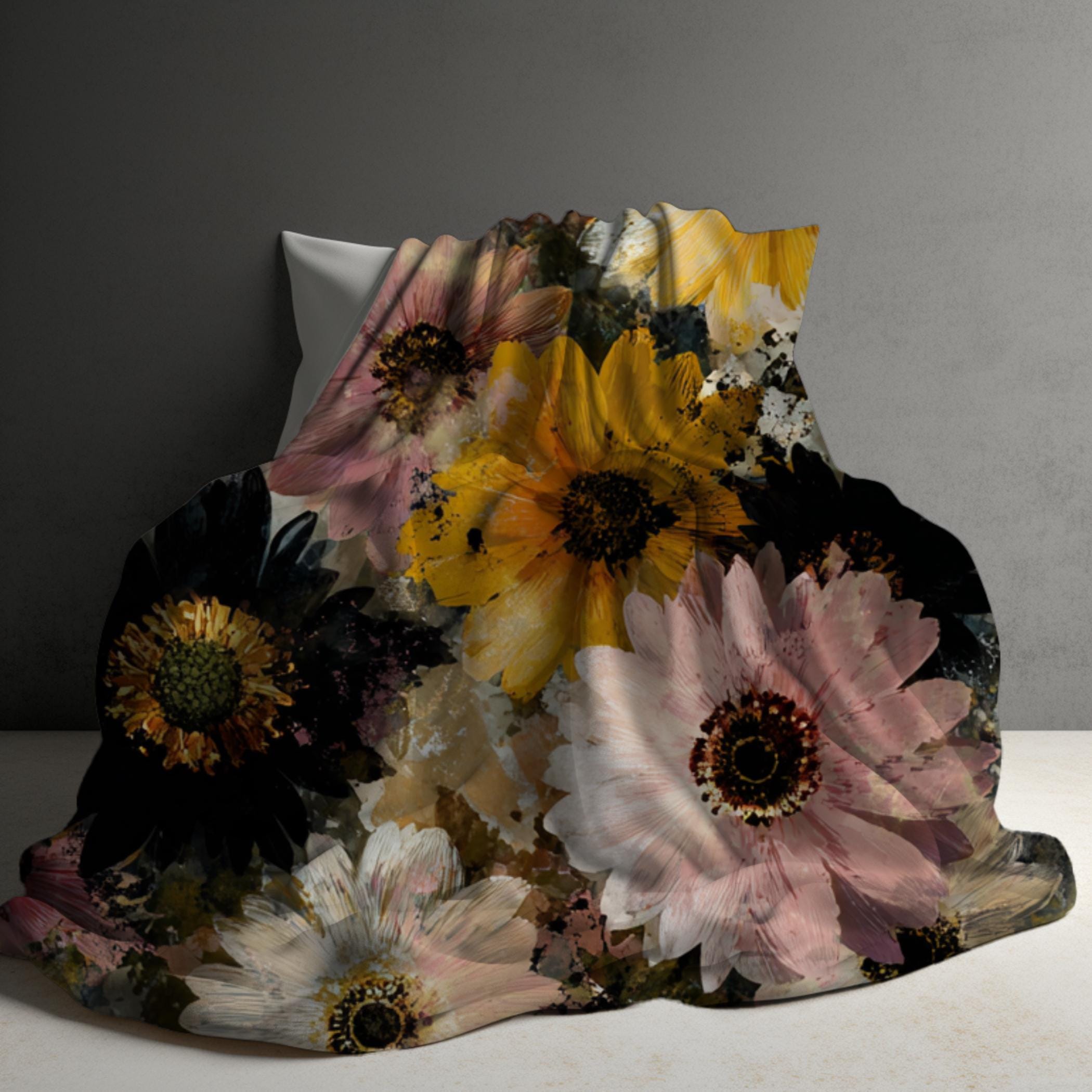 Flower Sherpa Blanket, Floral Fleece Blanket, Flower Throw Blanket, Bedding, Gift Idea, Moody Decor, Girl Blanket, 50x60, 60x80, Home Decor