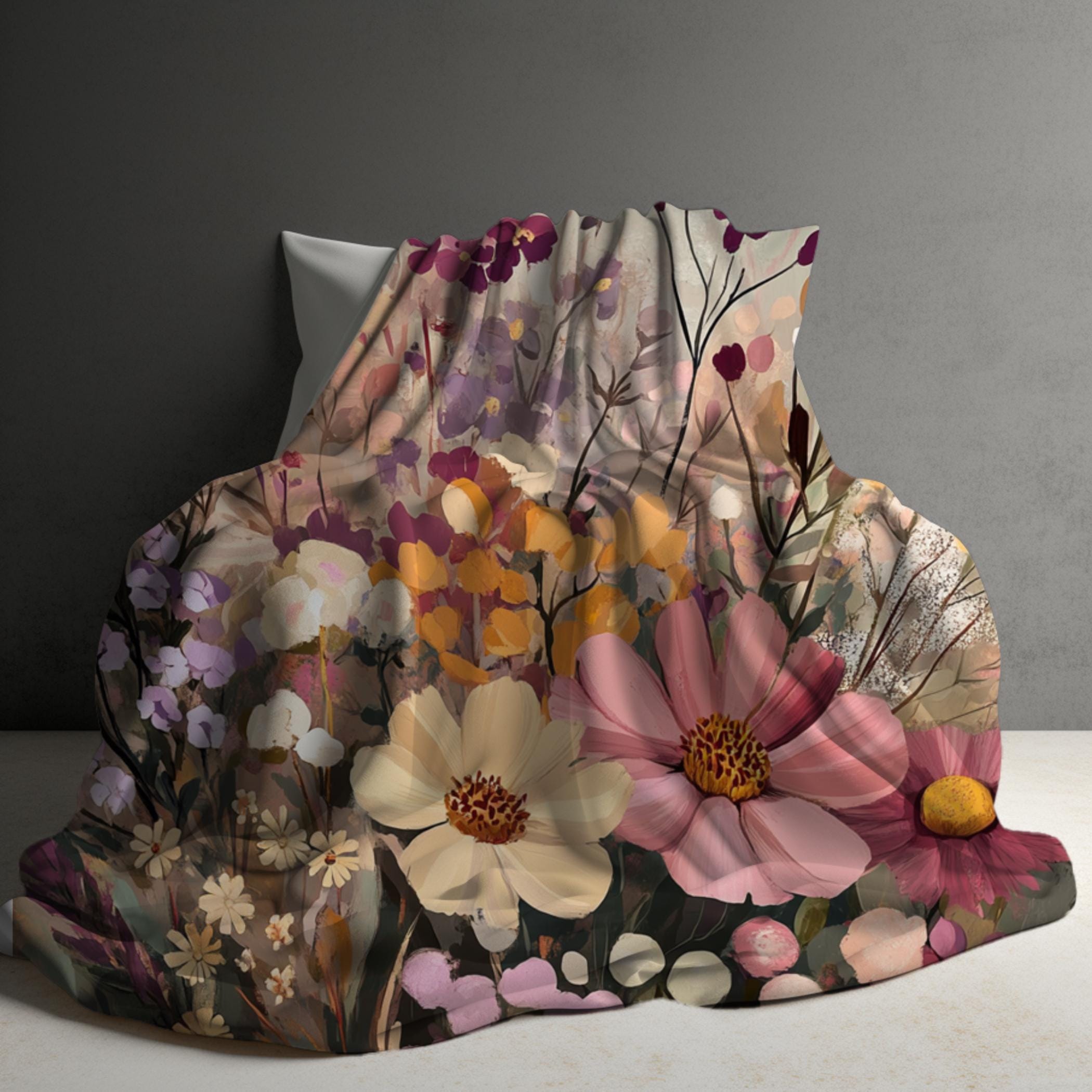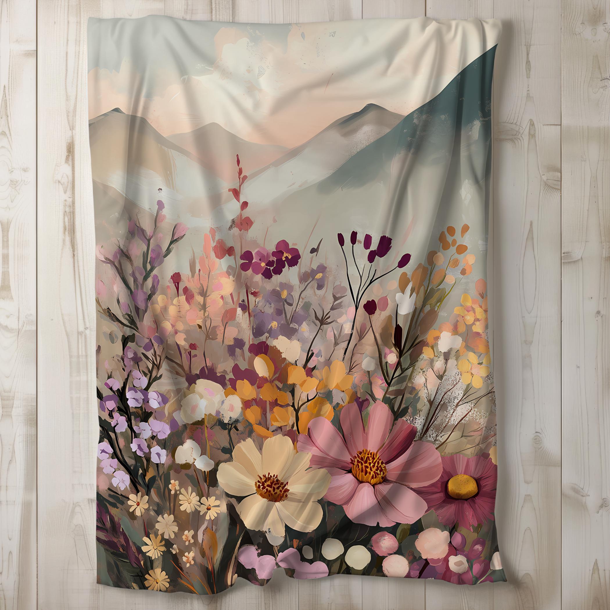 Mountain Wildflowers Sherpa Blanket, Floral Fleece Blanket, Flower Throw Blanket, Bedding, Gift Idea, Cottagecore Country Chic 50x60, 60x80