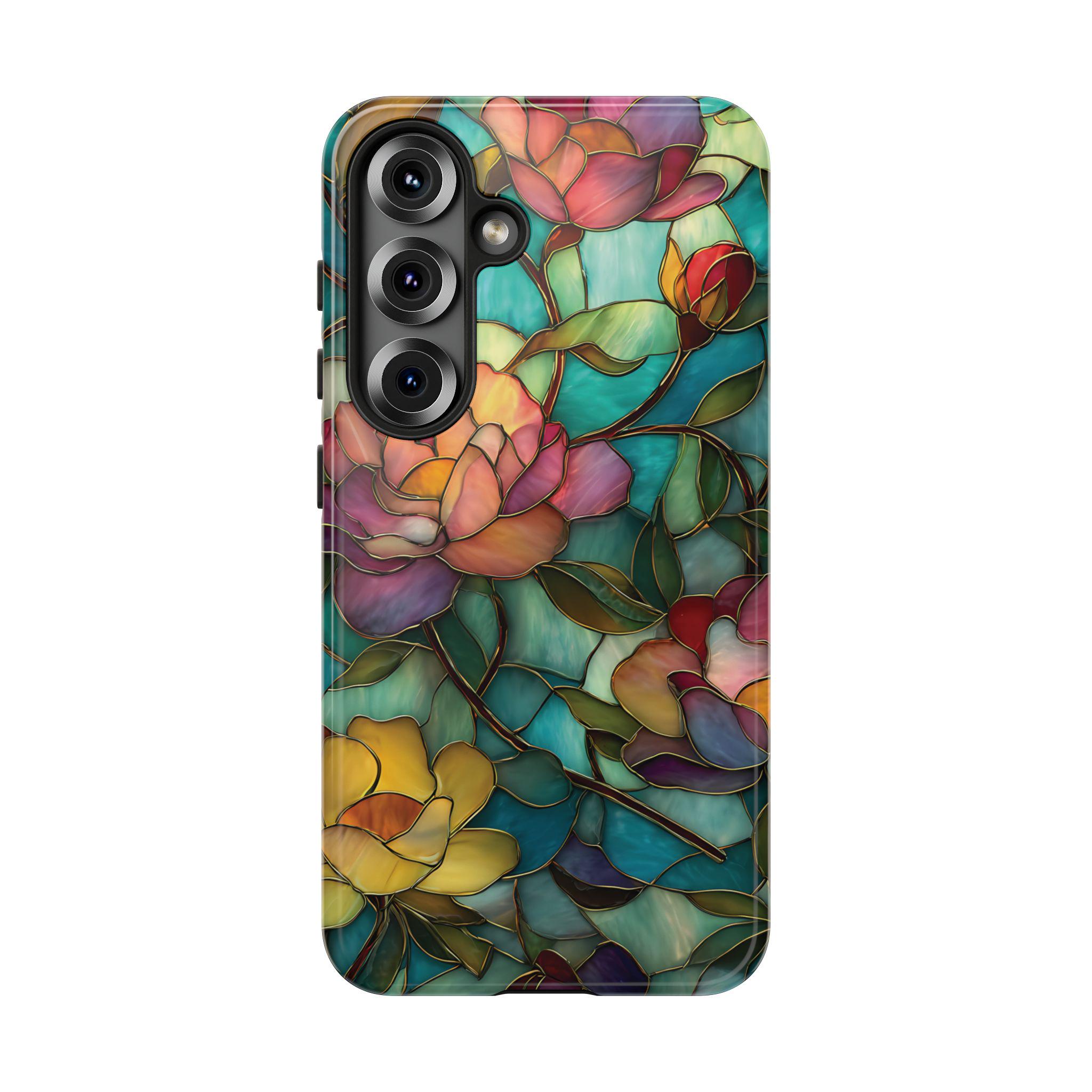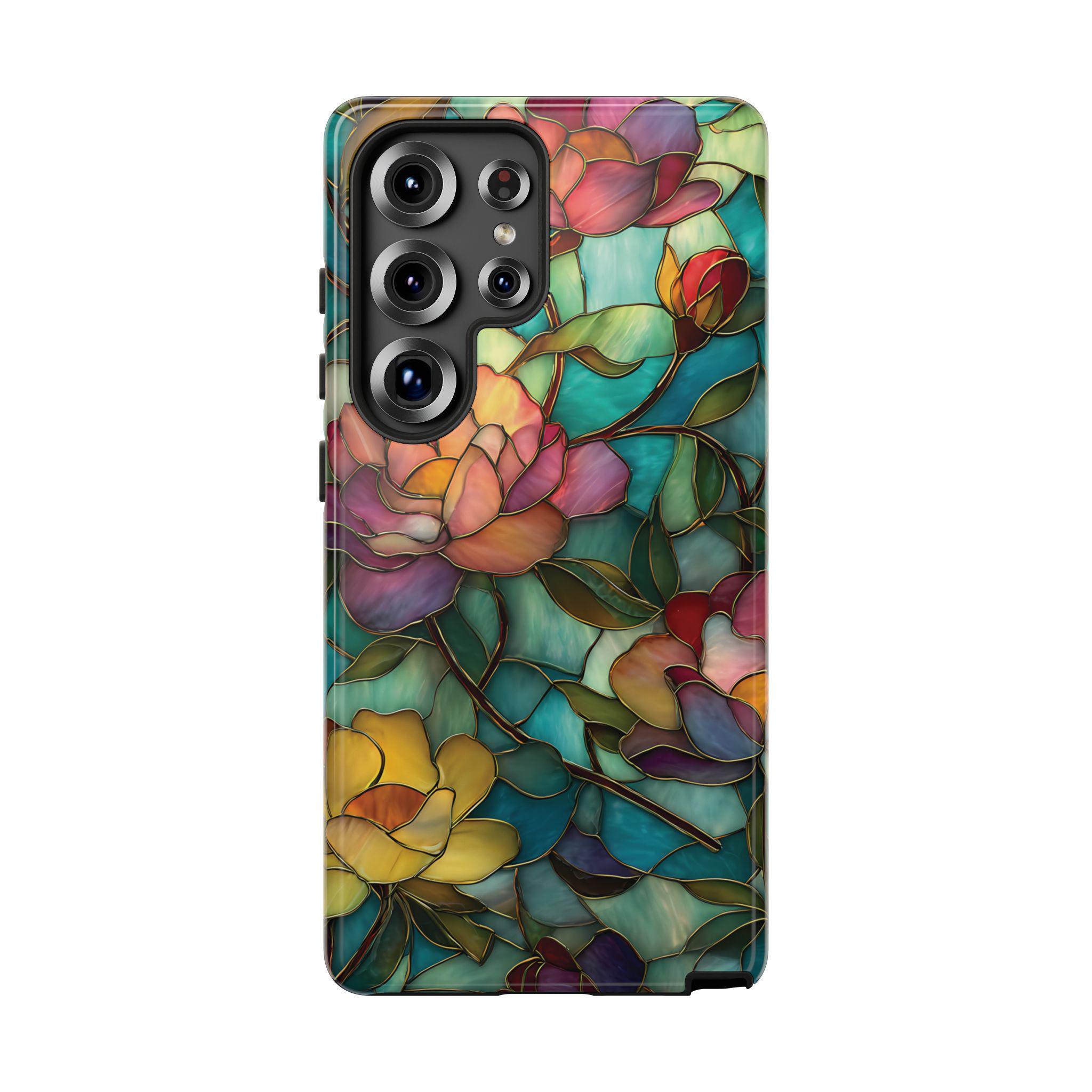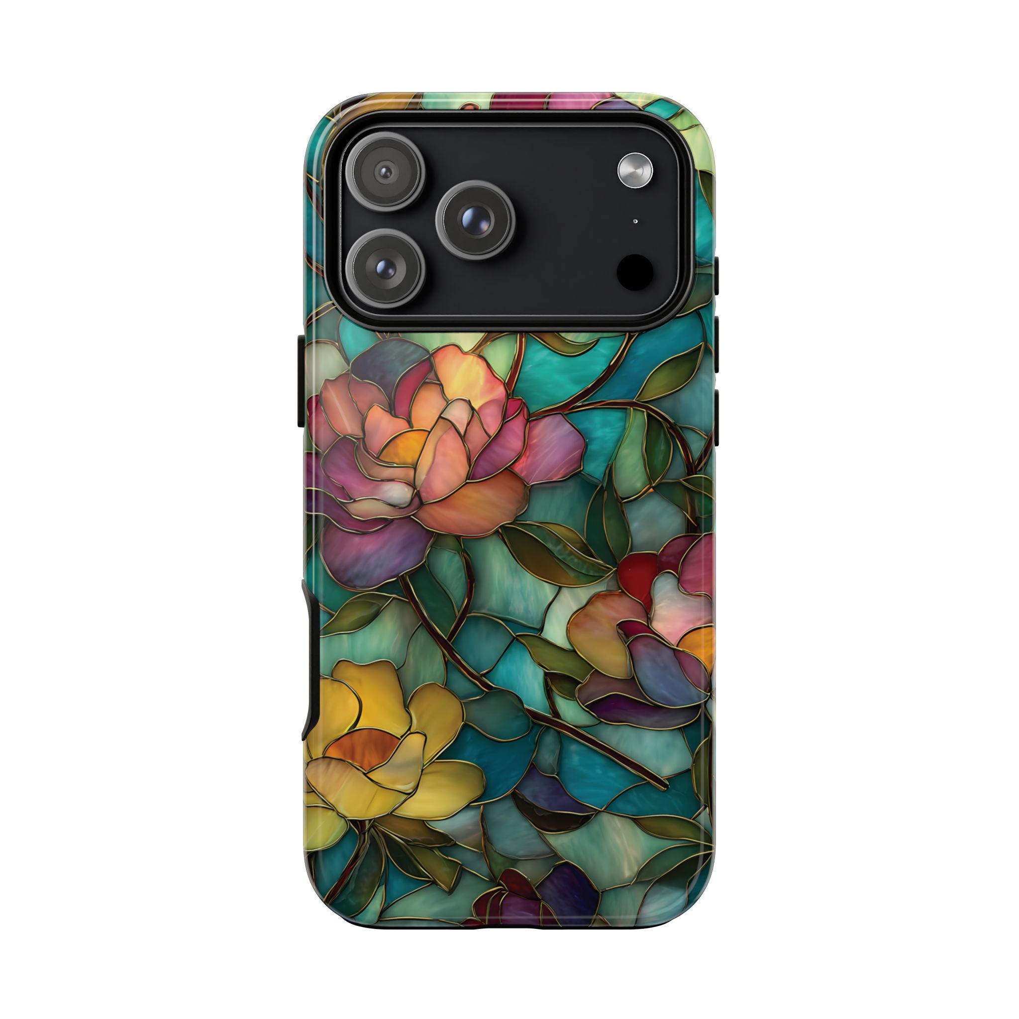 Discover the perfect blend of strength and elegance with this durable, tough phone case featuring a vibrant stained glass floral design. Built to protect your phone from drops, bumps, and scratches, it combines rugged durability with eye-catching artistry. Make a bold statement and keep your device safe in style with this stunning, resilient case.