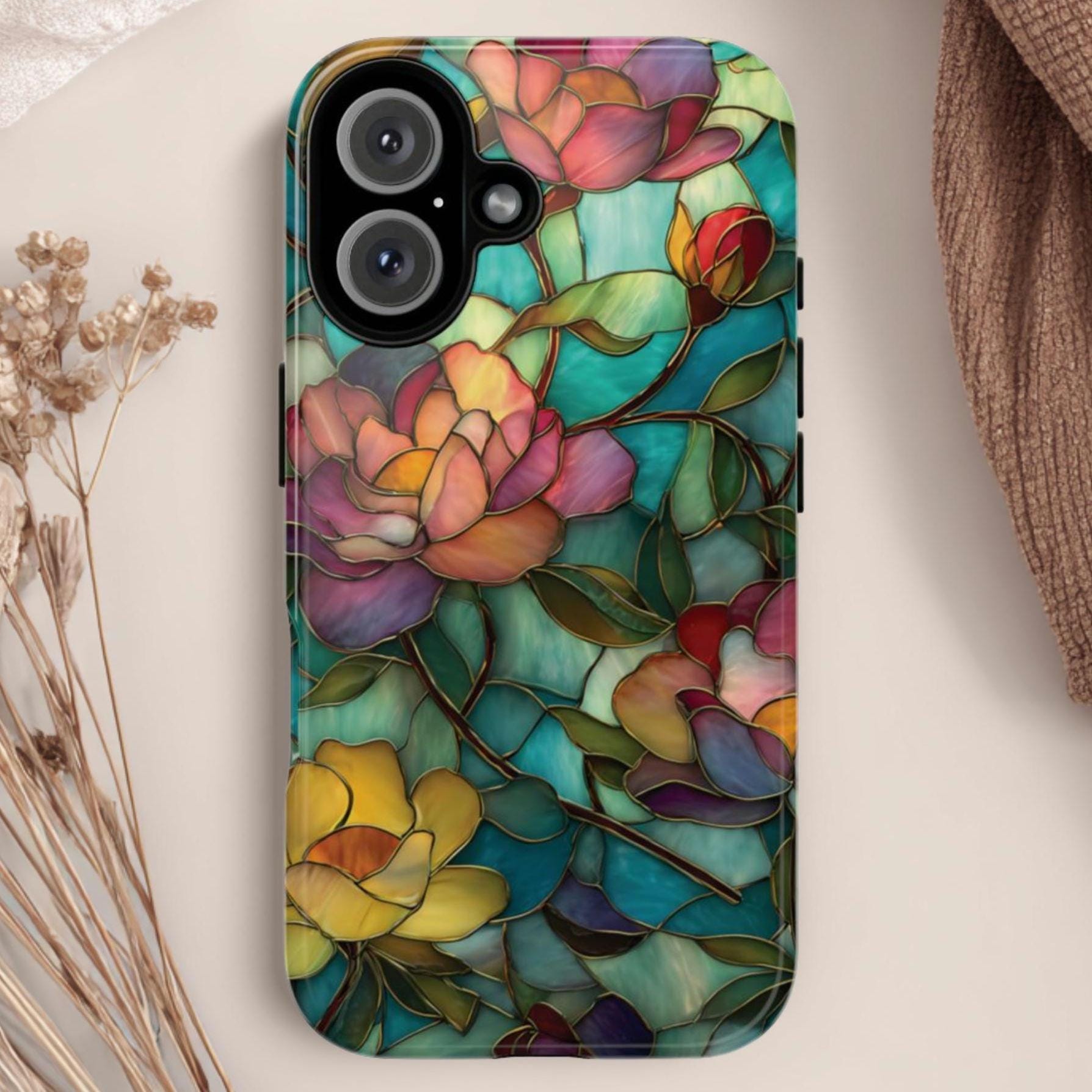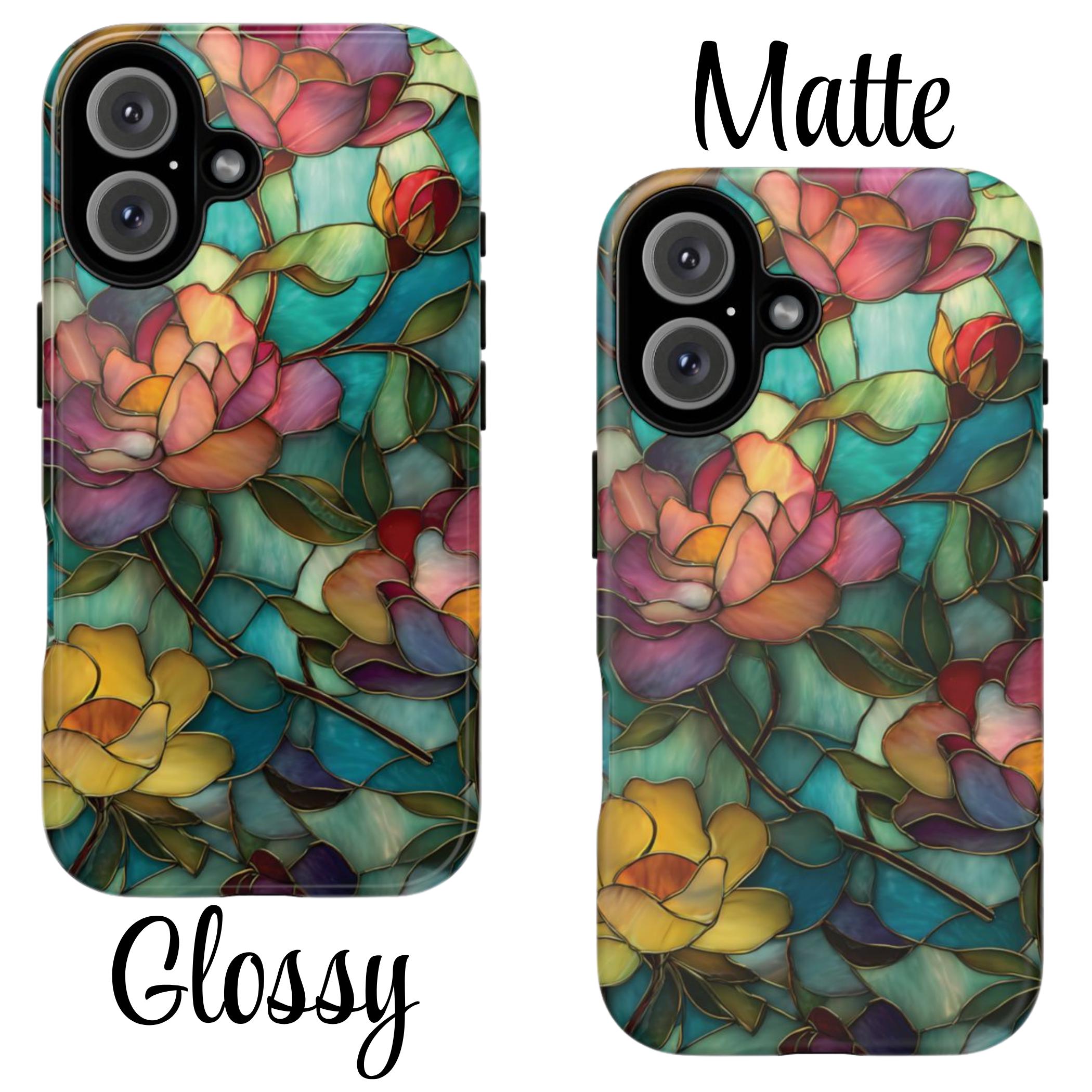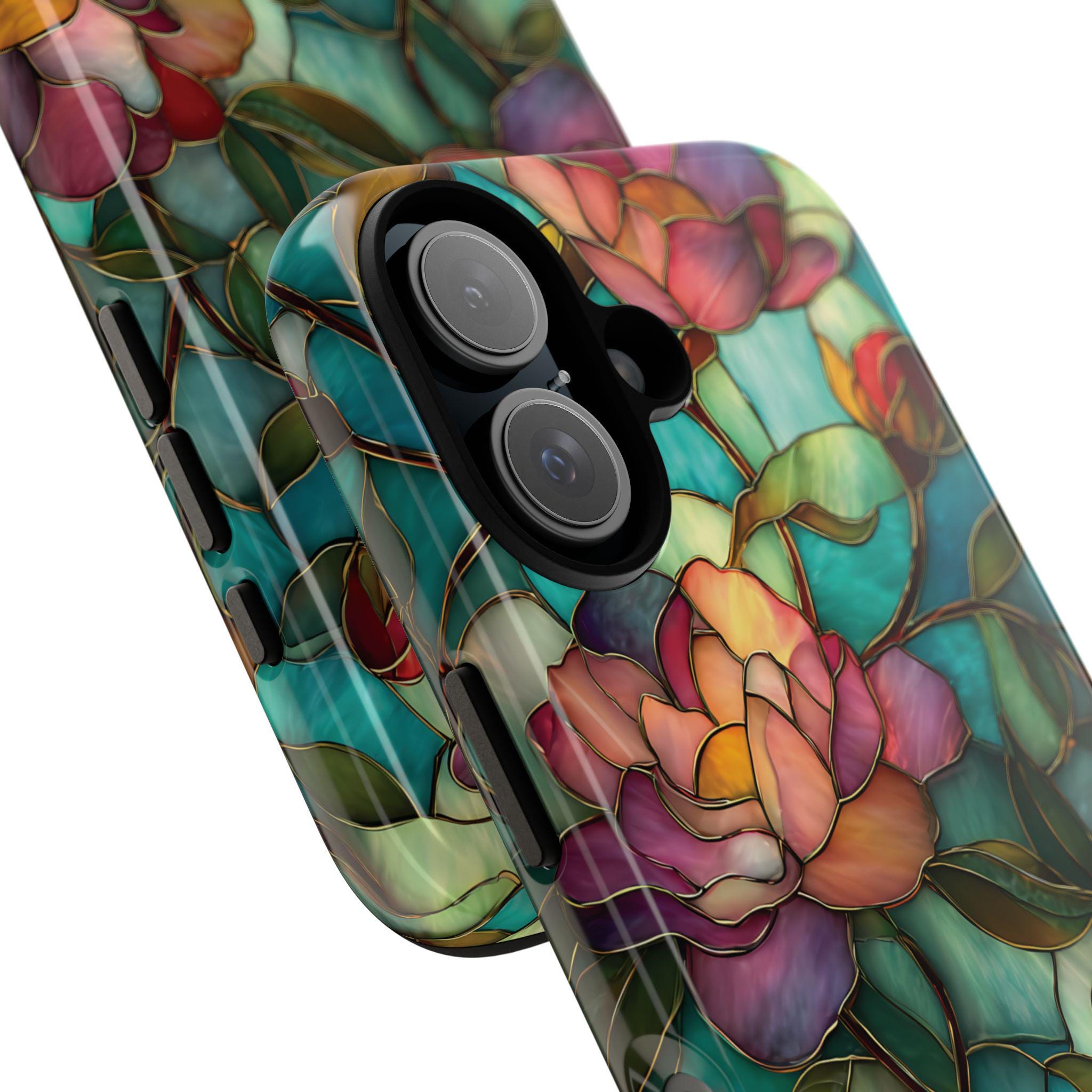 Discover the perfect blend of strength and elegance with this durable, tough phone case featuring a vibrant stained glass floral design. Built to protect your phone from drops, bumps, and scratches, it combines rugged durability with eye-catching artistry. Make a bold statement and keep your device safe in style with this stunning, resilient case.