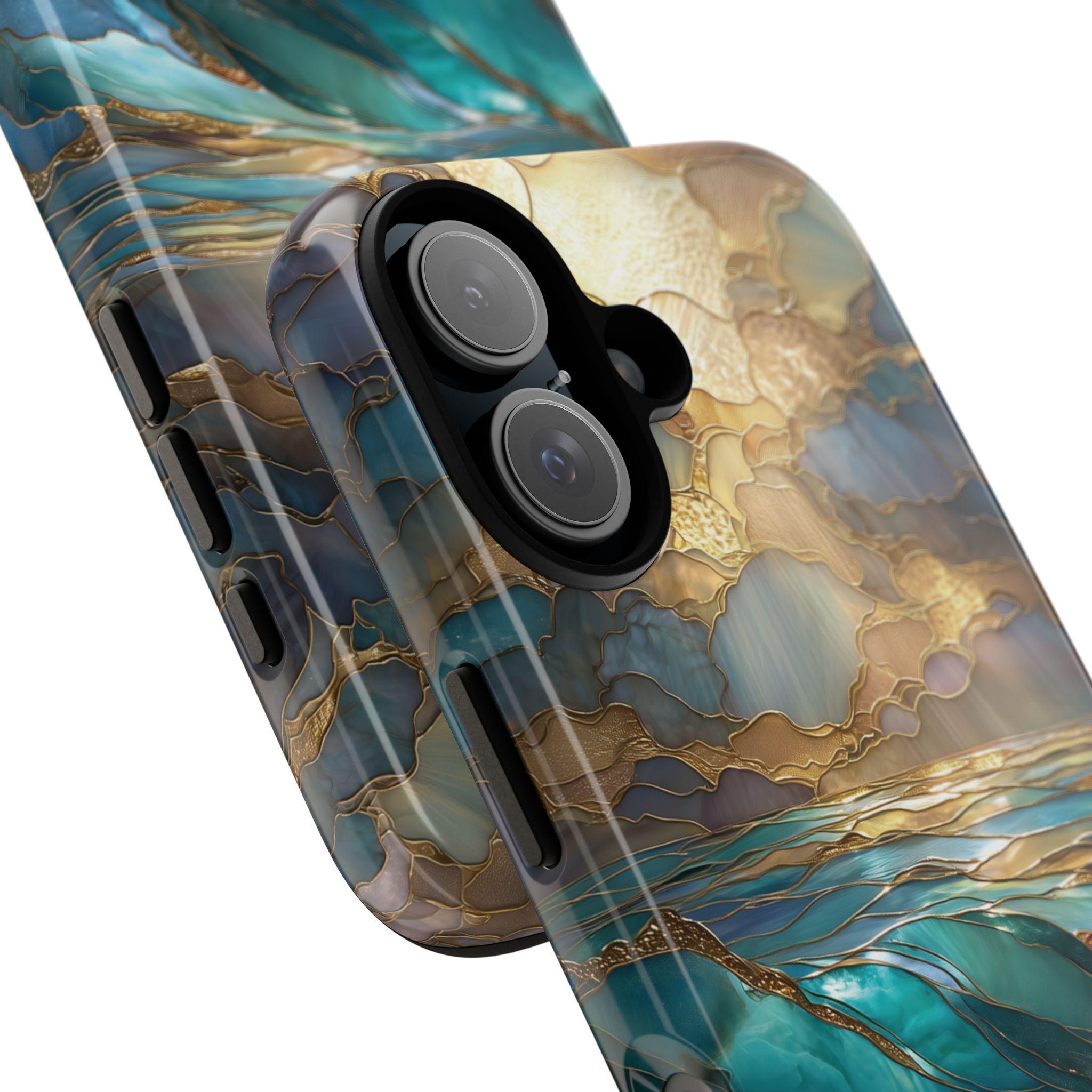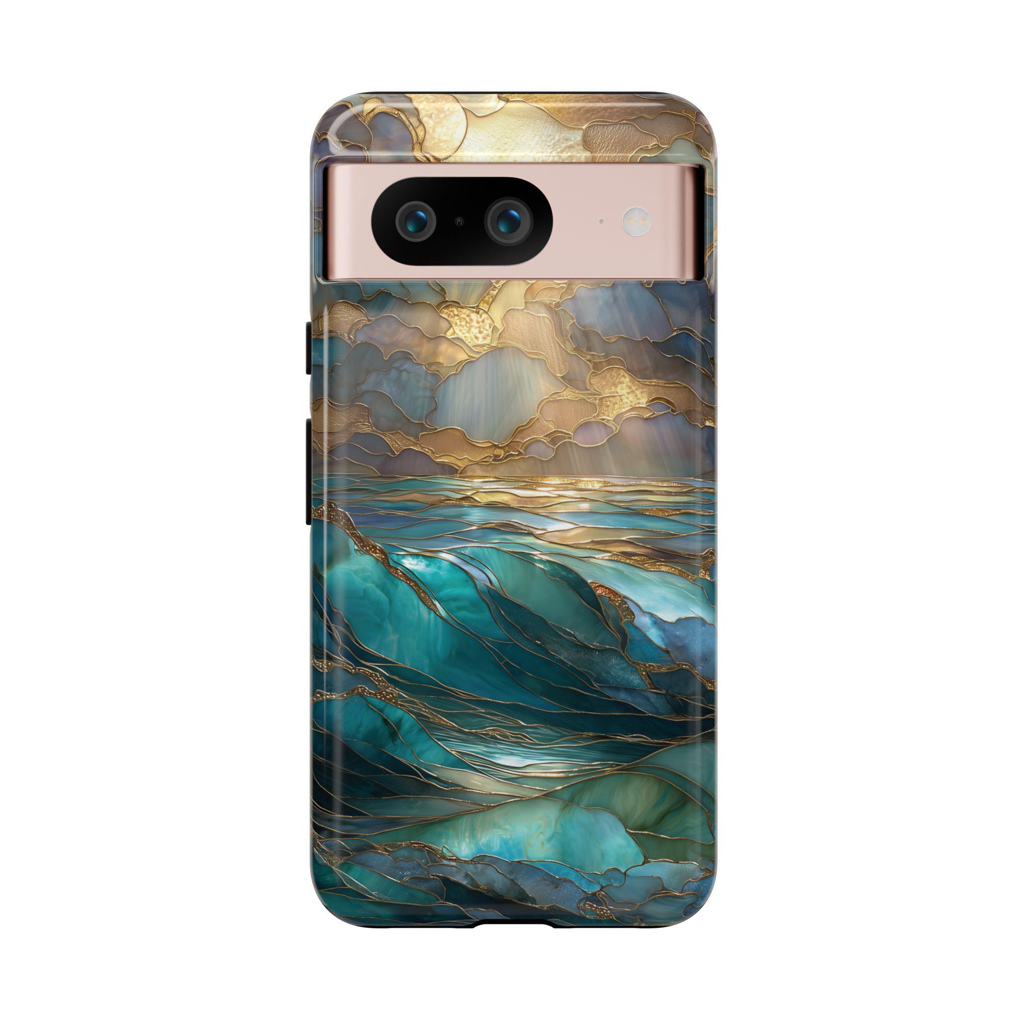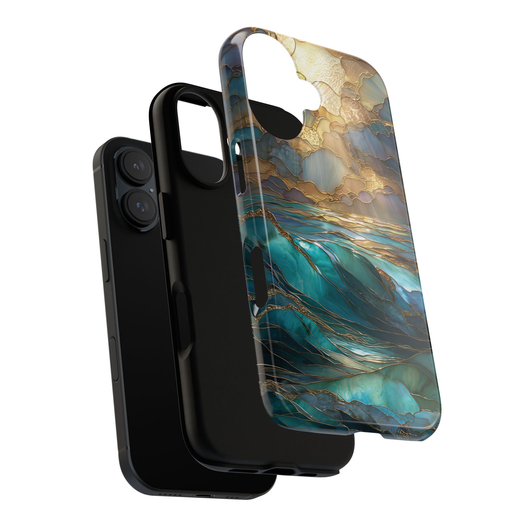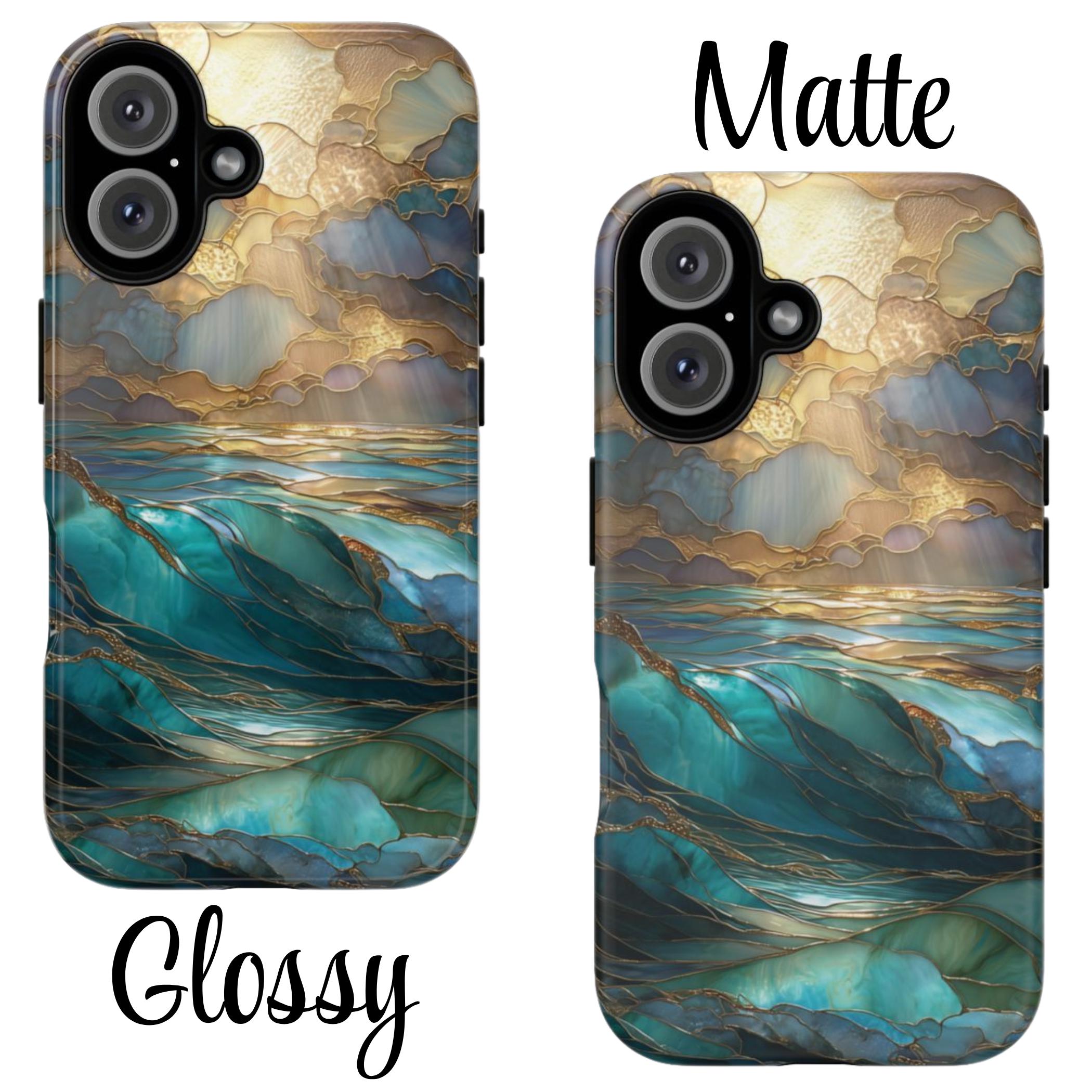 Protect your phone in style with this stunning, durable tough phone case featuring stained glass ocean sunset design. Crafted to withstand drops, bumps, and scratches, this case offers reliable protection while showcasing a vibrant, high-quality print. Perfect for those who want to combine fashion with function, it provides a snug fit and easy access to all ports. Elevate your phone’s look and keep it safe with this unique, eye-catching accessory.