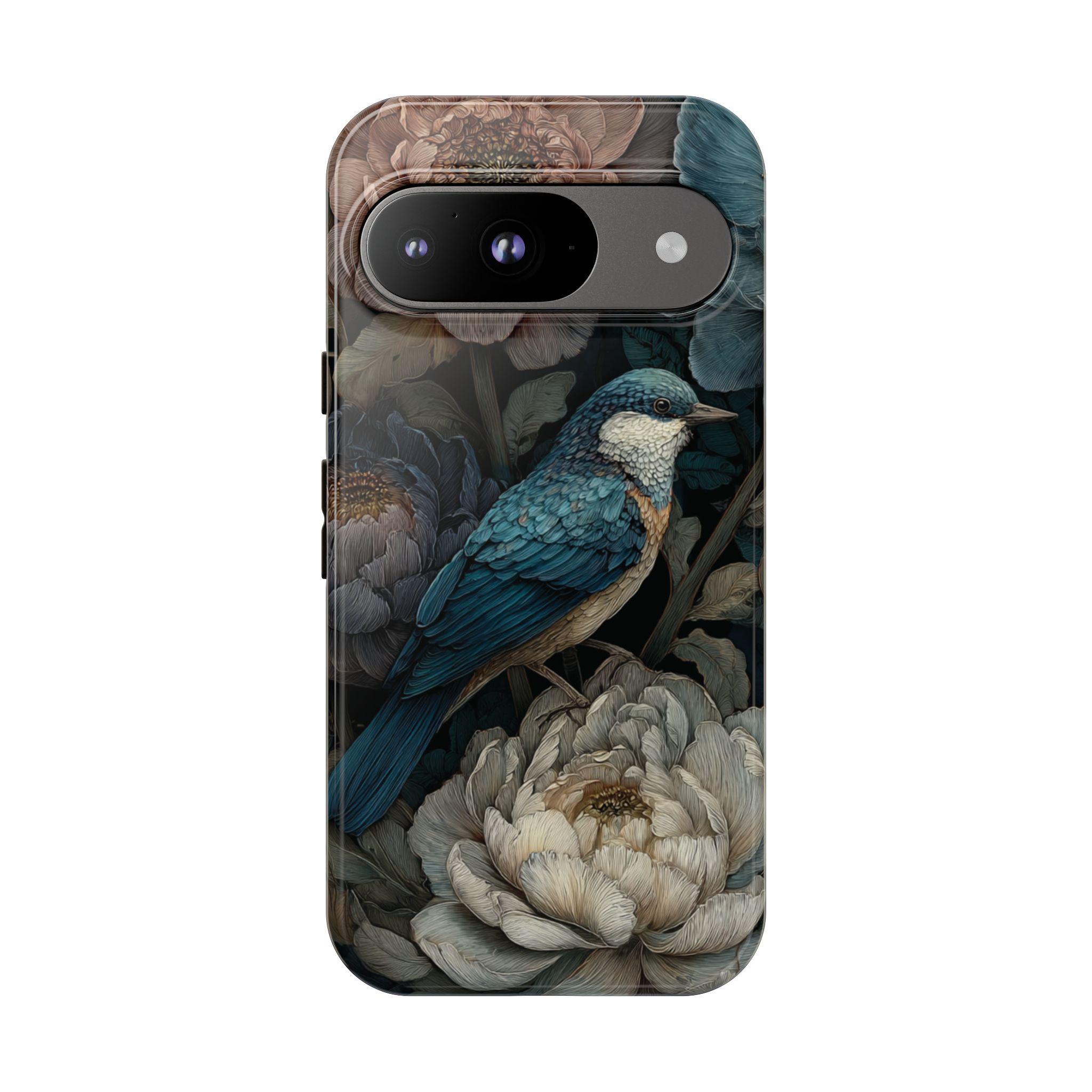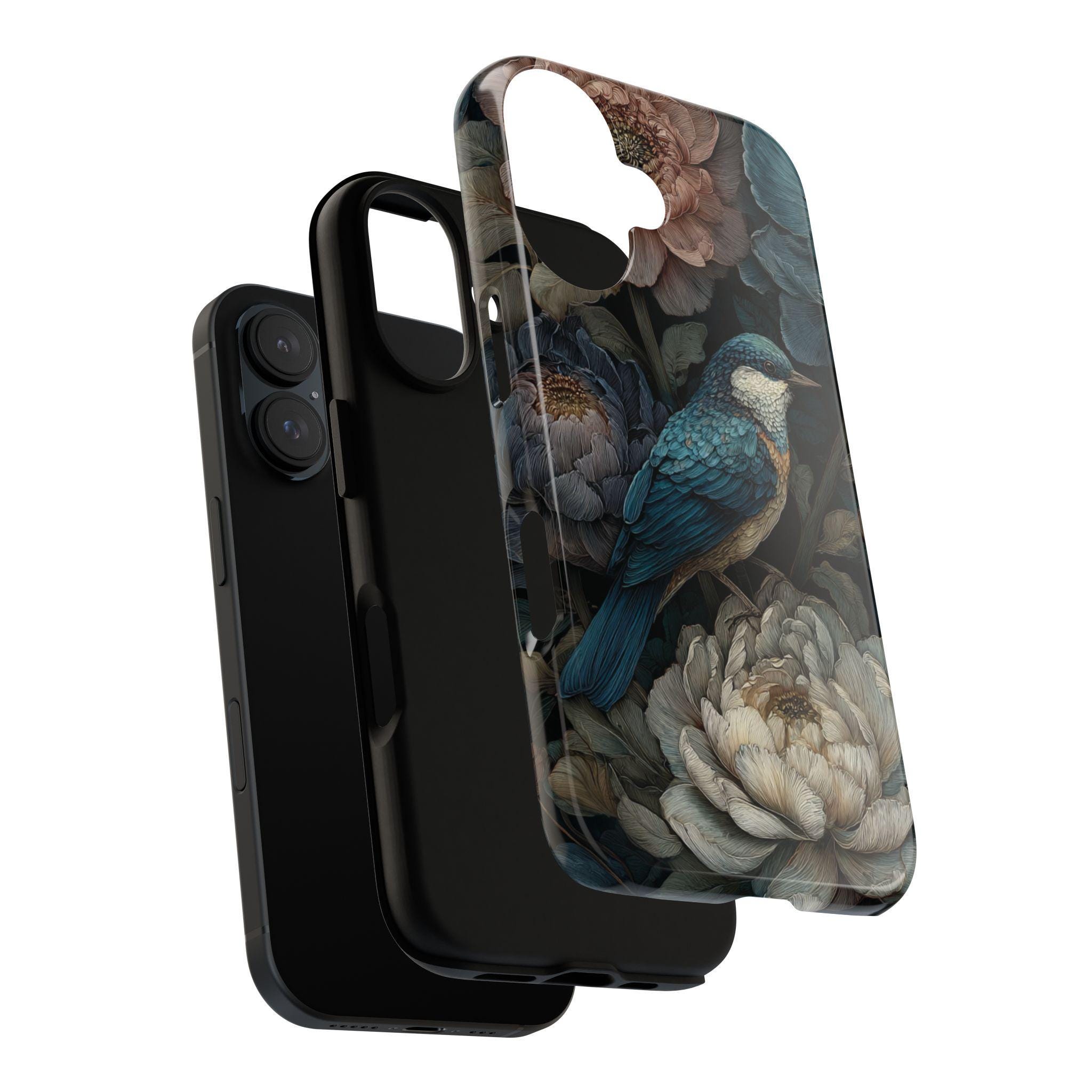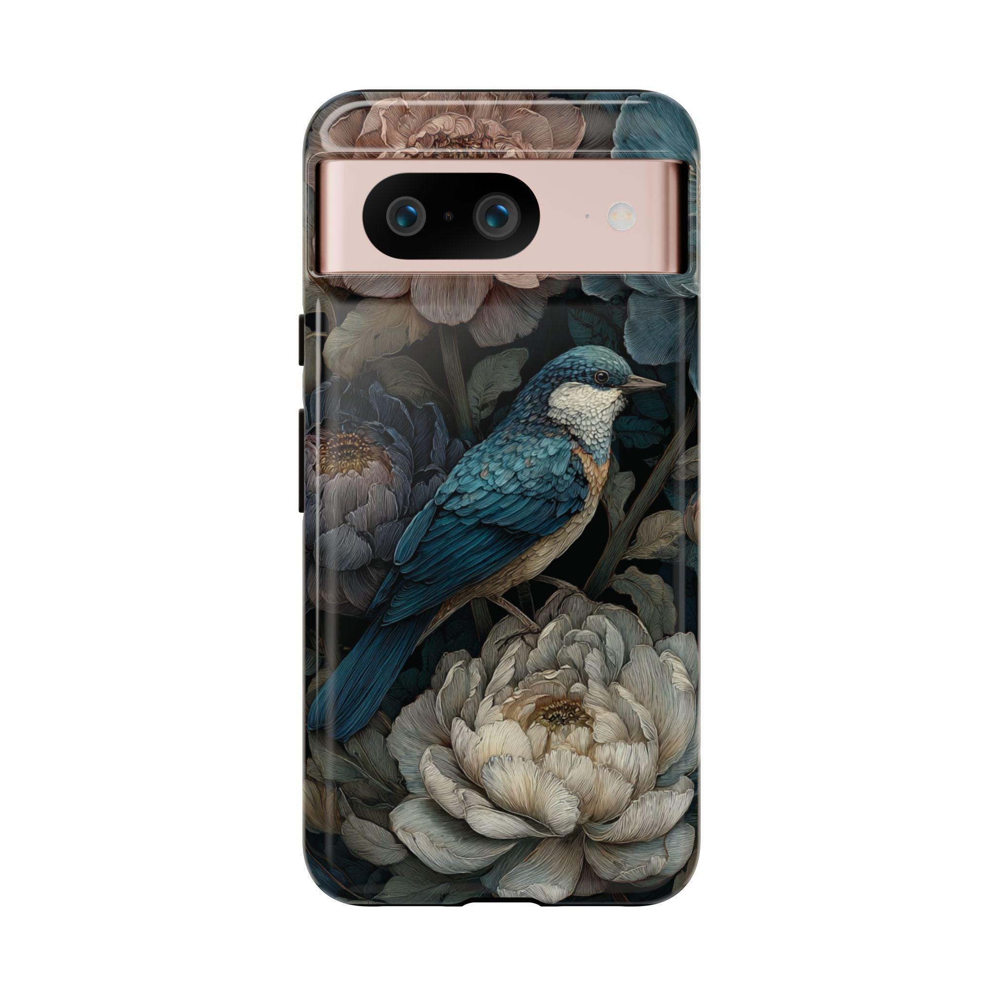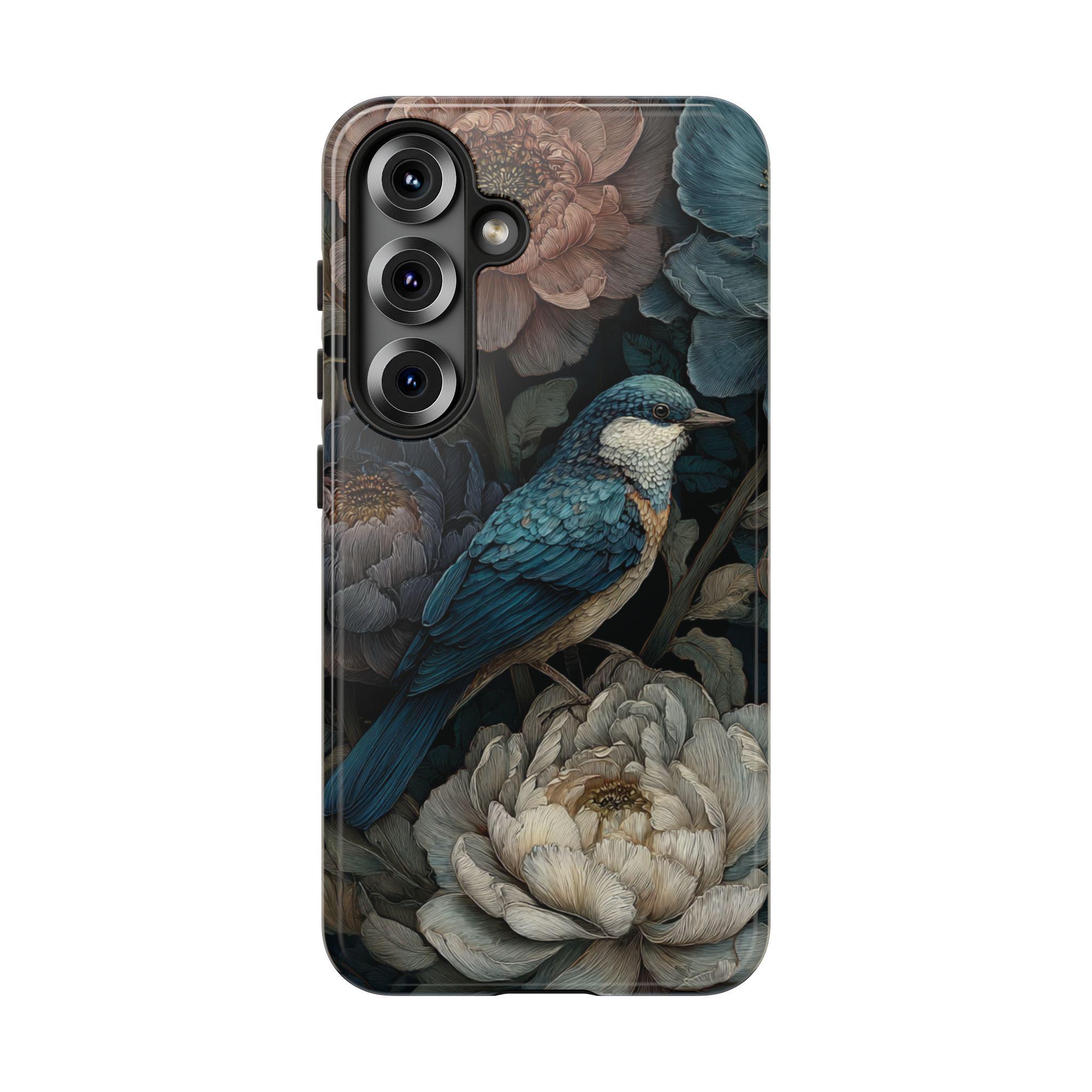 Protect your phone with timeless botanical beauty. This tough phone case features an elegant blue songbird surrounded by richly detailed florals in deep, moody tones. Inspired by vintage botanical art, it combines artistic style with durable protection—perfect for nature lovers, boho aesthetics, and anyone who wants their phone case to feel like a small work of art.
