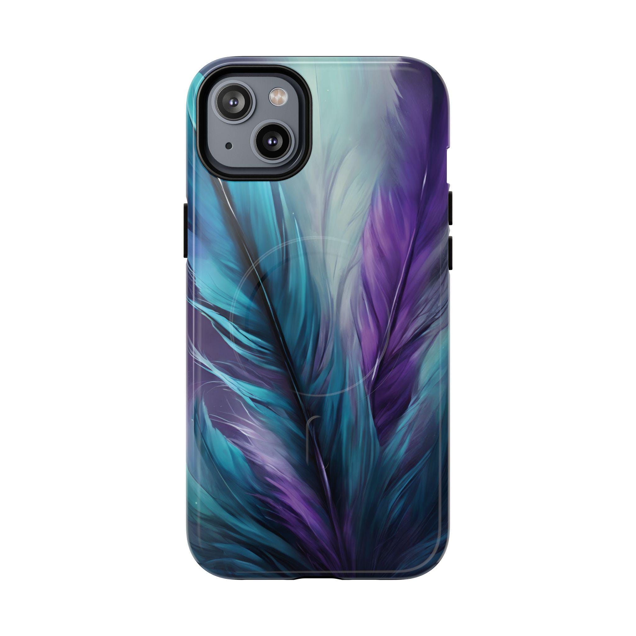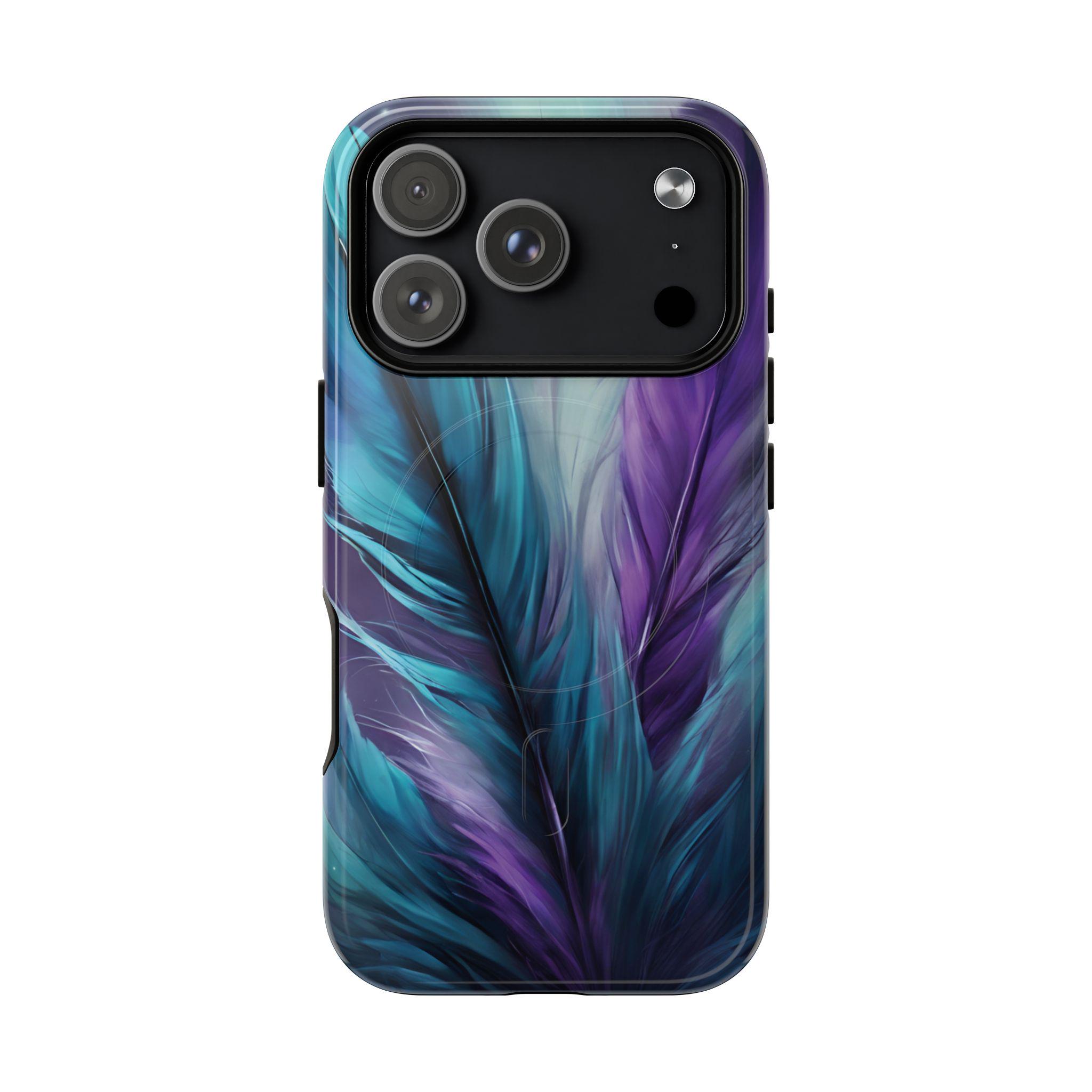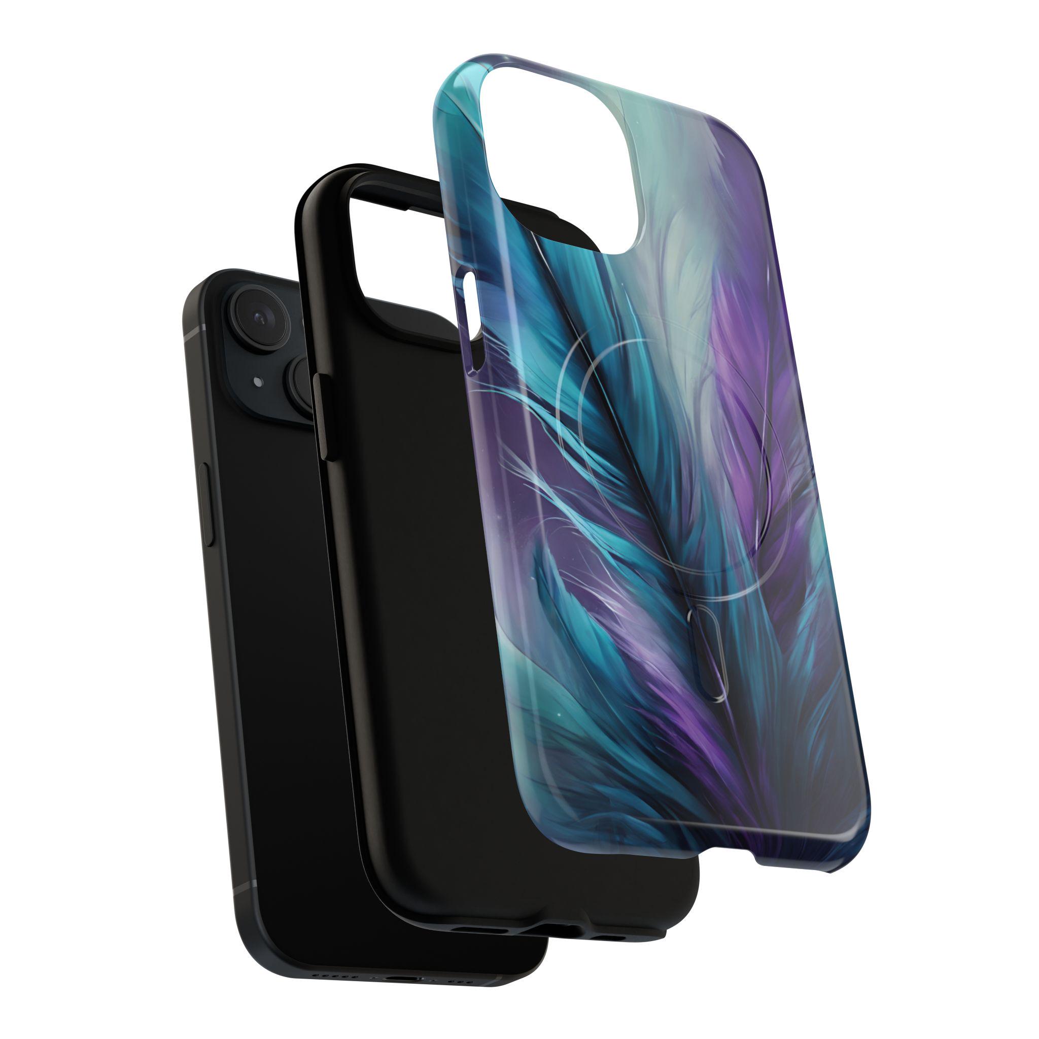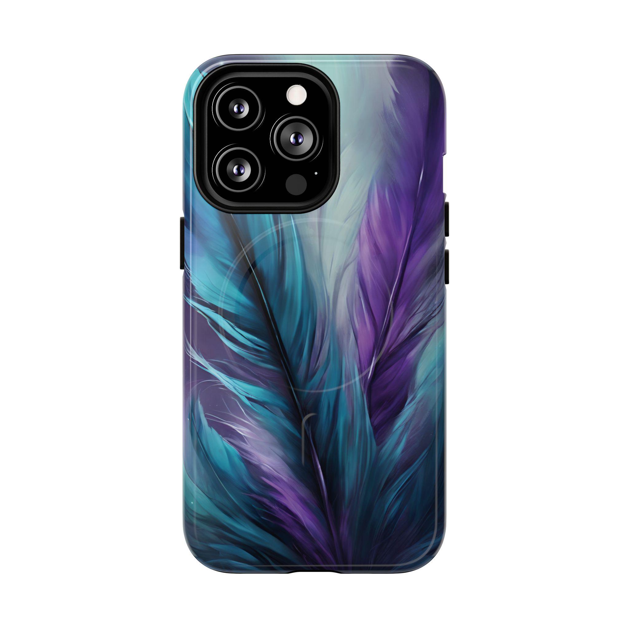 Elevate your style and protection with our MagSafe compatible tough phone case, featuring a stunning feather design in vibrant teal and purple hues. This case offers robust protection for your device while allowing seamless MagSafe connectivity.