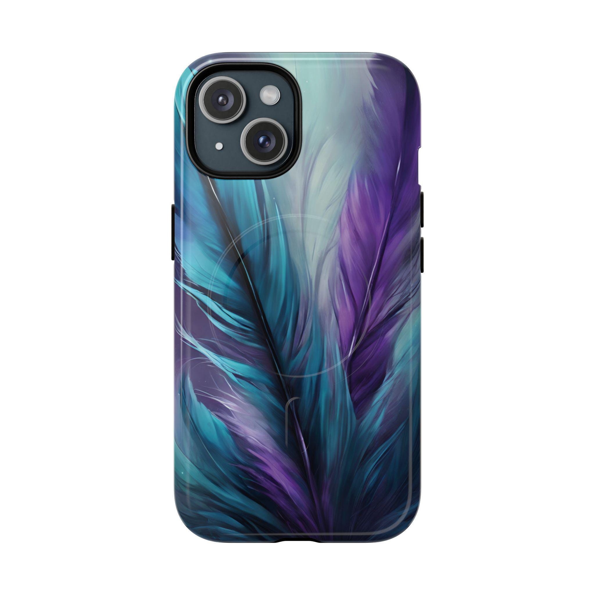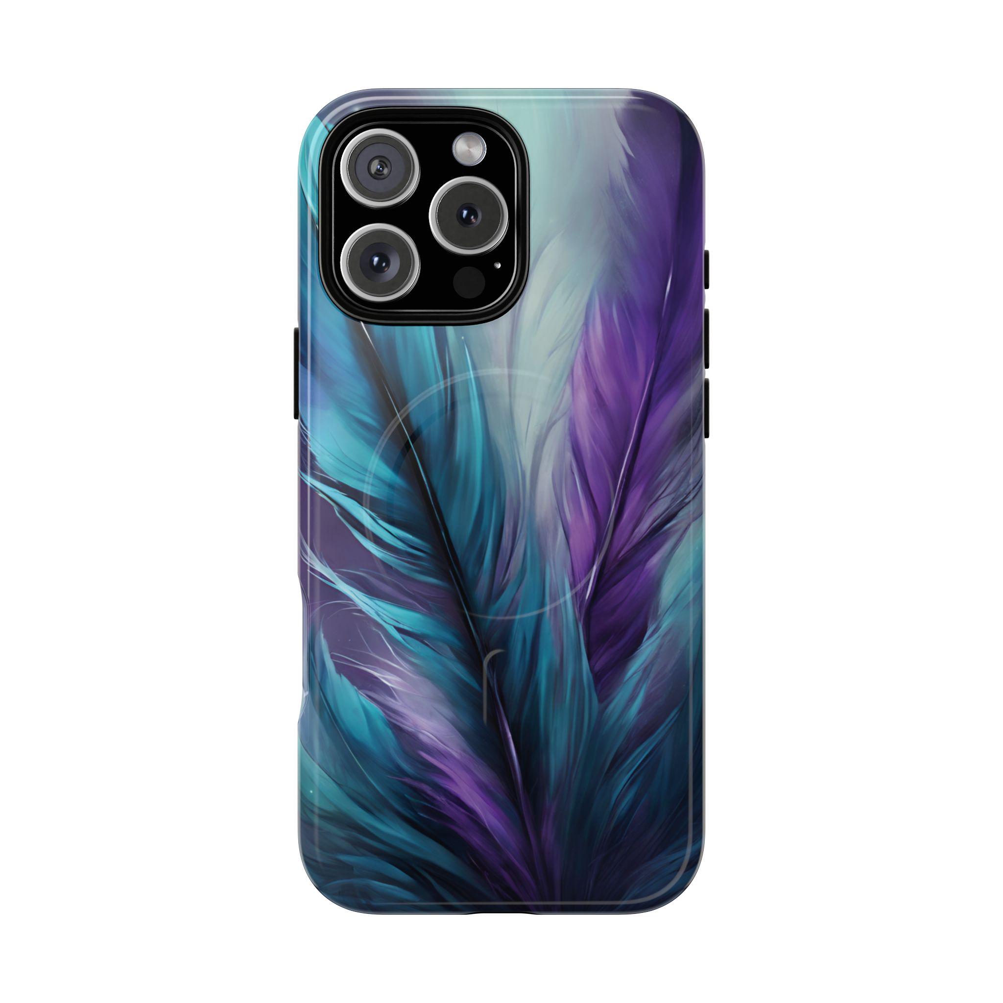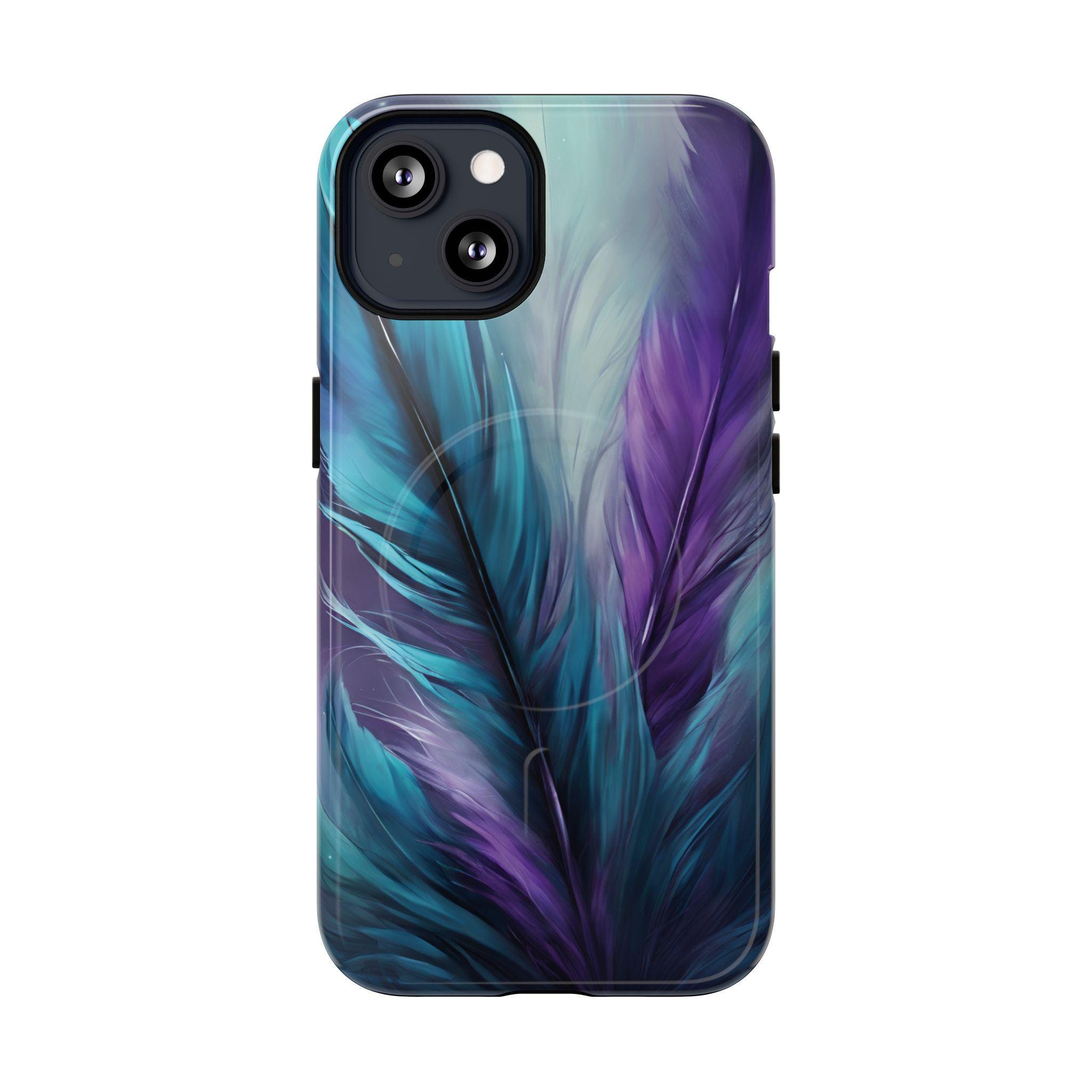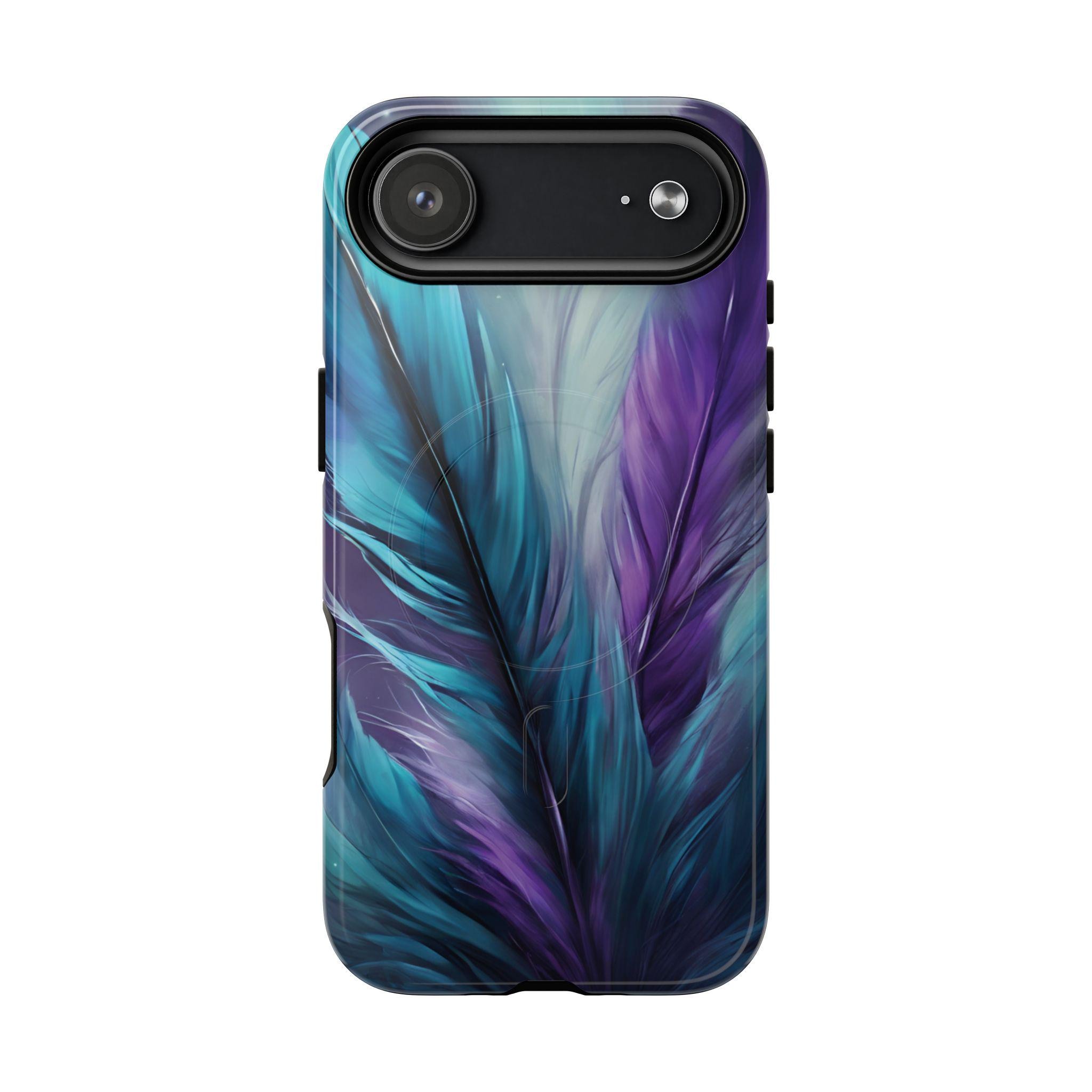 Elevate your style and protection with our MagSafe compatible tough phone case, featuring a stunning feather design in vibrant teal and purple hues. This case offers robust protection for your device while allowing seamless MagSafe connectivity.