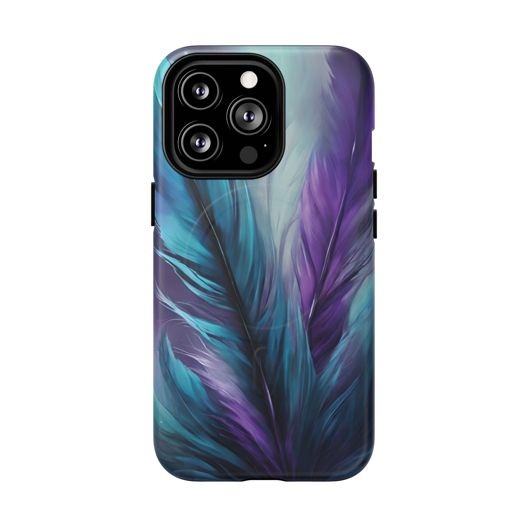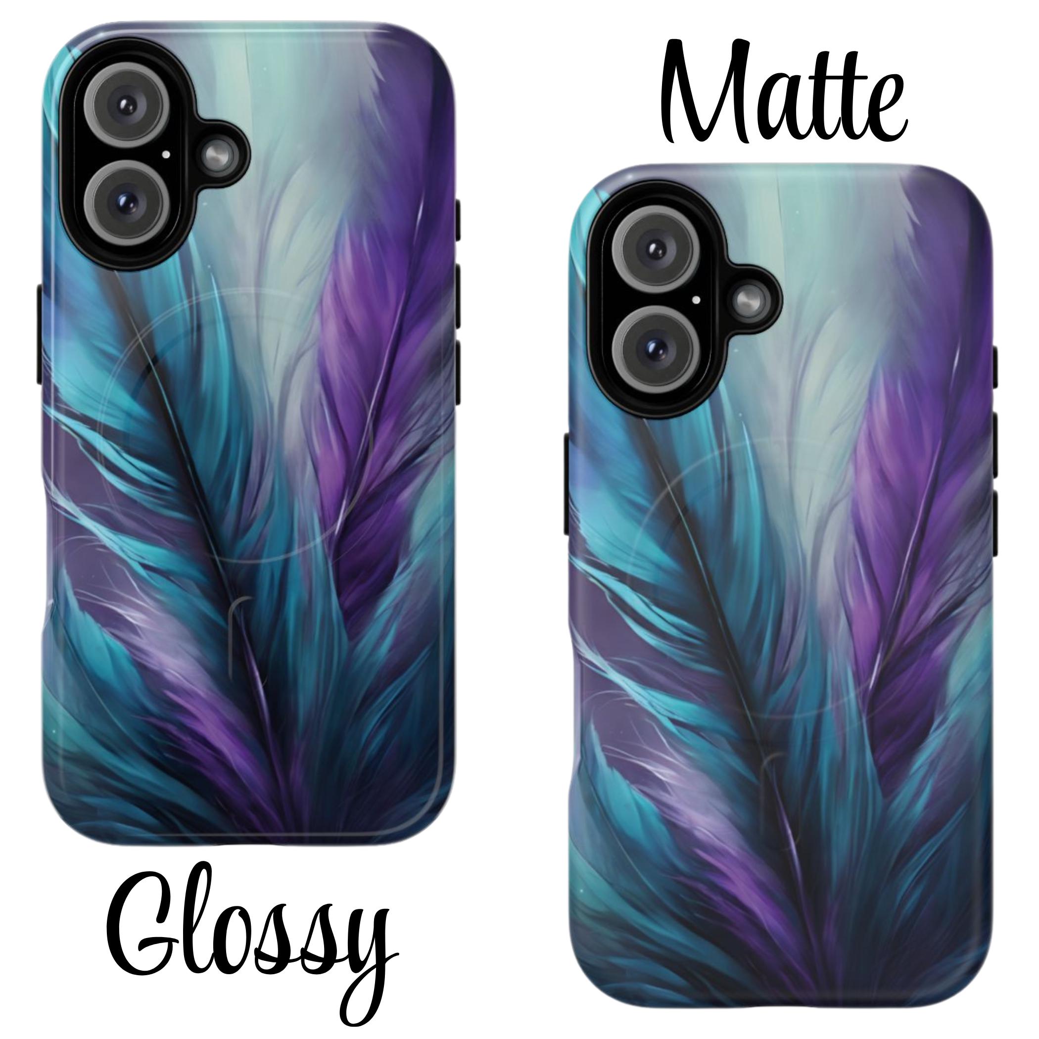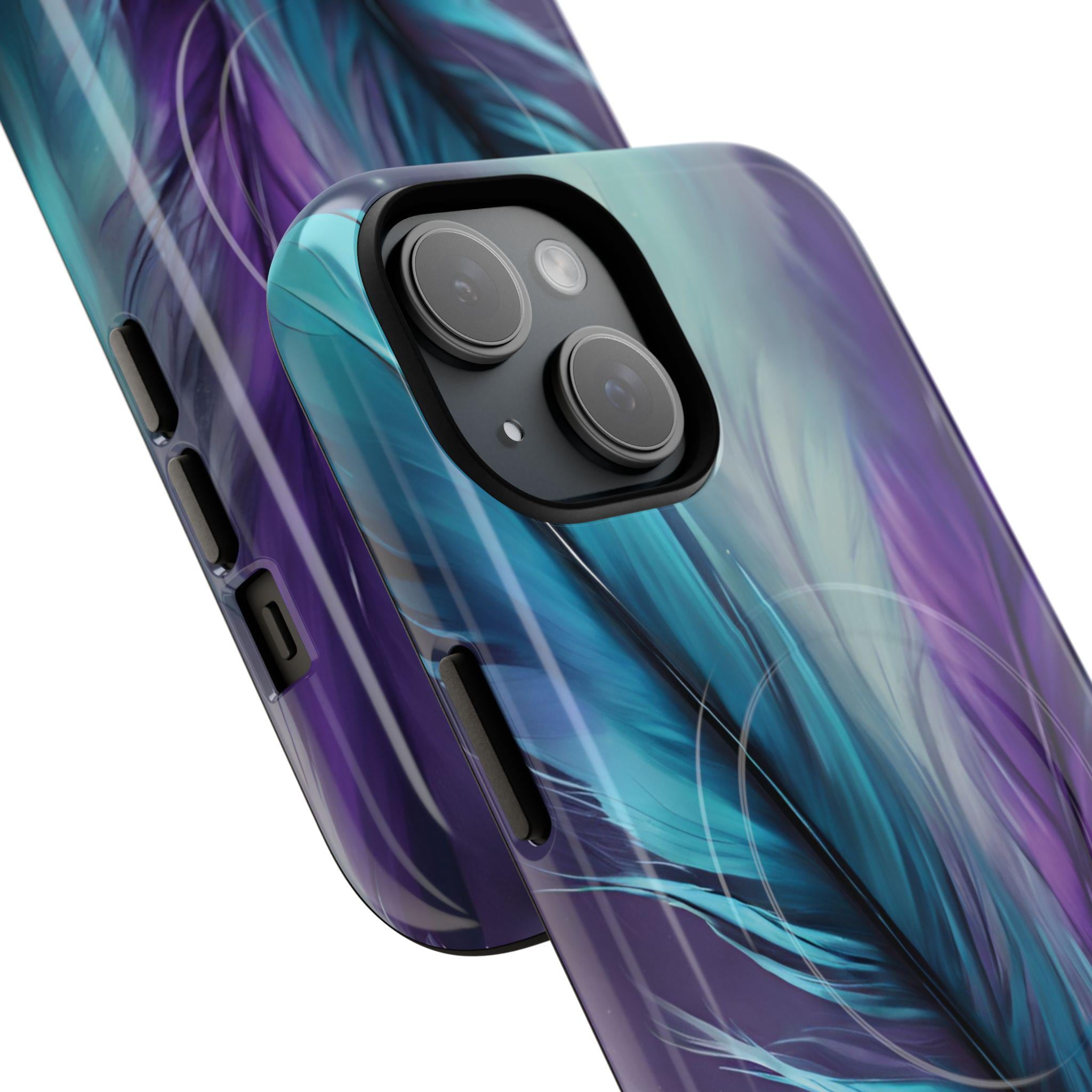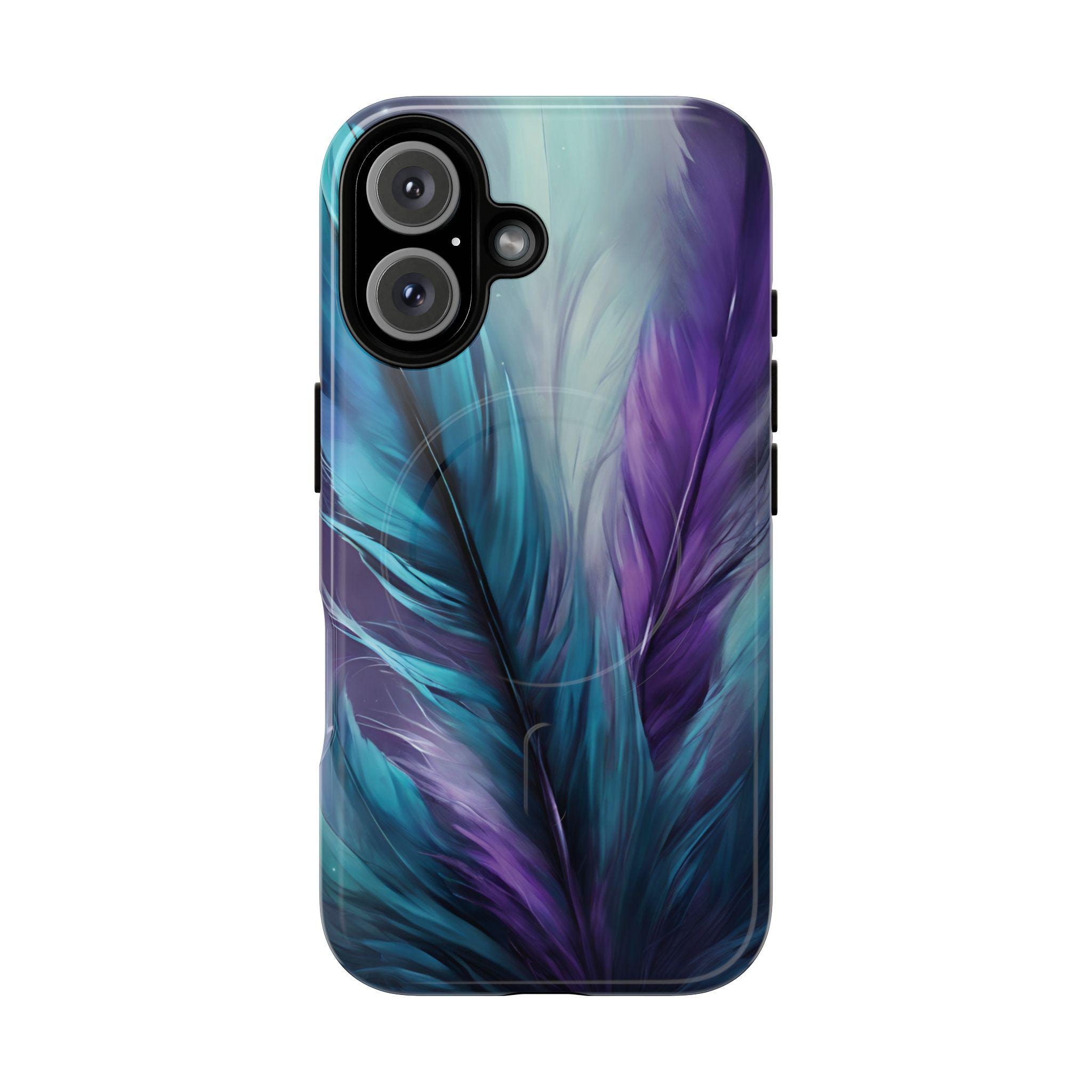 Elevate your style and protection with our MagSafe compatible tough phone case, featuring a stunning feather design in vibrant teal and purple hues. This case offers robust protection for your device while allowing seamless MagSafe connectivity.