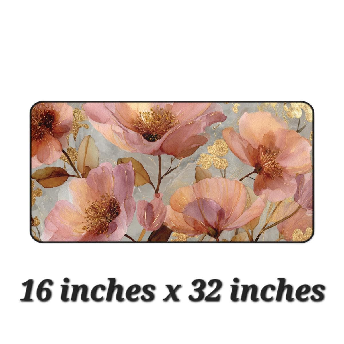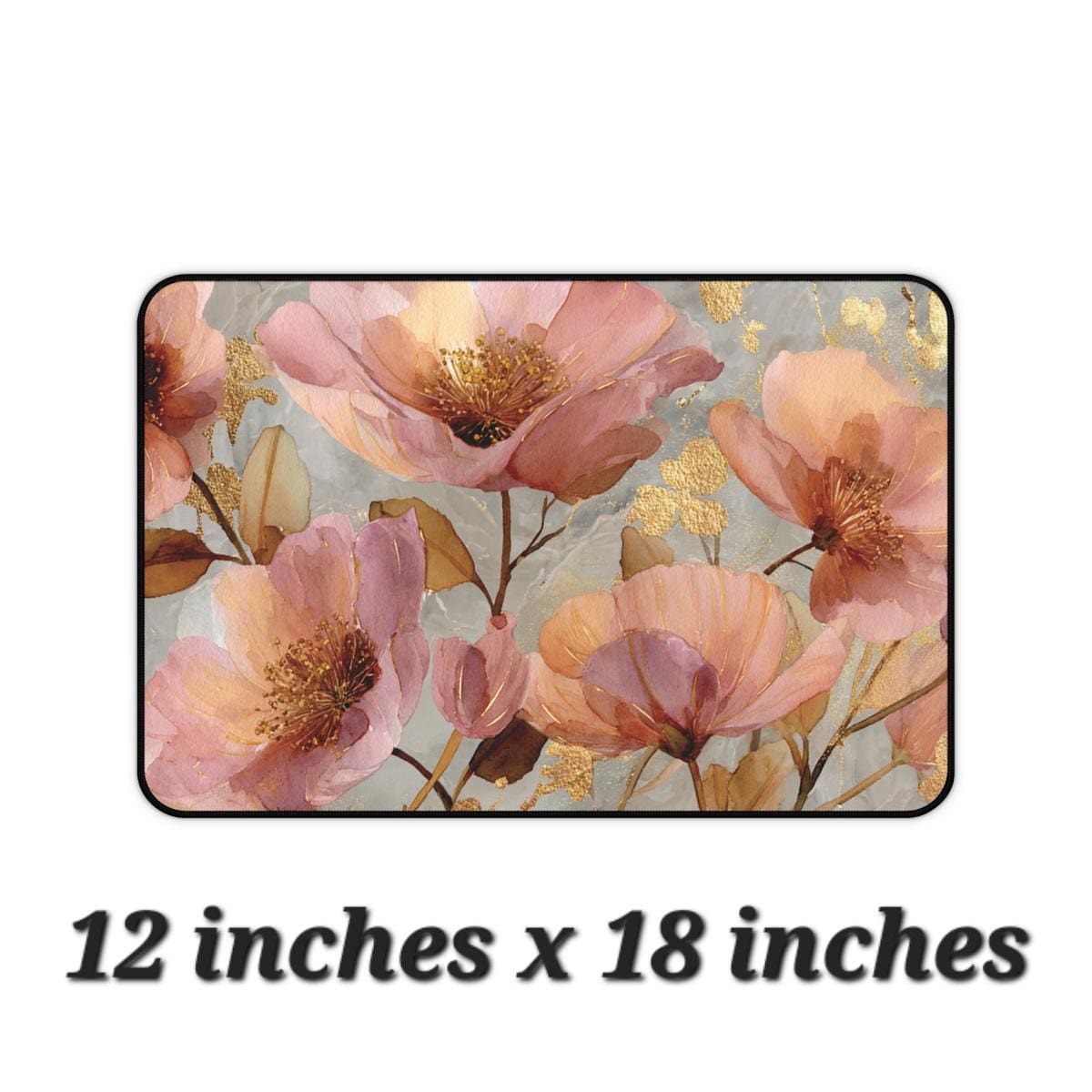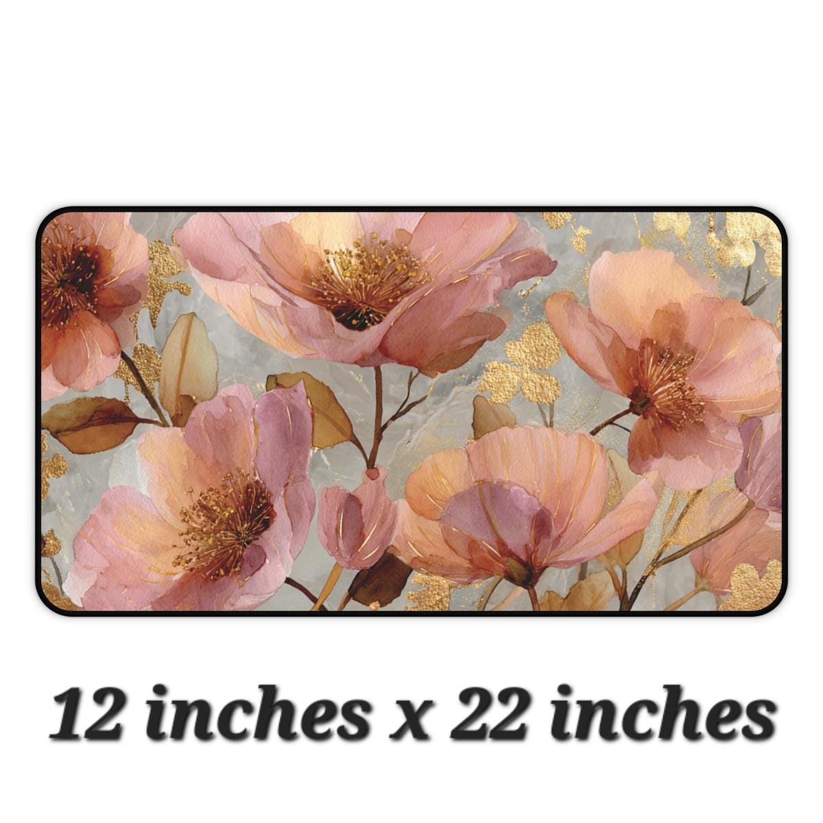 Pink & Gold Floral Desk Mat | 12x18, 12x22, 16x32