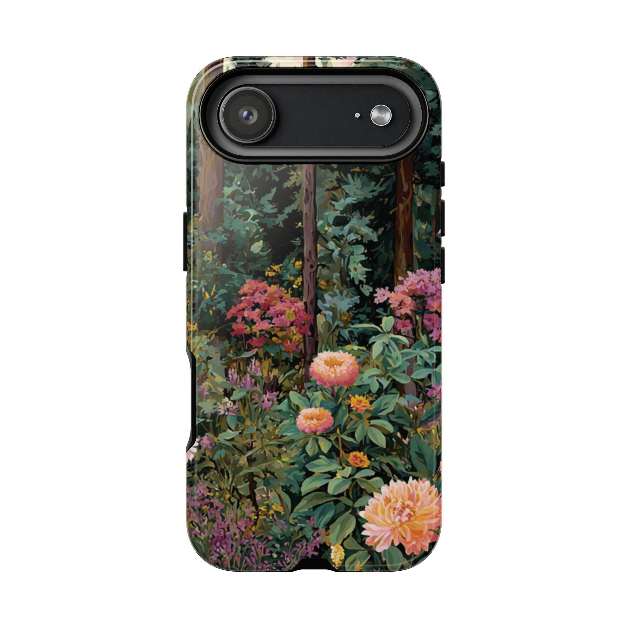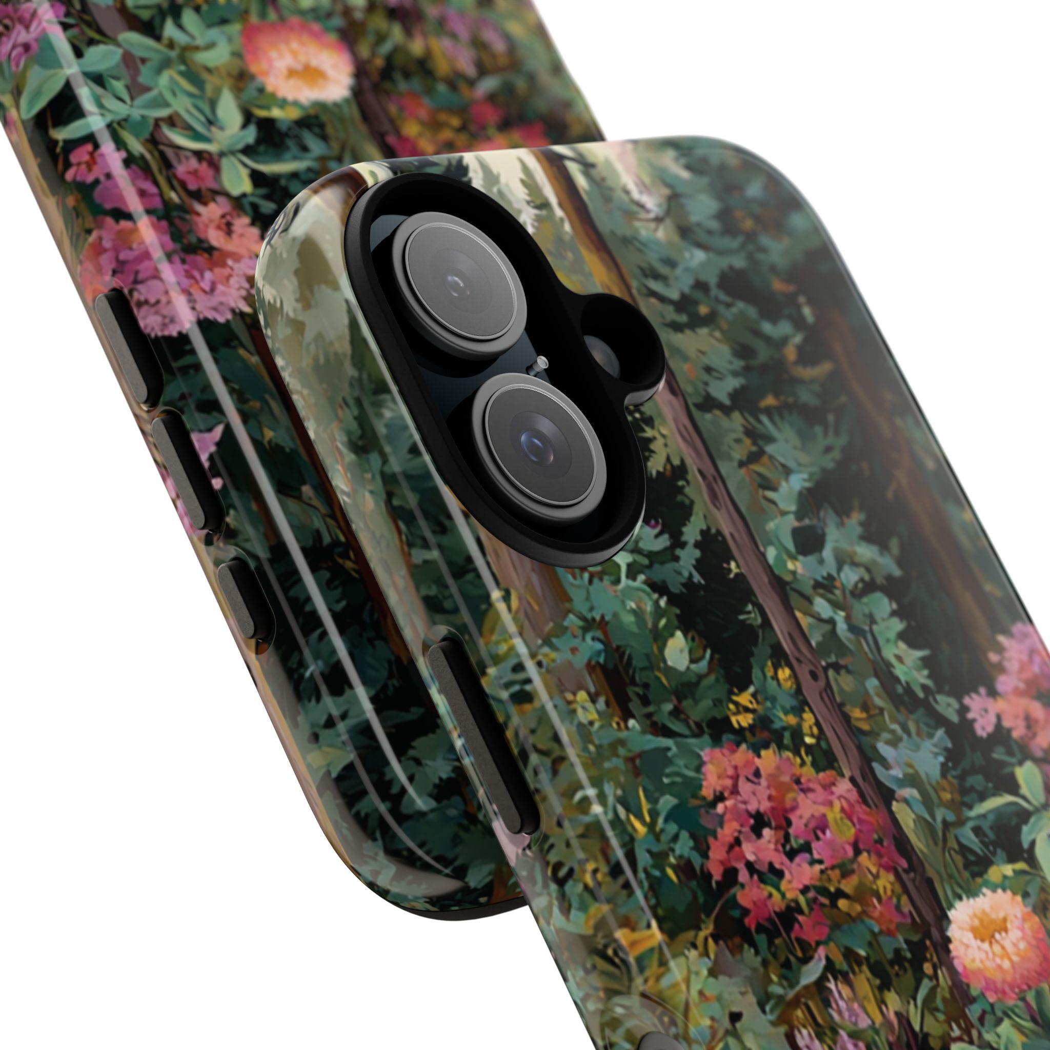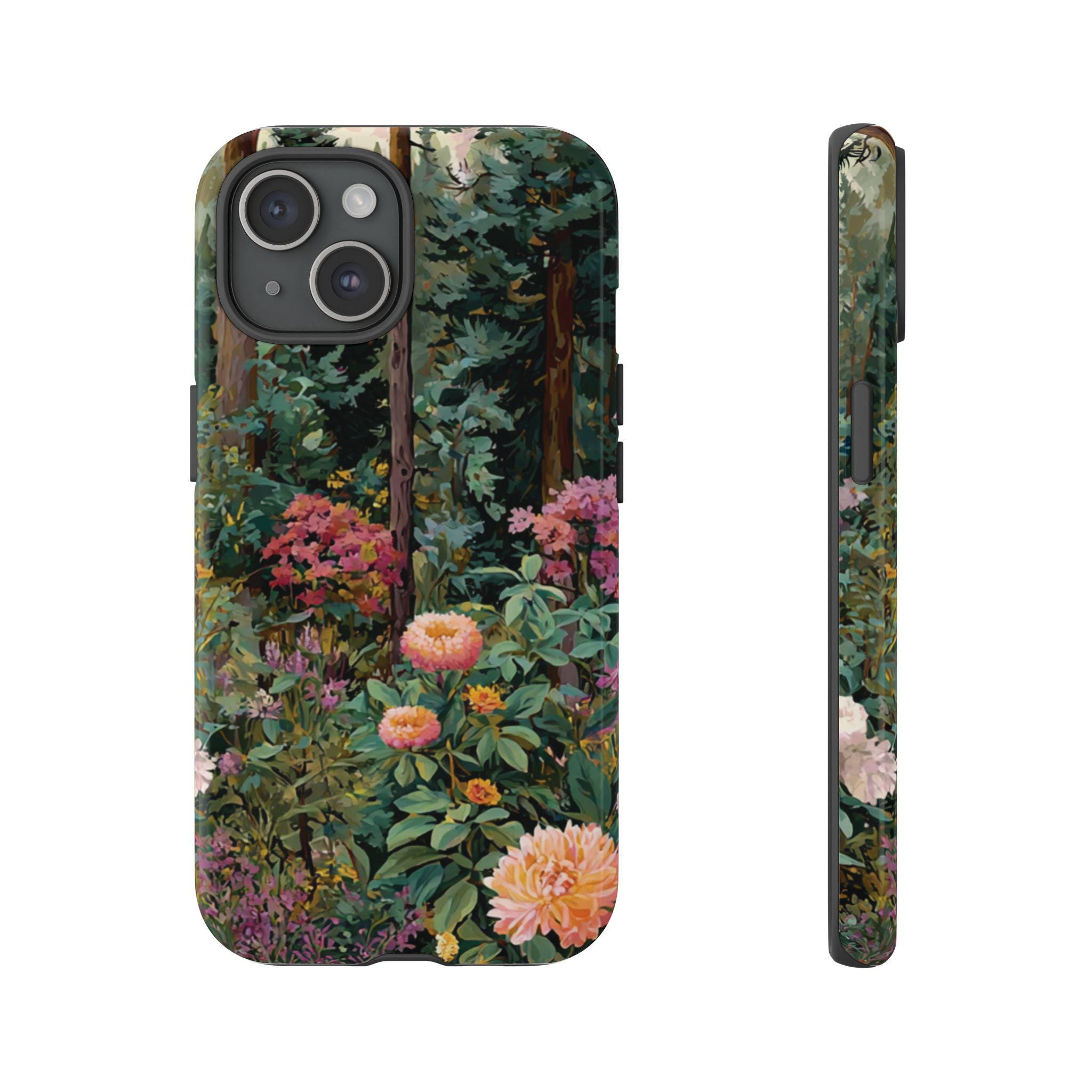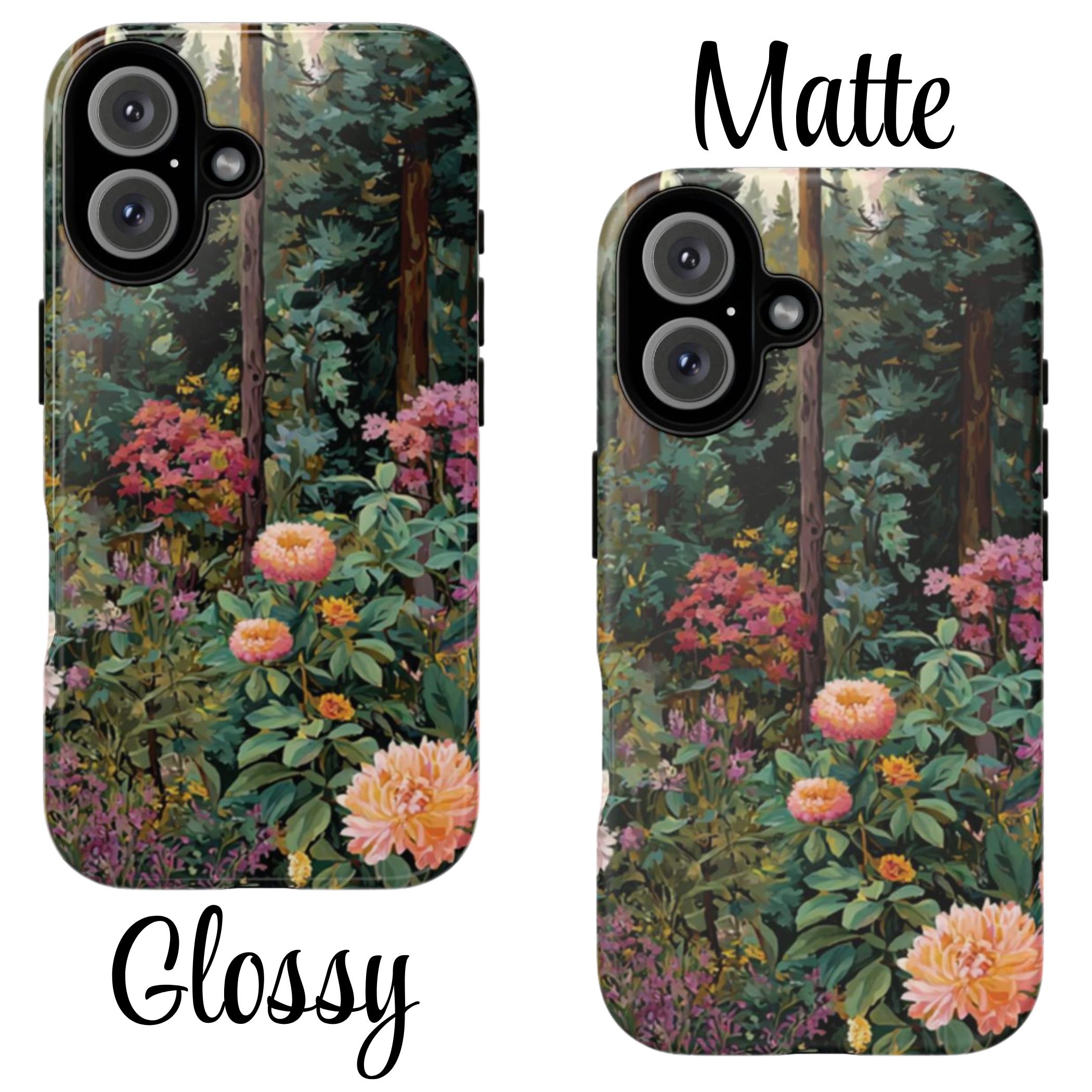 Discover the perfect blend of nature and resilience with this tough phone case featuring a stunning floral and forest-inspired design. Crafted to provide maximum protection against drops, bumps, and scratches, this durable case showcases an intricate forest scene filled with blooming flowers and lush greenery. Ideal for nature lovers and those who want a rugged yet beautiful accessory for their phone.