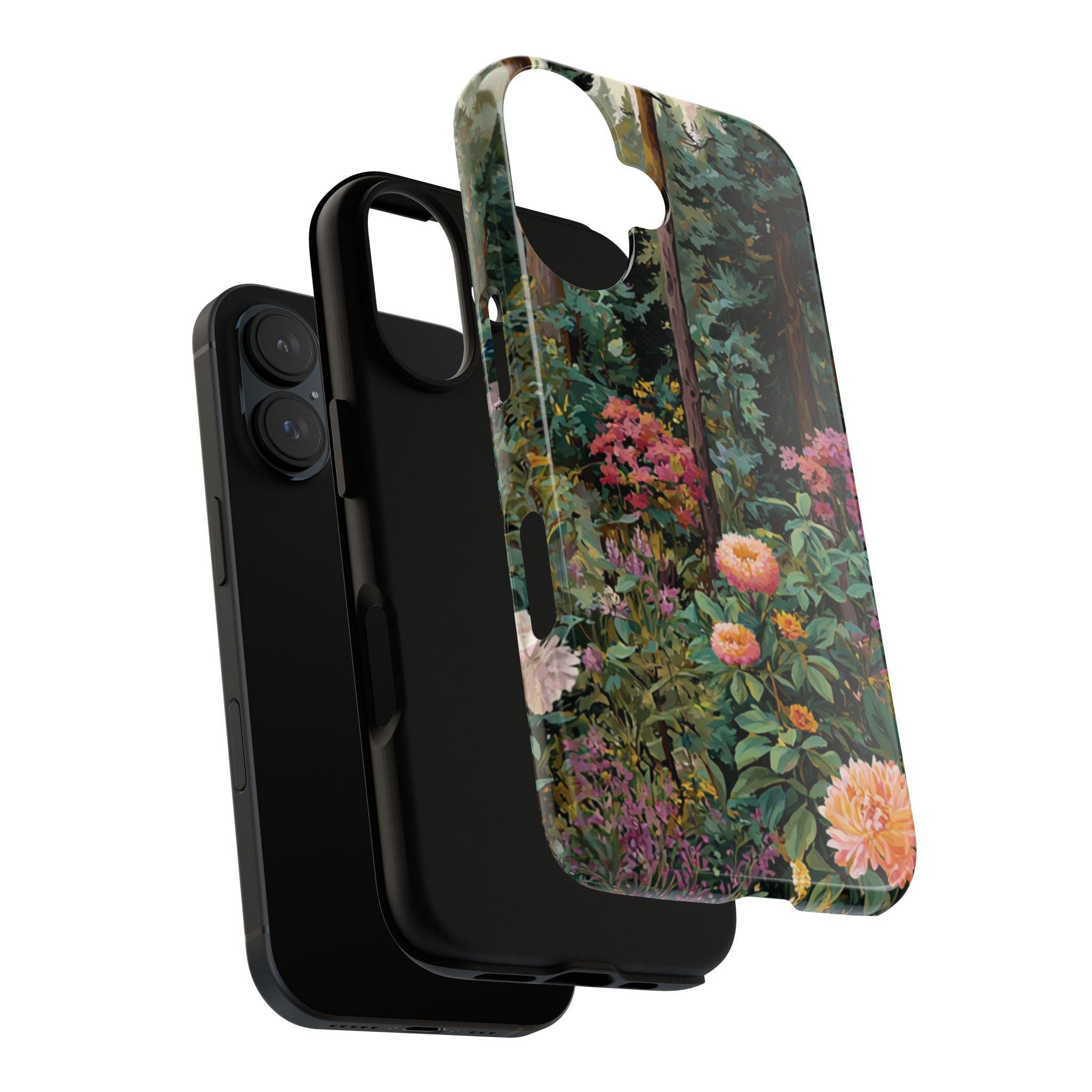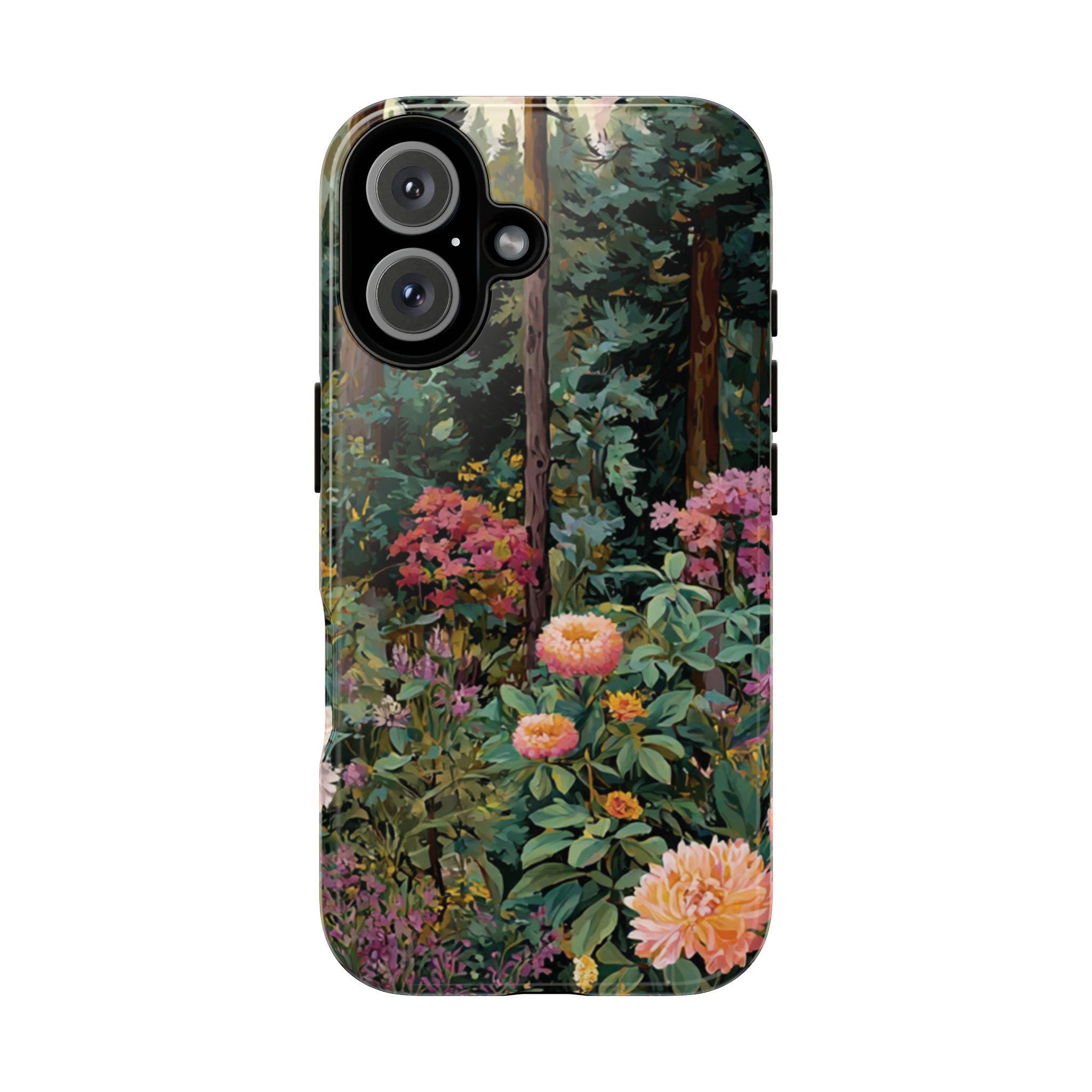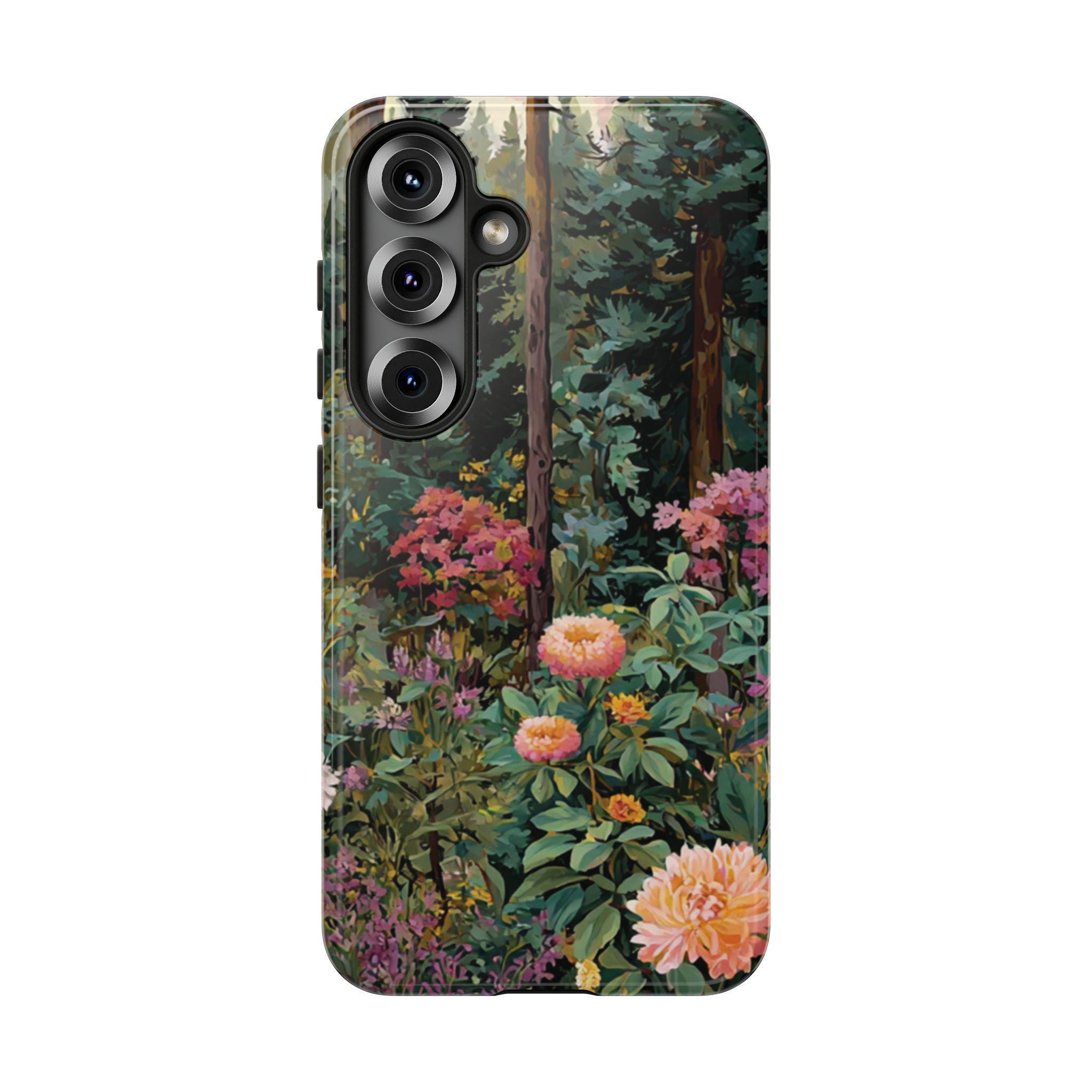 Discover the perfect blend of nature and resilience with this tough phone case featuring a stunning floral and forest-inspired design. Crafted to provide maximum protection against drops, bumps, and scratches, this durable case showcases an intricate forest scene filled with blooming flowers and lush greenery. Ideal for nature lovers and those who want a rugged yet beautiful accessory for their phone.