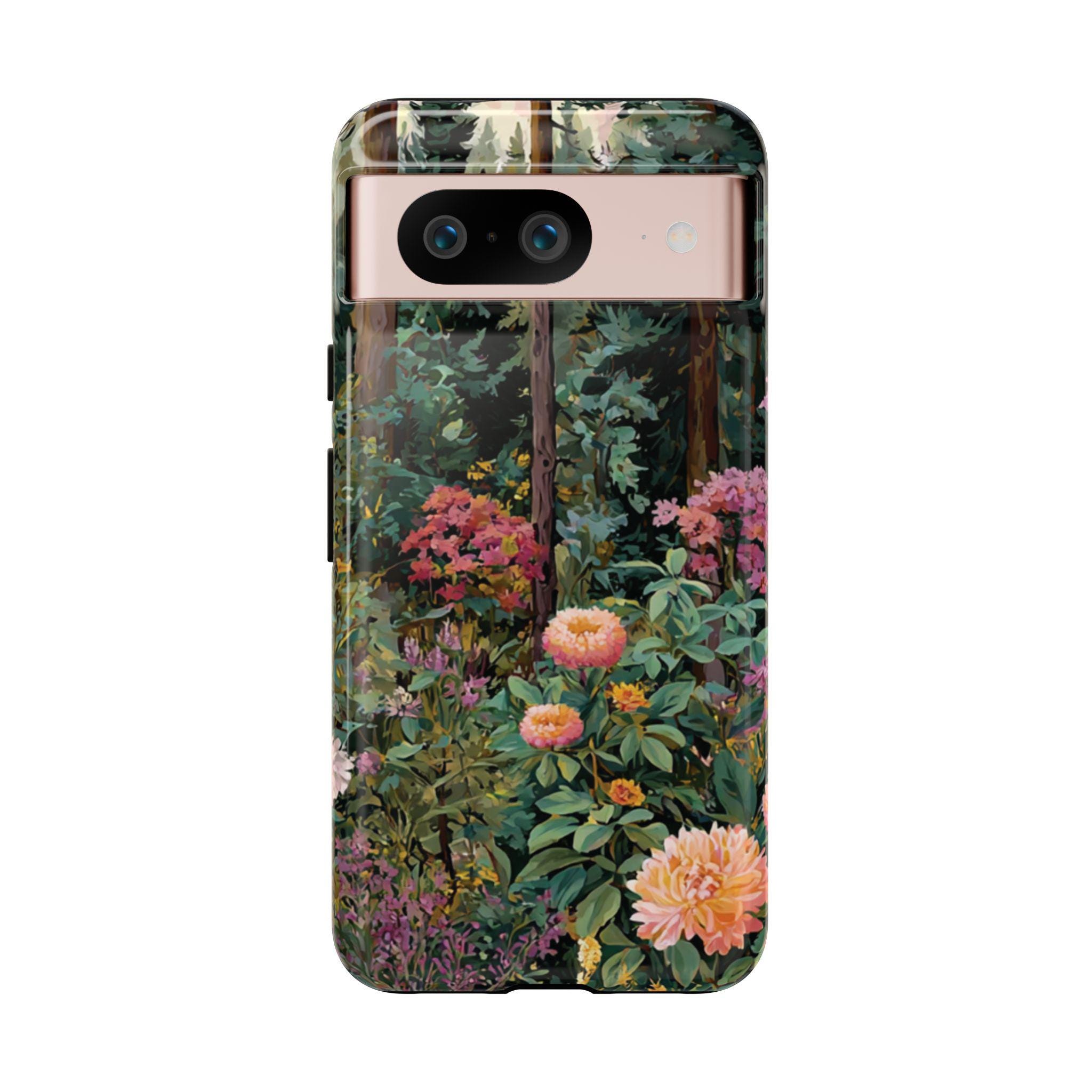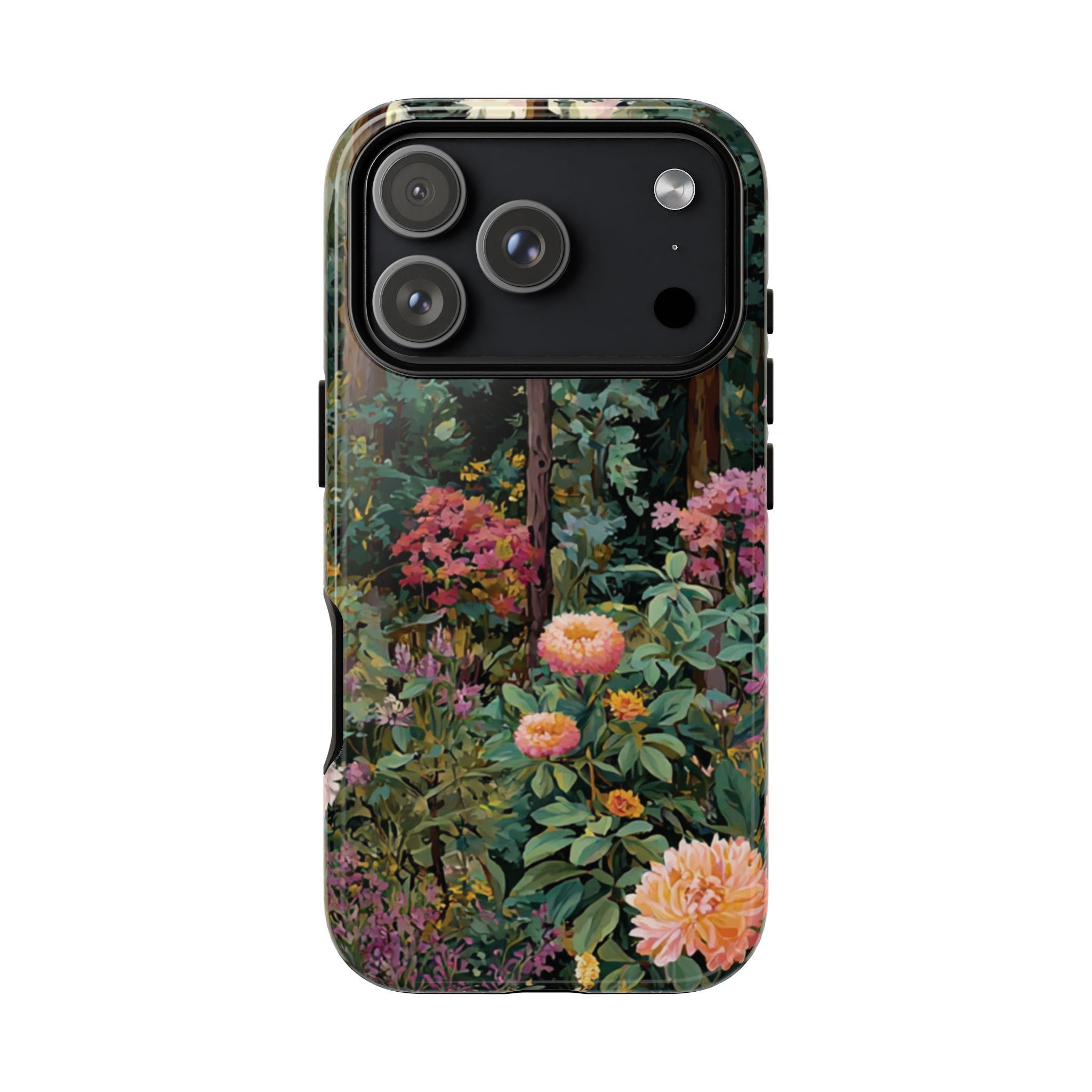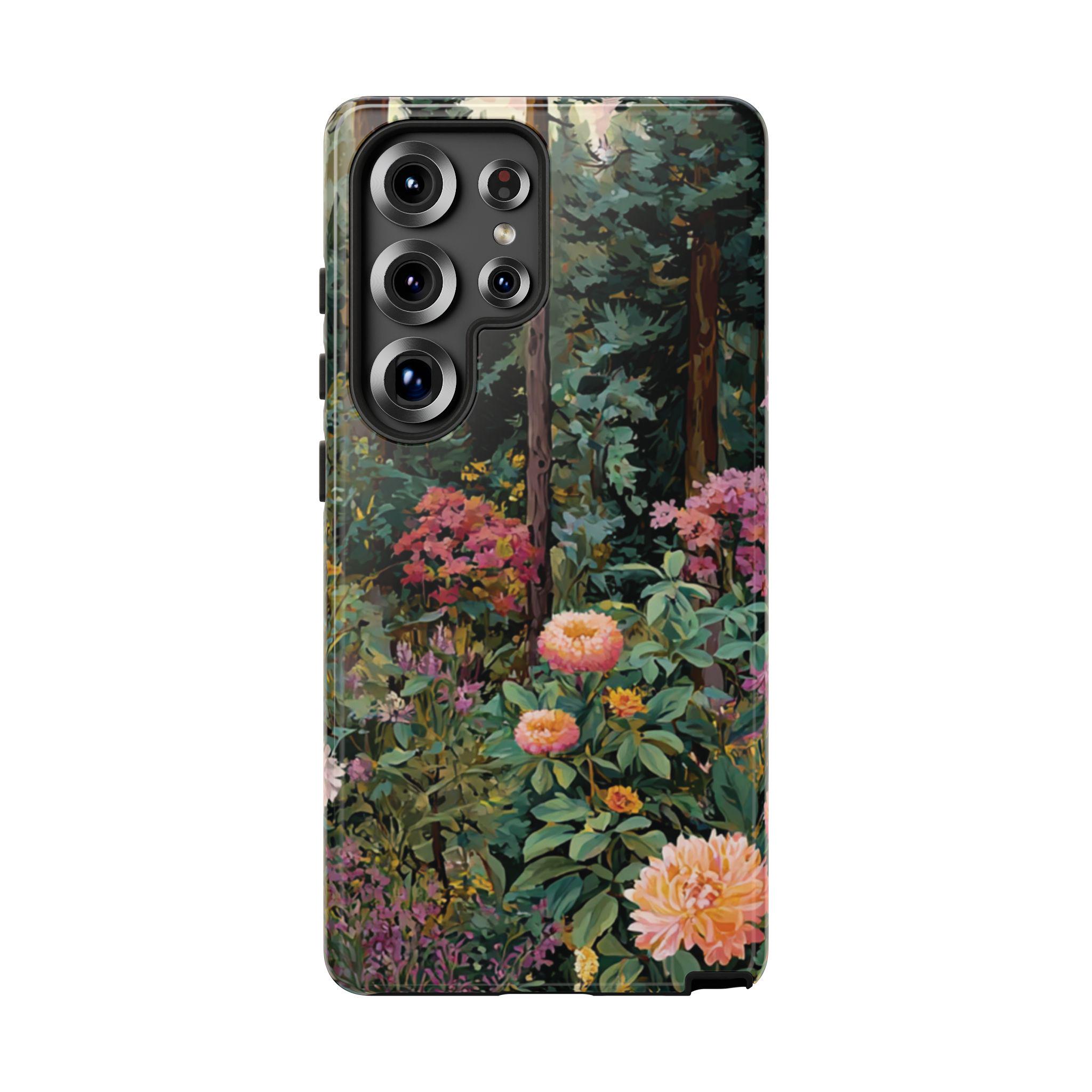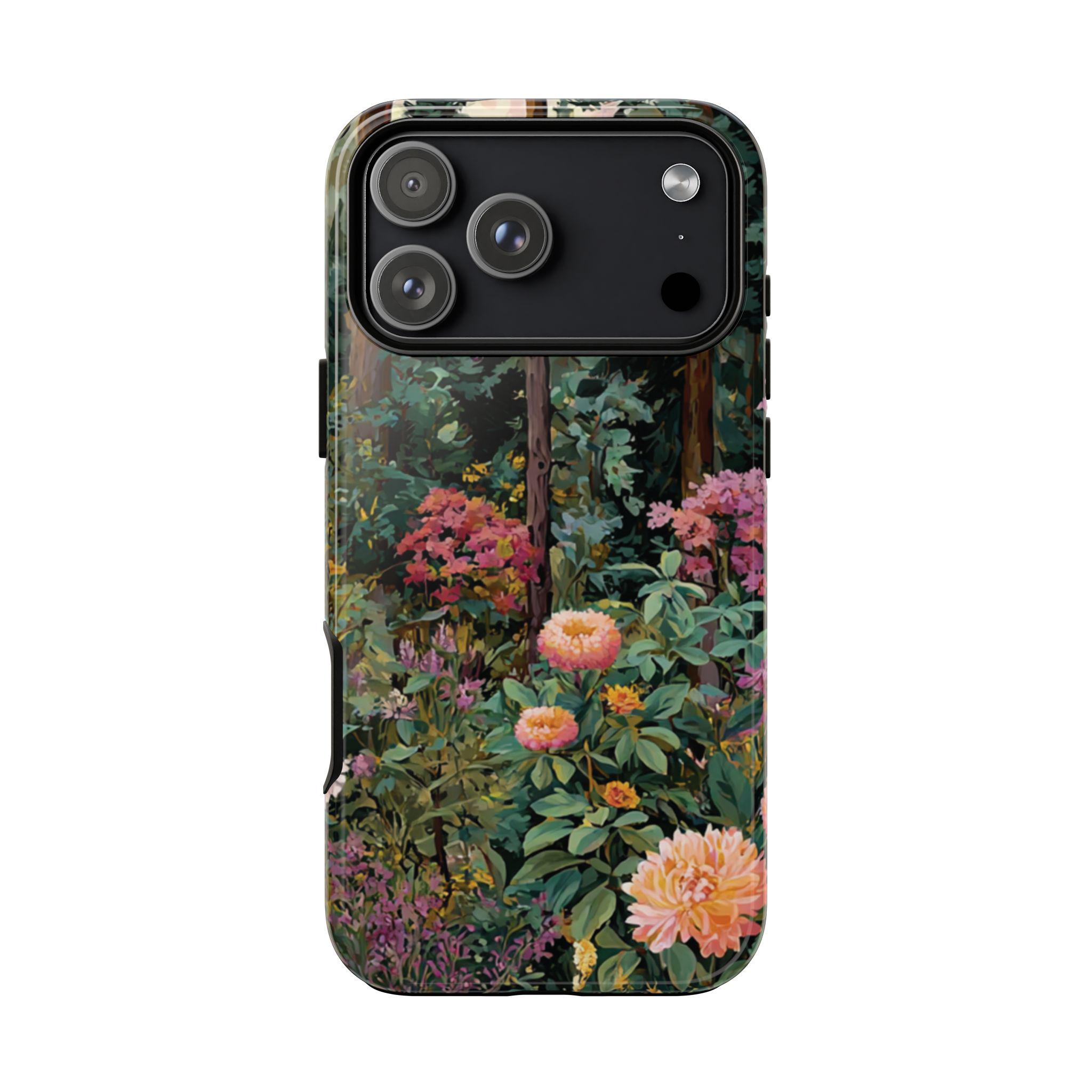 Discover the perfect blend of nature and resilience with this tough phone case featuring a stunning floral and forest-inspired design. Crafted to provide maximum protection against drops, bumps, and scratches, this durable case showcases an intricate forest scene filled with blooming flowers and lush greenery. Ideal for nature lovers and those who want a rugged yet beautiful accessory for their phone.