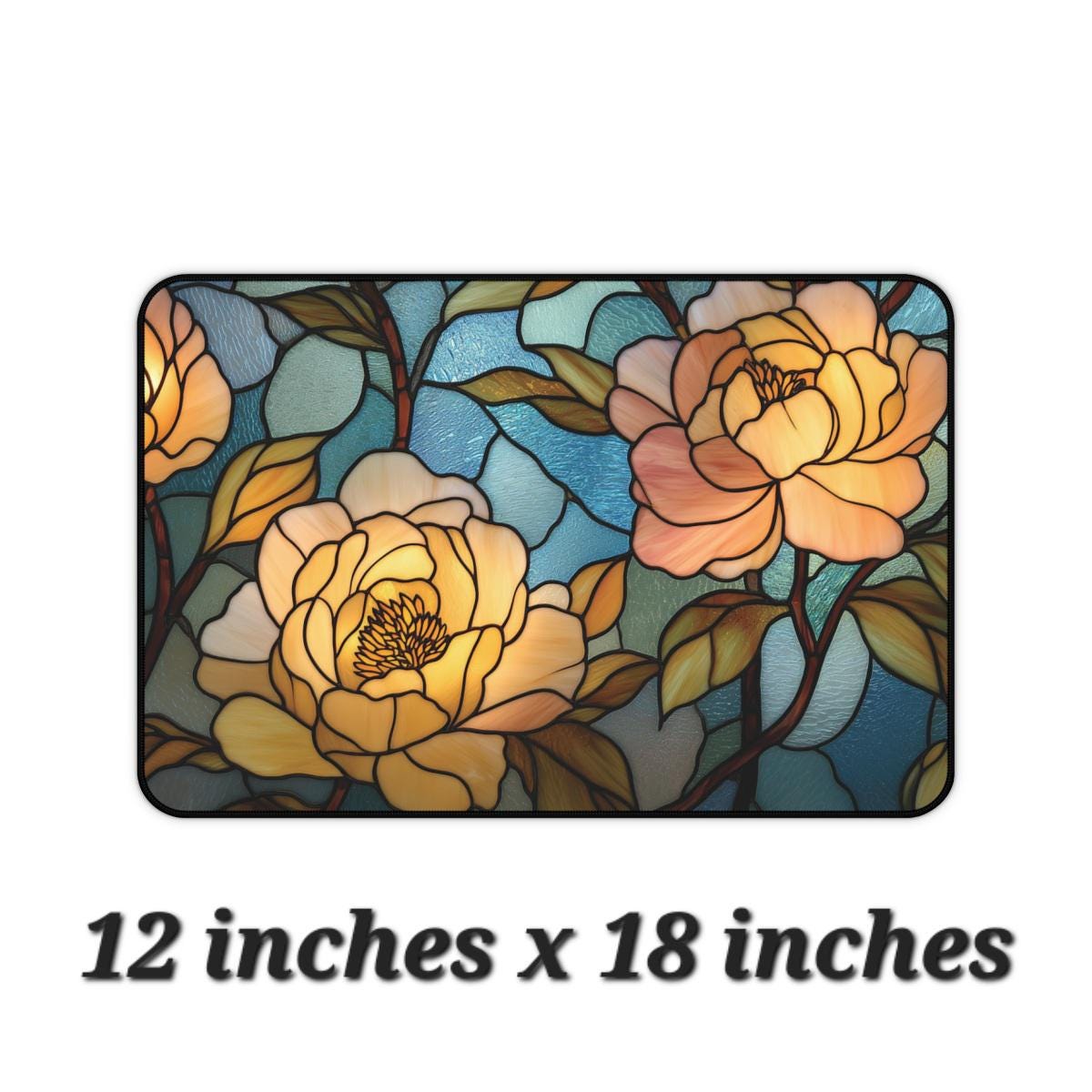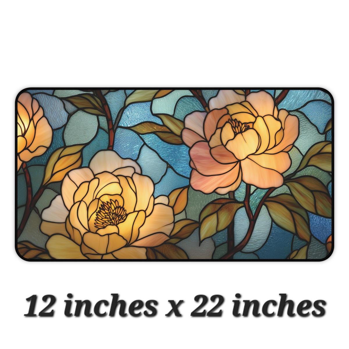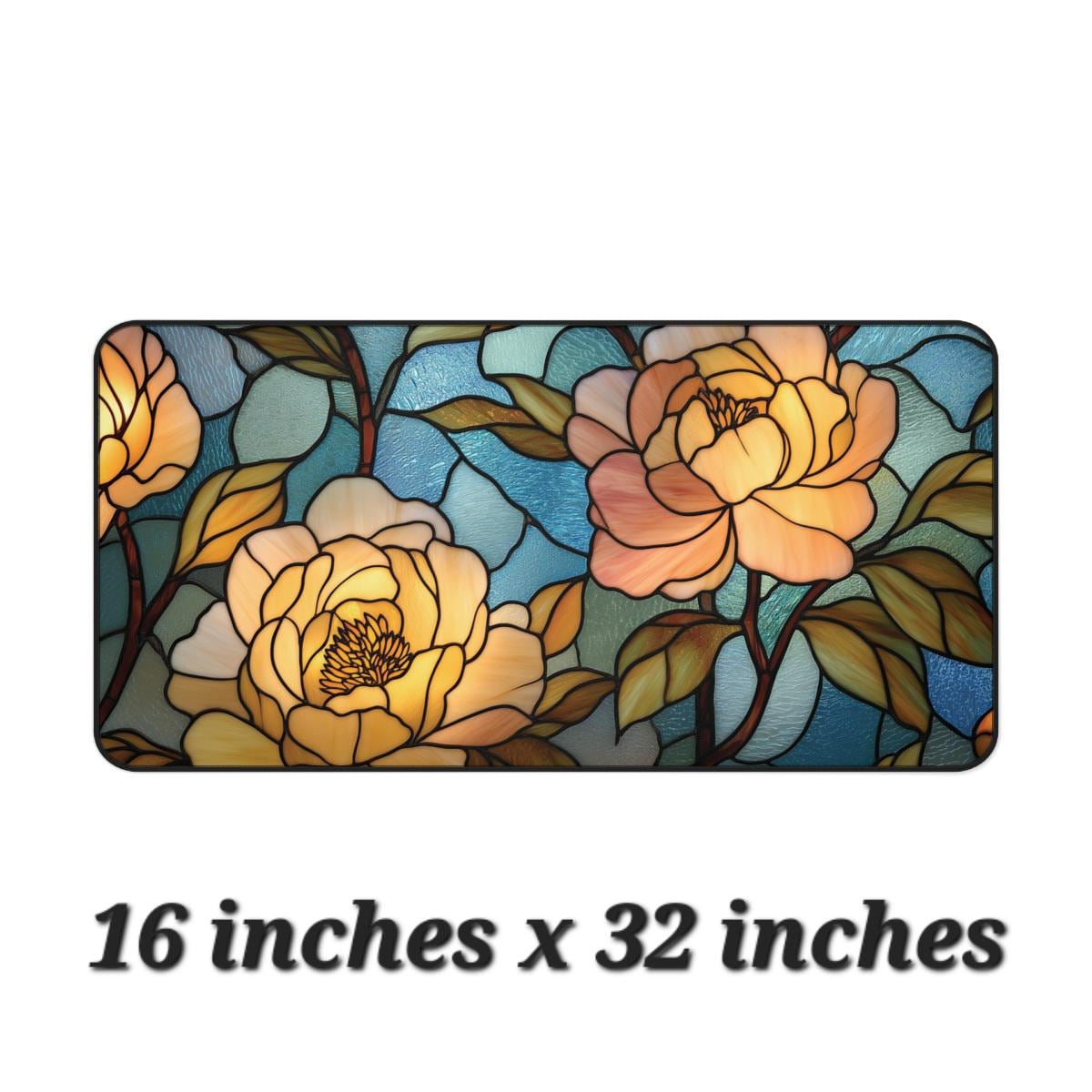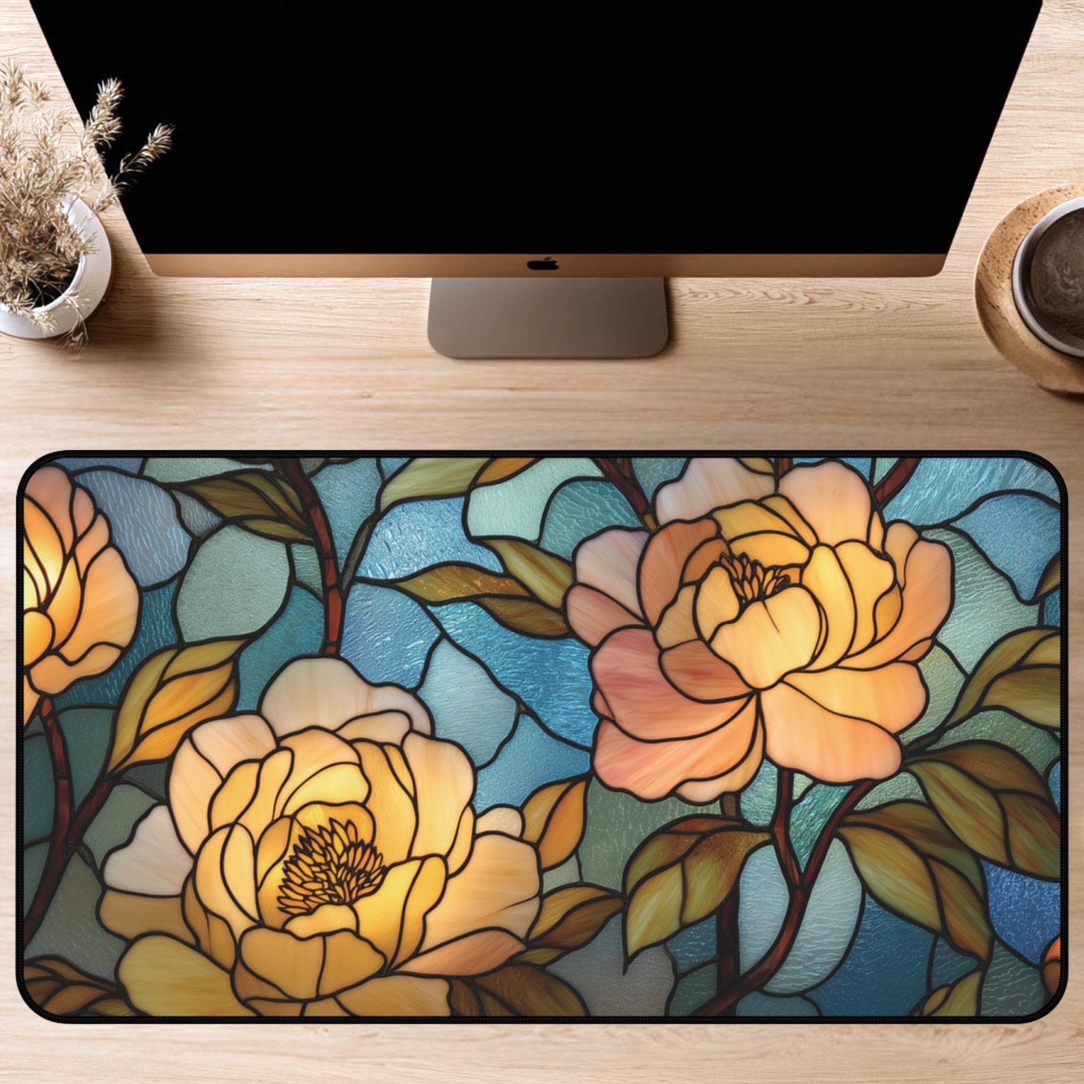 Transform your workspace with this exquisite stained glass floral desk mat. Featuring intricate peony designs in warm, vibrant hues, it adds elegance and charm to any desk. The smooth surface ensures optimal mouse movement, while the non-slip base keeps it securely in place. Perfect for brightening your home office or as a thoughtful gift for art lovers.